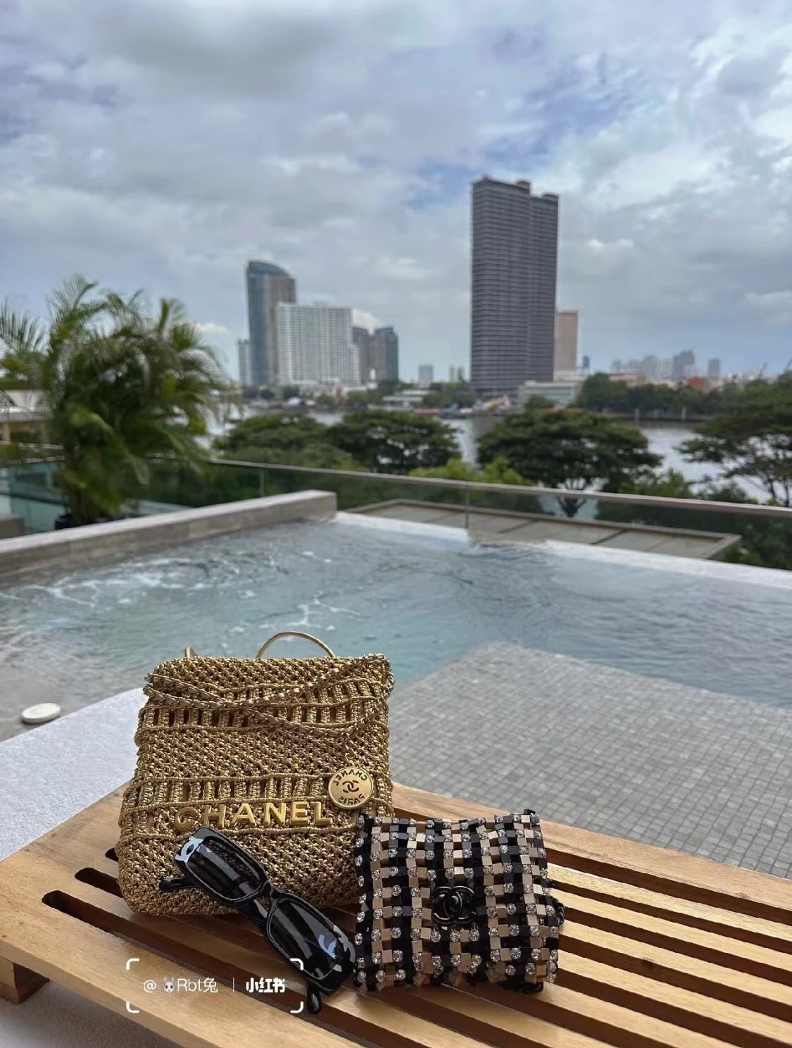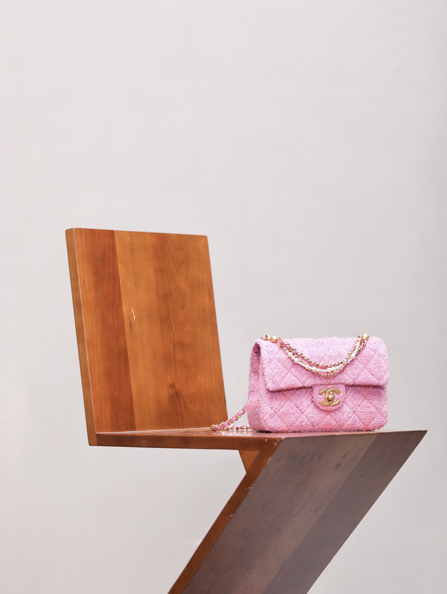 NIGO Chanel Women's Classic Gold Buckle Chain Cotton Tweed with Artificial Pearls Flap Shoulder Crossbody Bag Bags #nigo99654