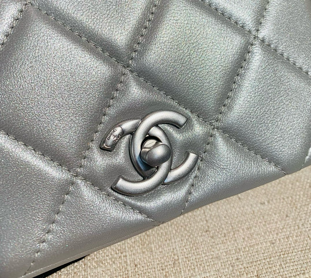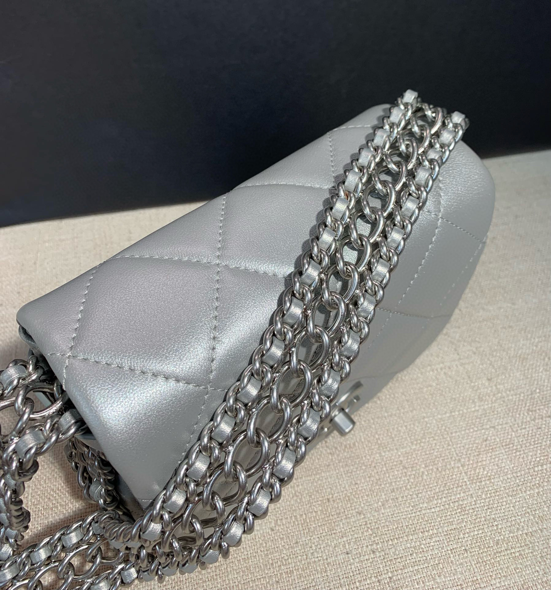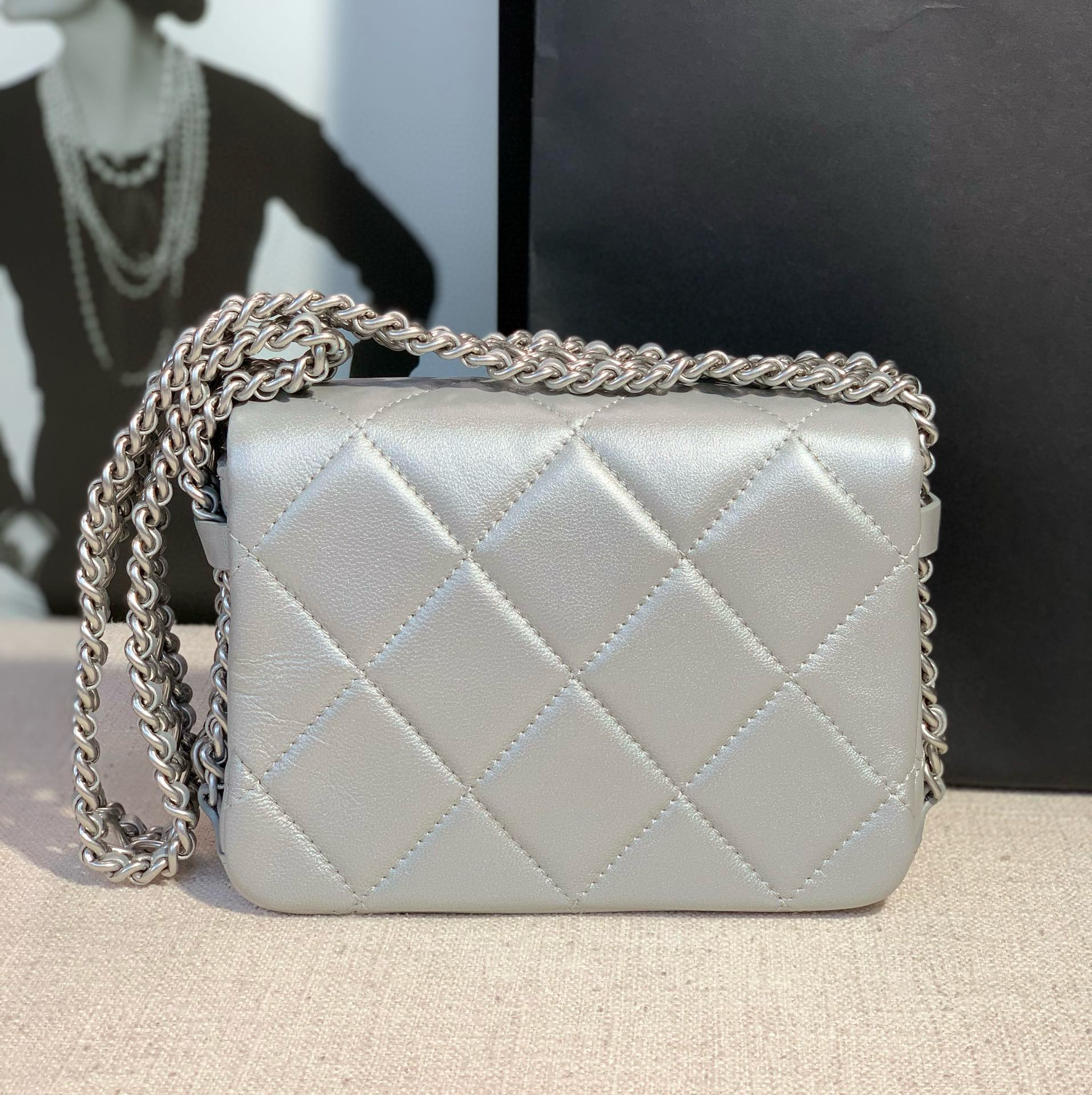 NIGO Chanel Women's Silver Lambskin Mini Mouth Cover Bag Chain Shoulder Bags #nigo98848