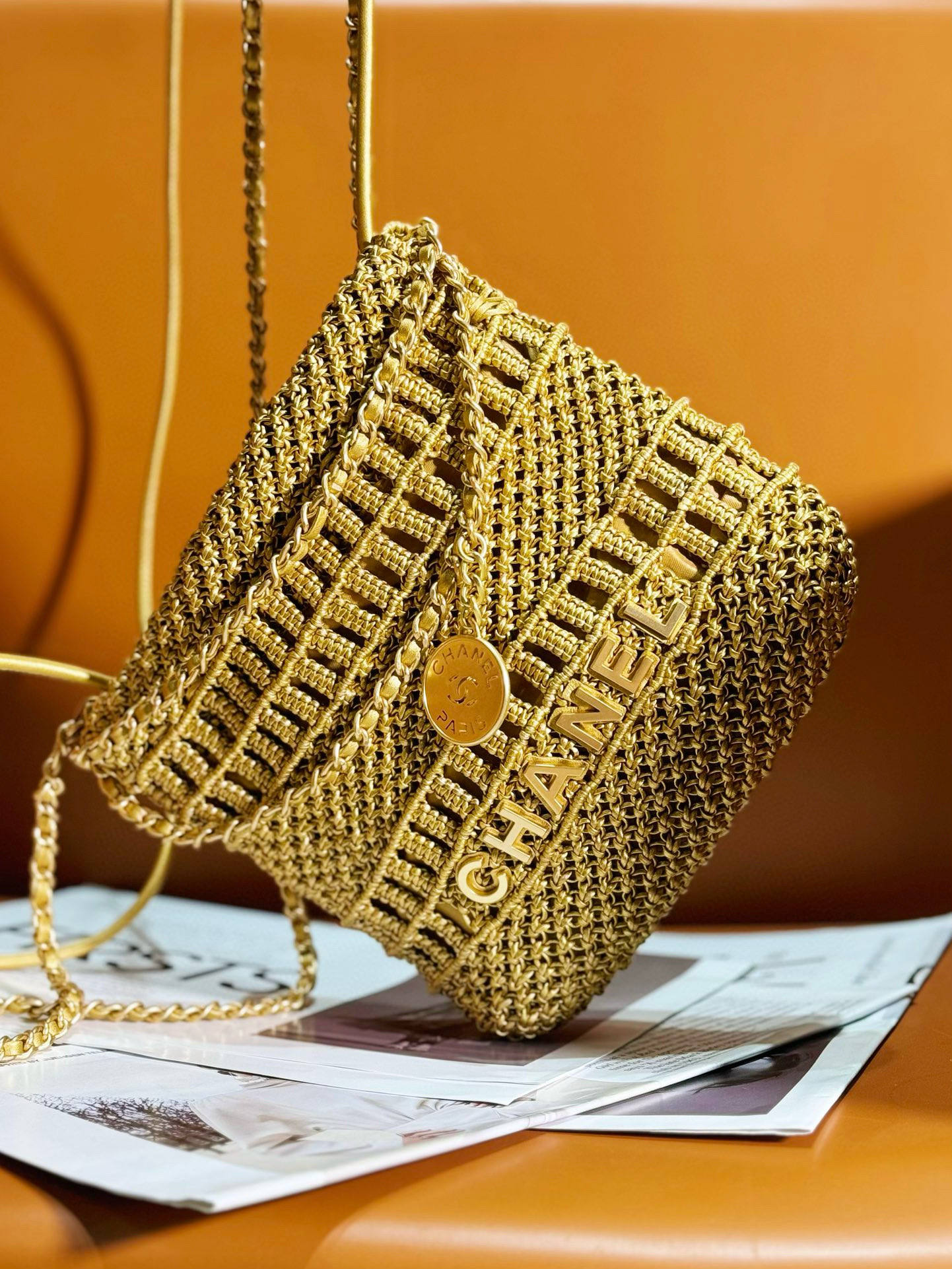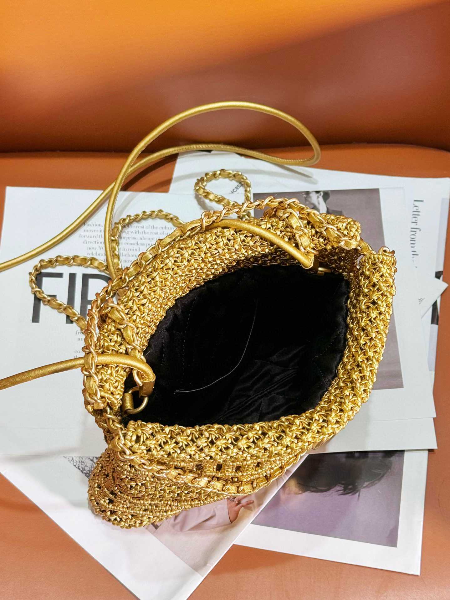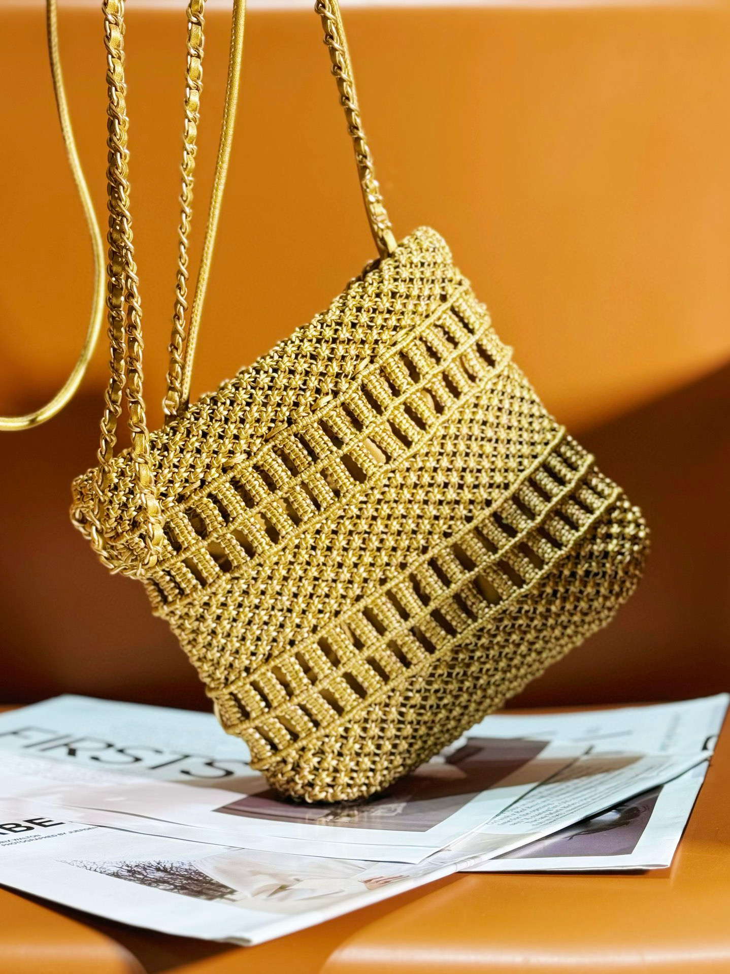 NIGO Chanel Women's Logo Gold Woven Cowhide Leather Crossbody Bag Letter Metal Chain Luxury Temperament Handbag #nigo98929
