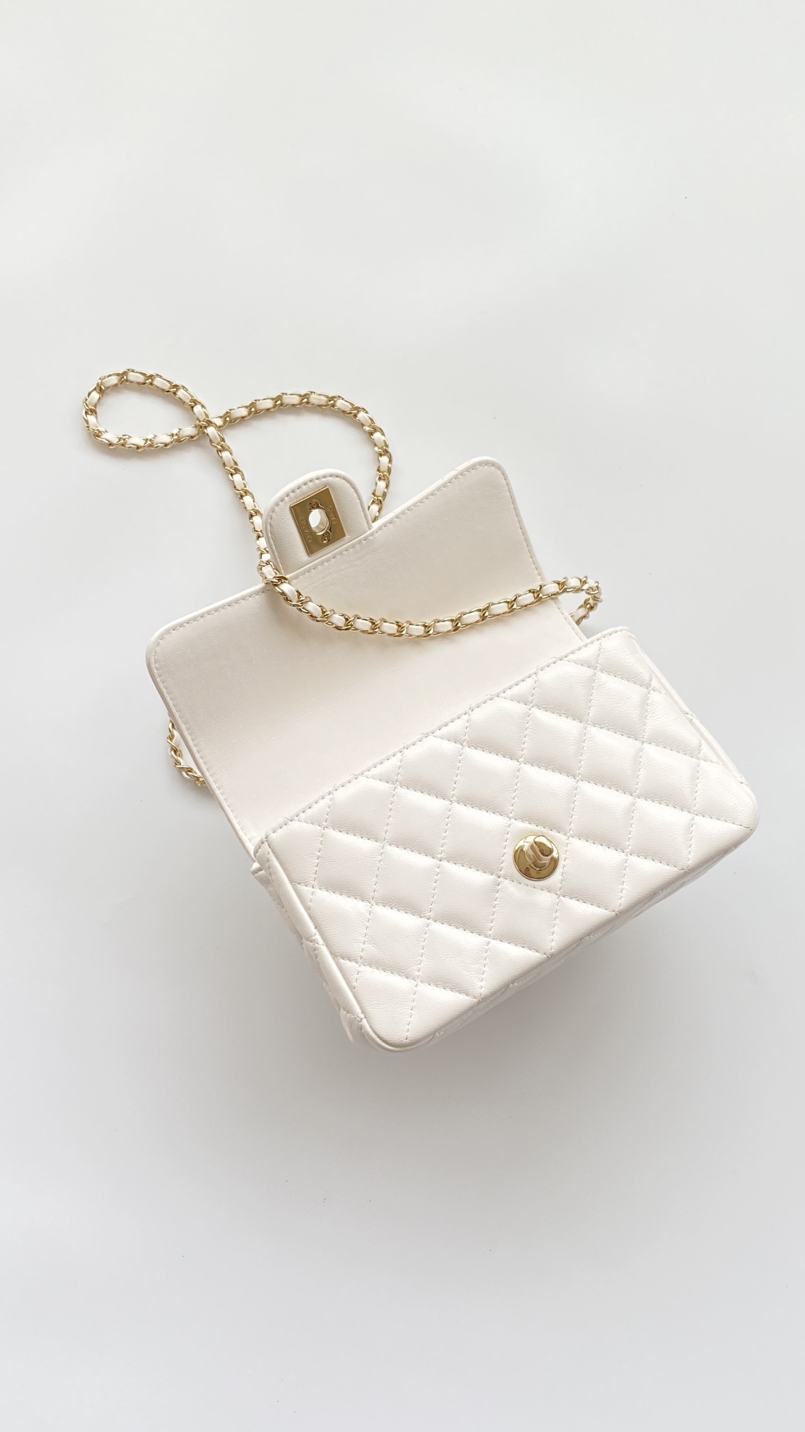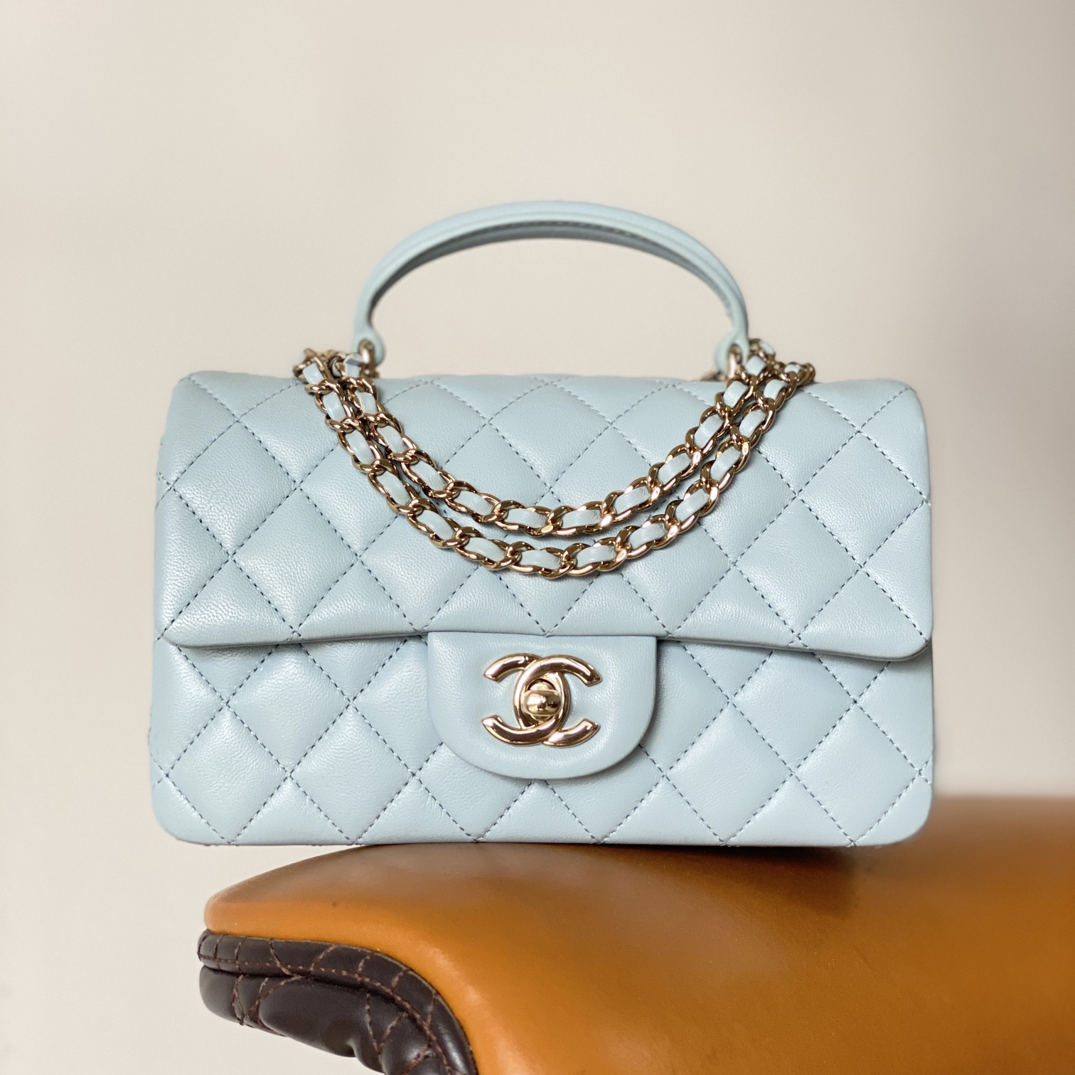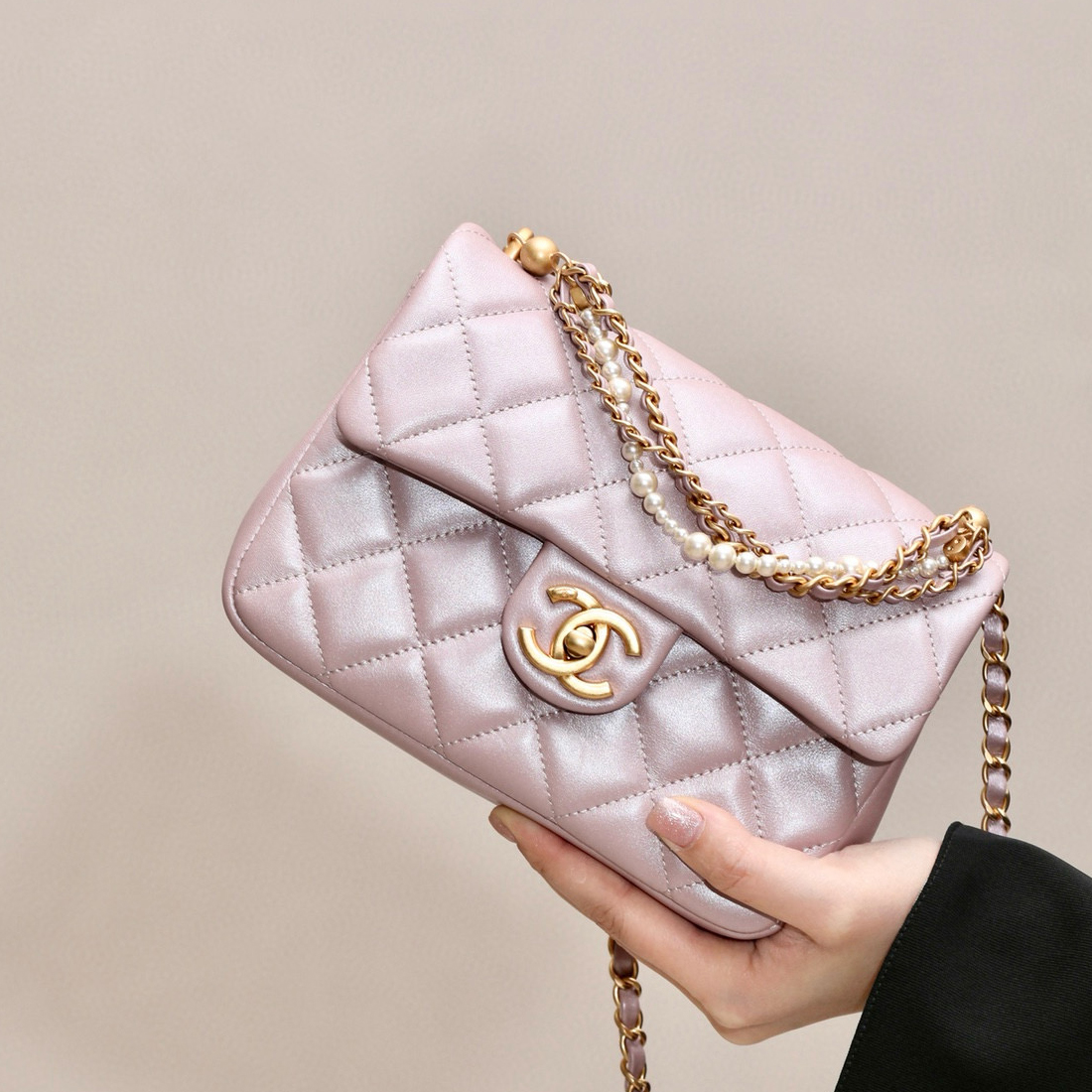NIGO Chanel Women's Letter Logo Lattice Drawstring Closure Shiny Calfskin Mini Shoulder Crossbody Bag Bags #nigo98969