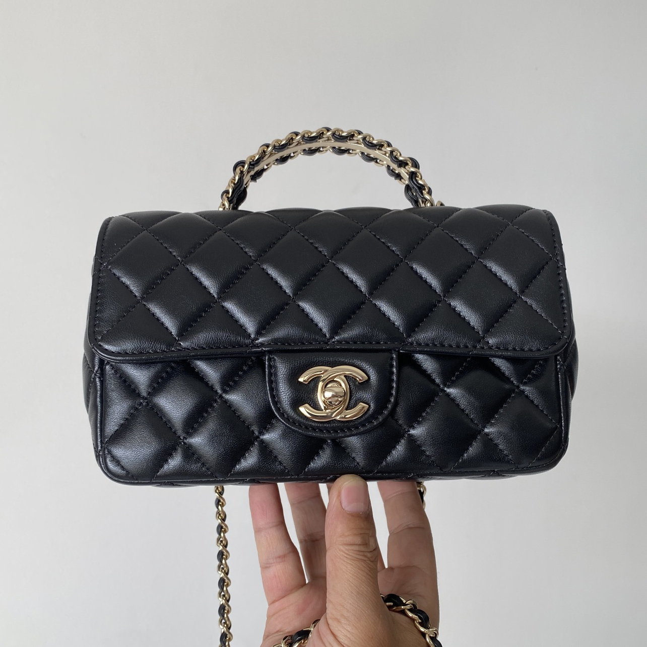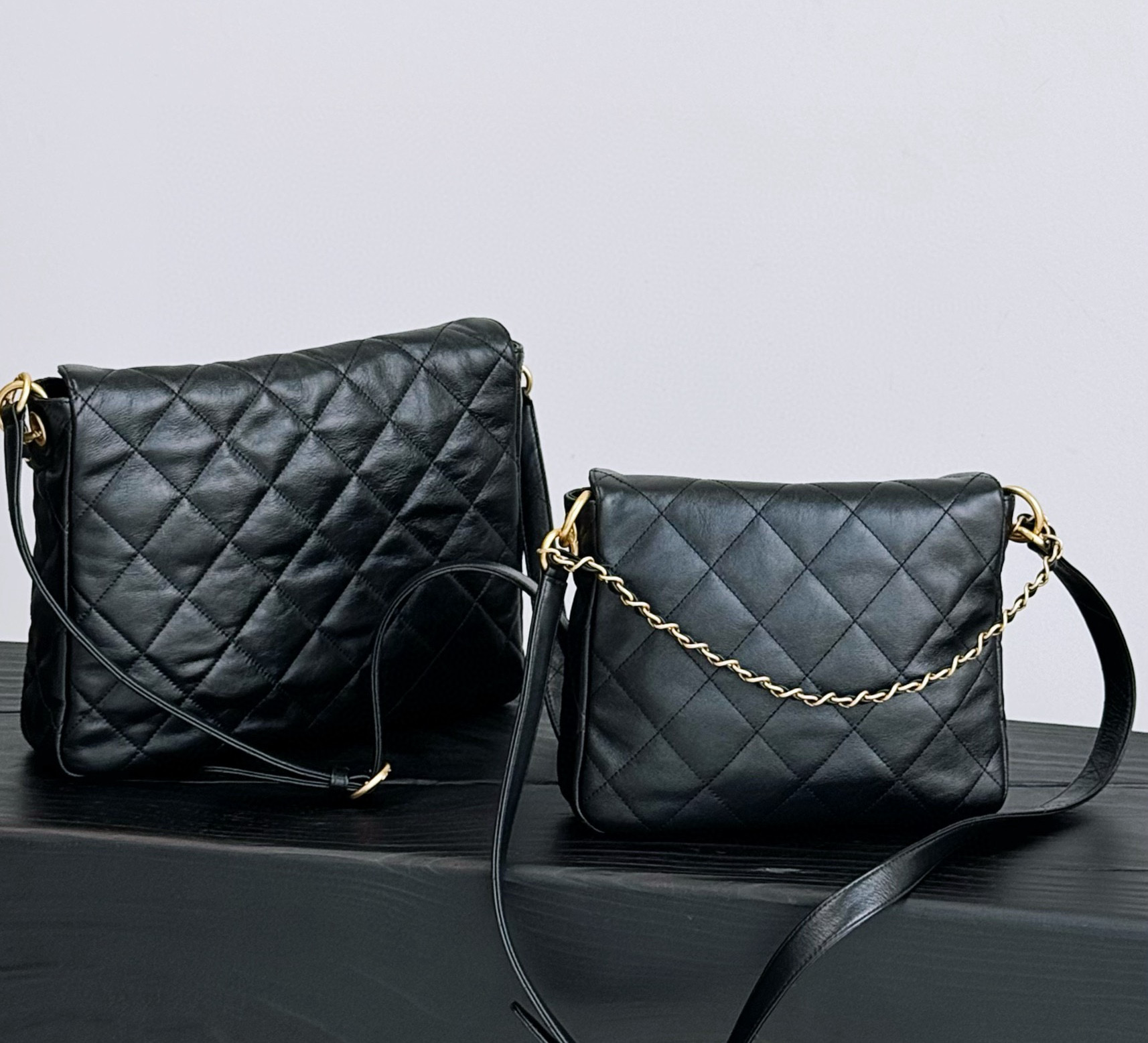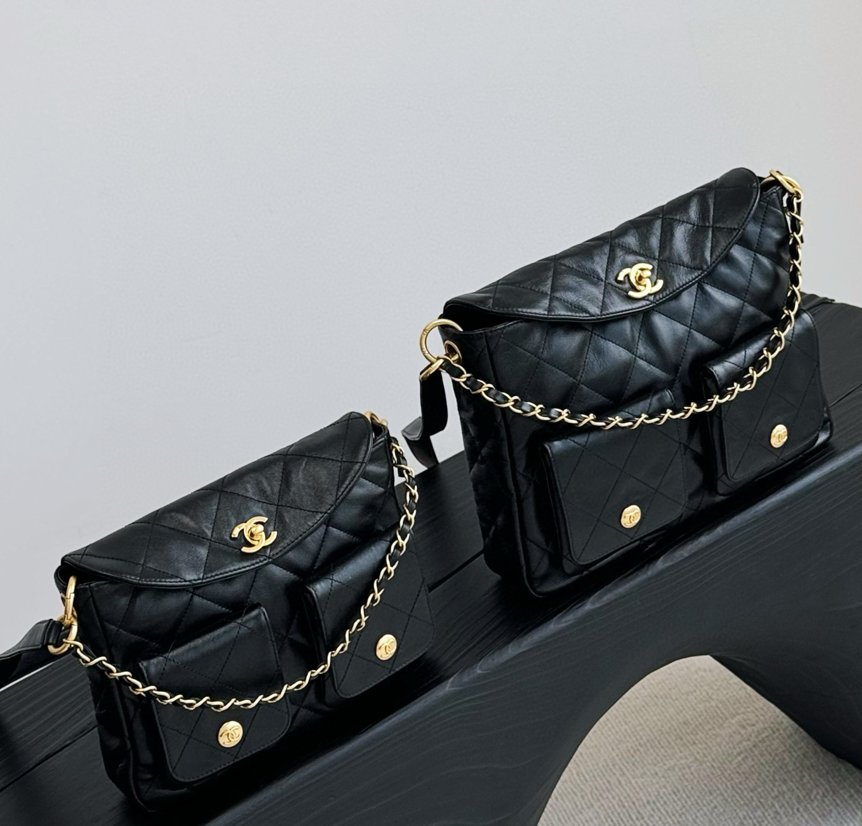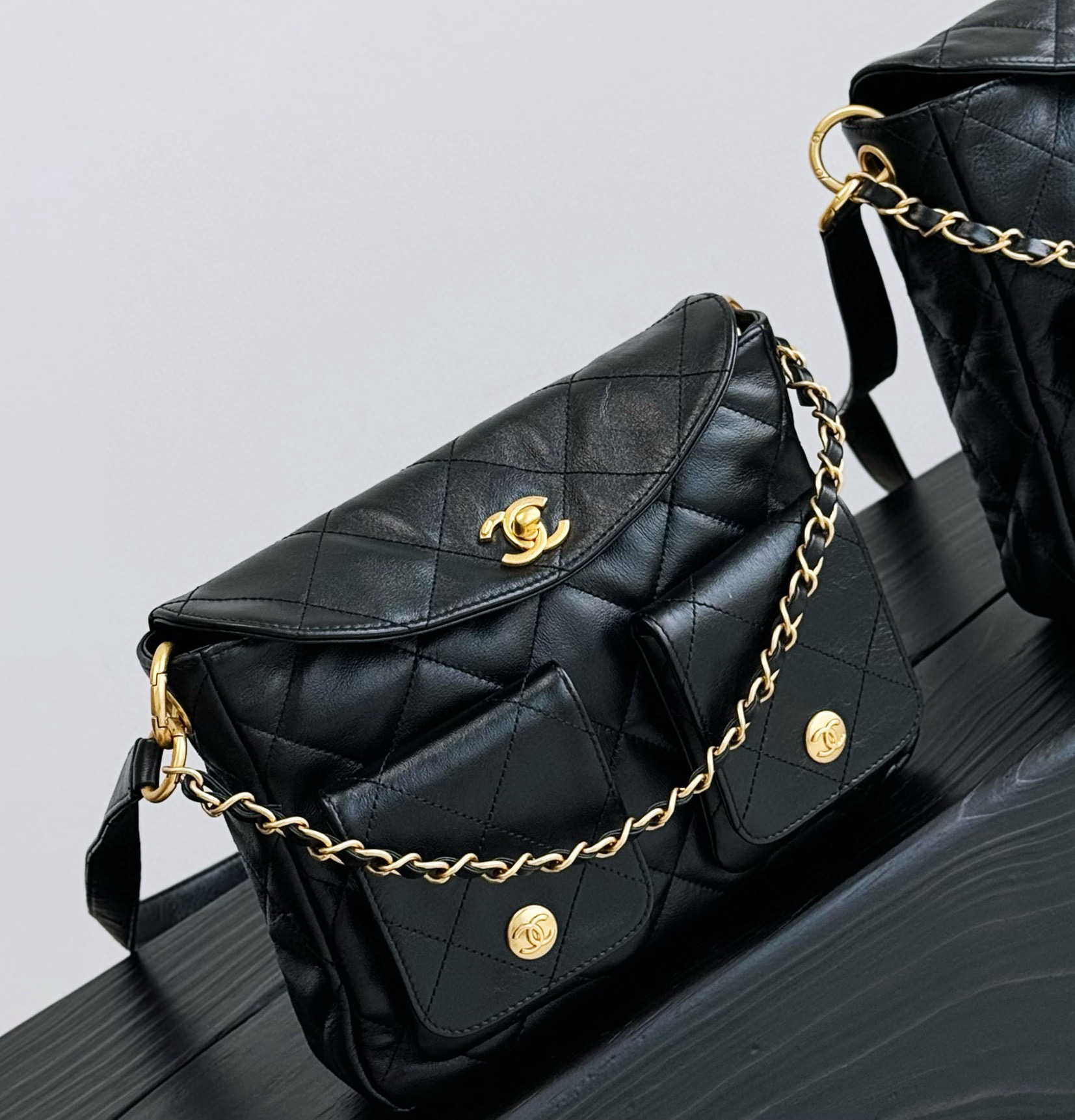 NIGO Chanel Supple Twins Women's Black Diamond Pattern Gold Buckle Chain Cowhide Shoulder Crossbody Bag #nigo99148