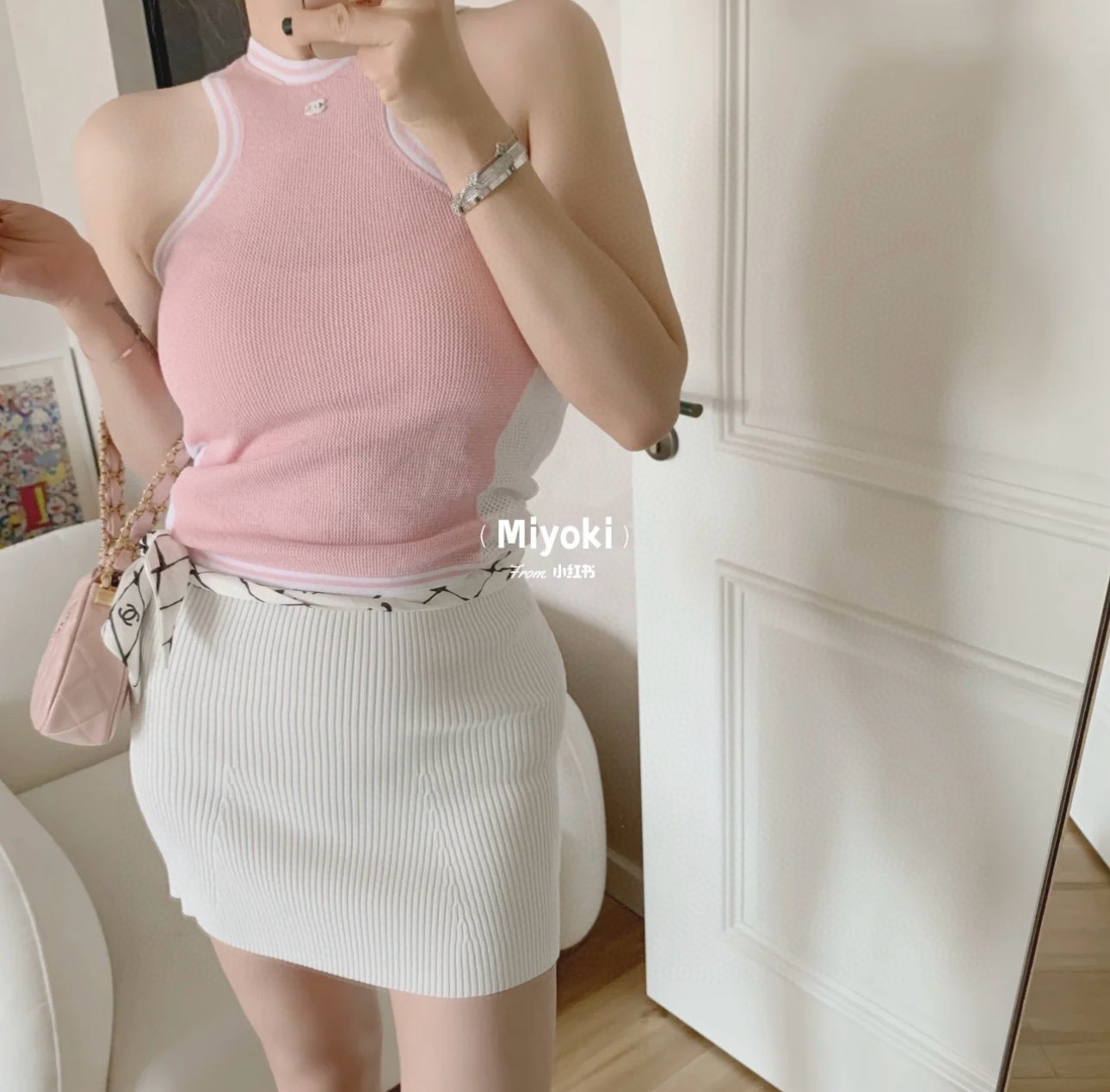 NIGO Chanel Women's Summer Clashing Colour Patchwork Viscose Fibre Knitted Sleeveless Tank Top #nigo99145
