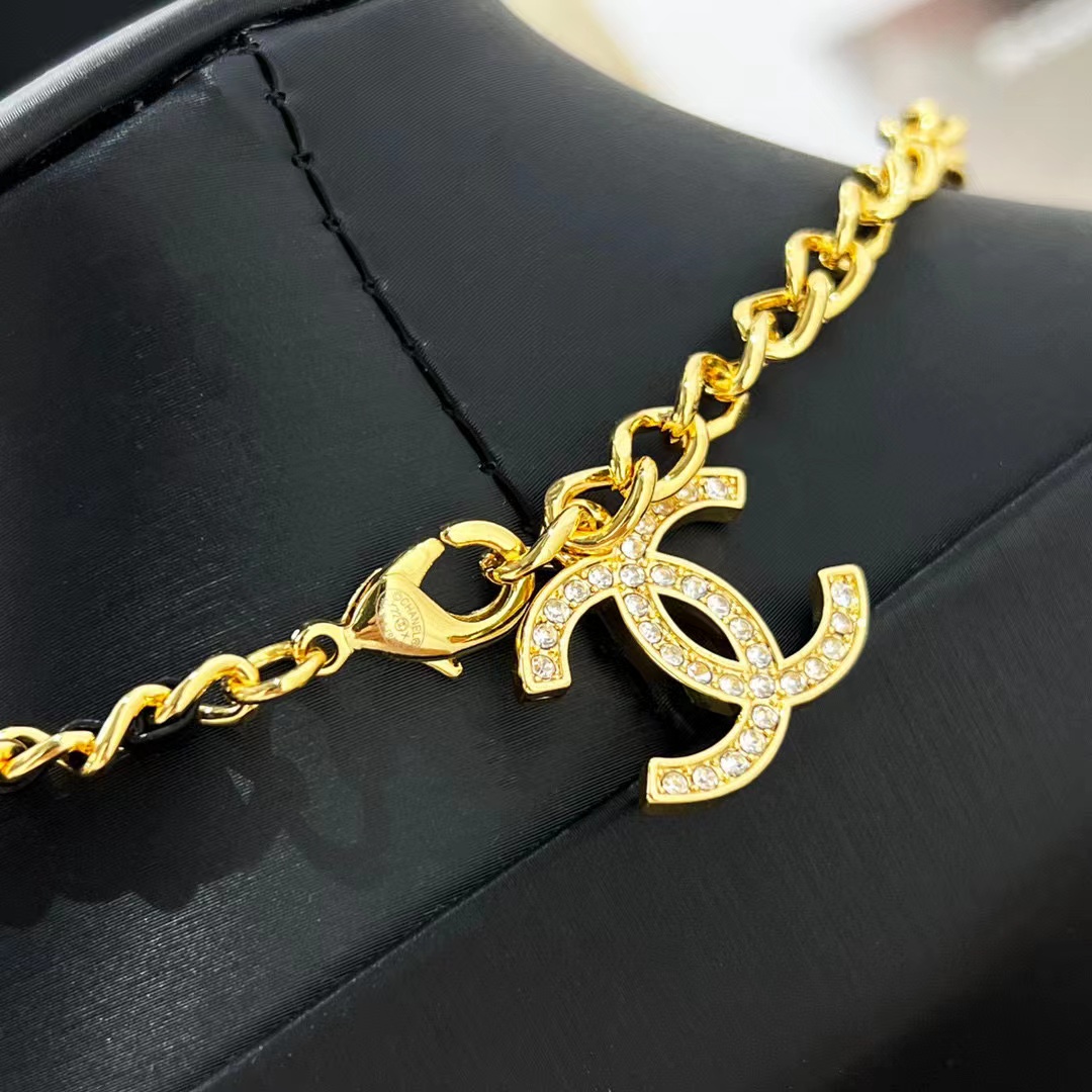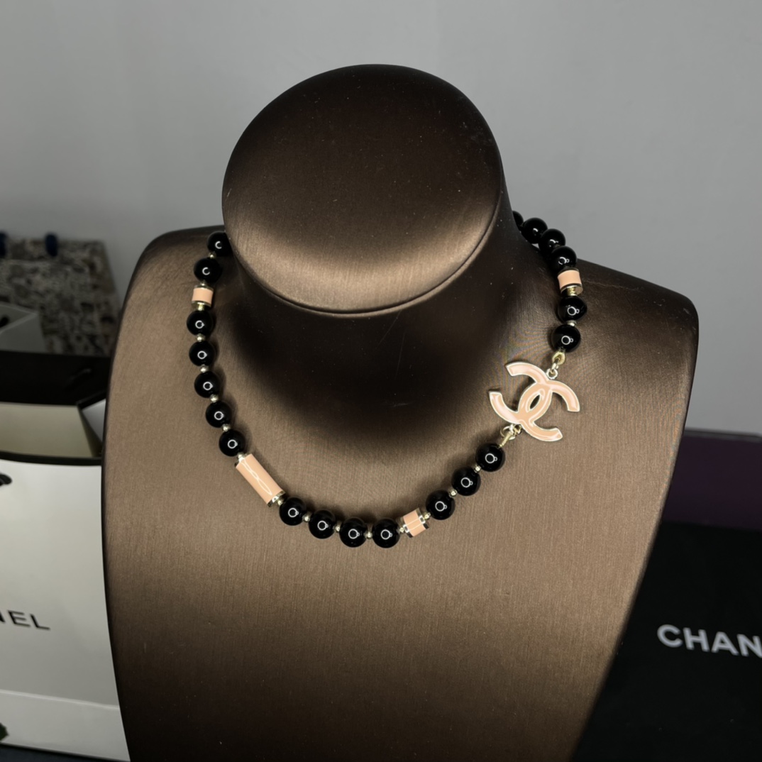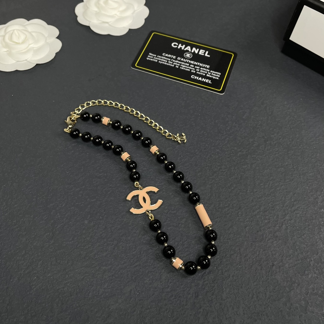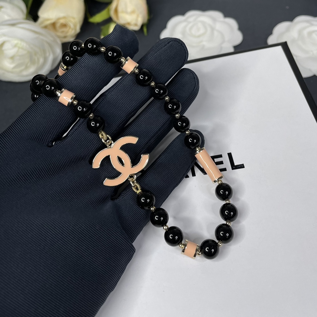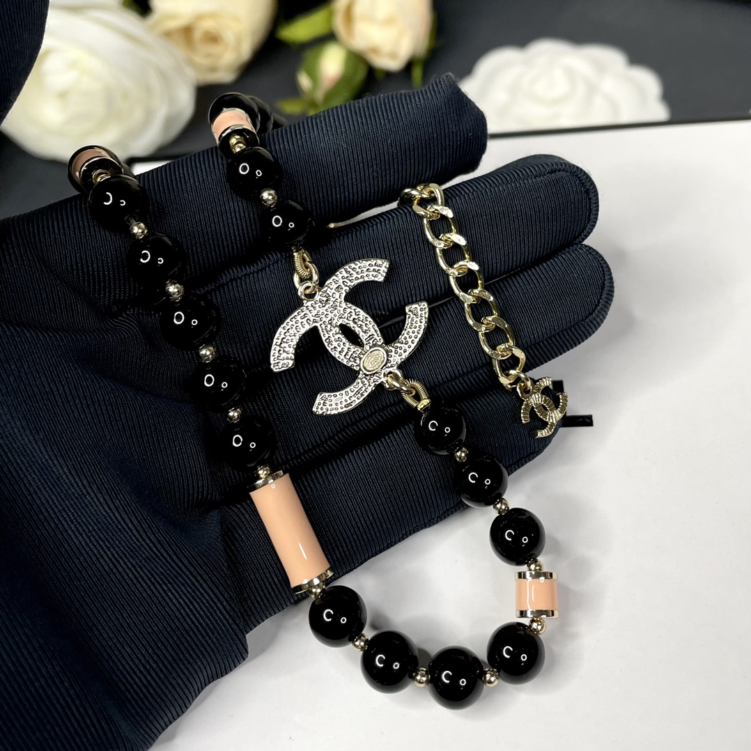Chanel Black Leather String Pearl Sweater Necklace Accessories Jewelry #nigo89681