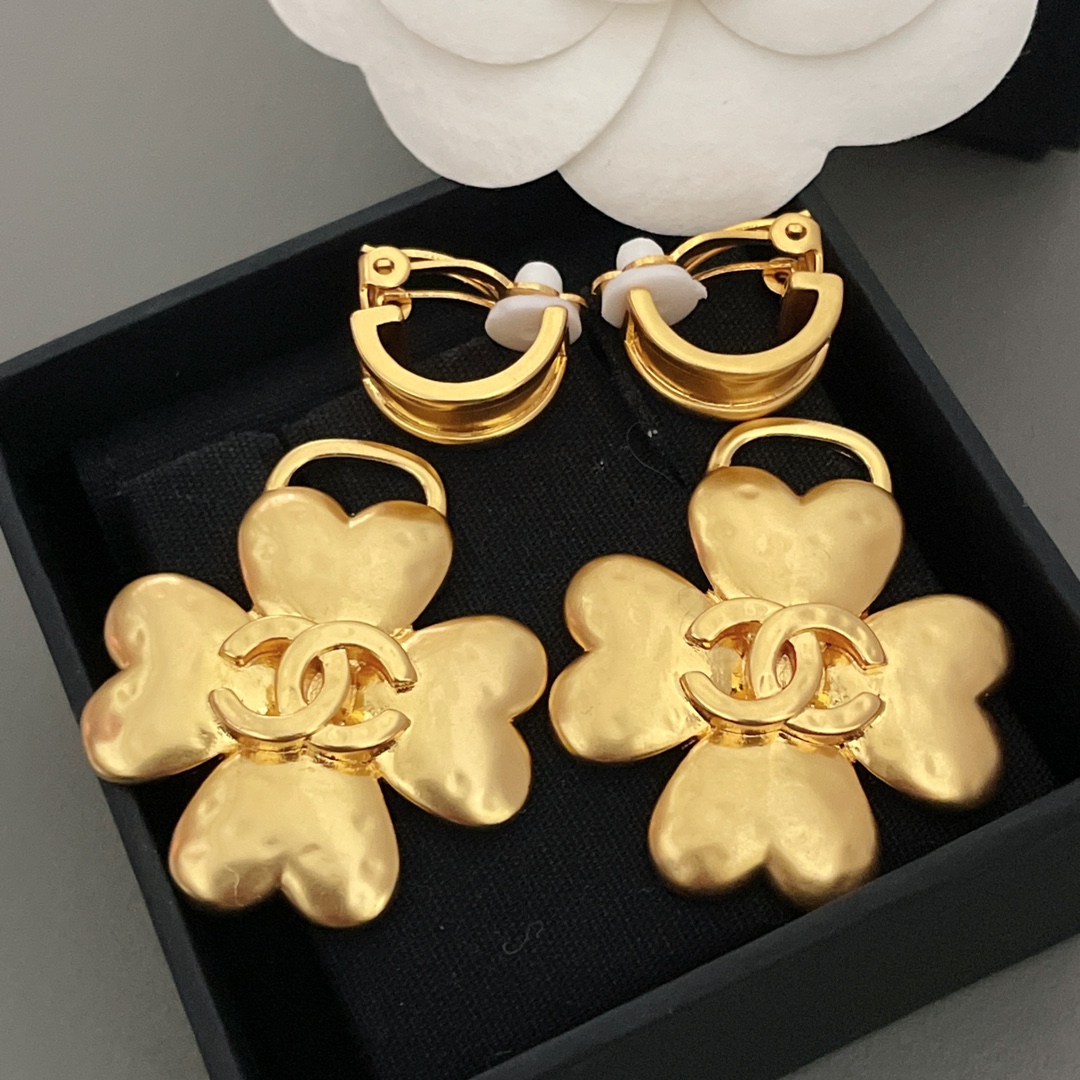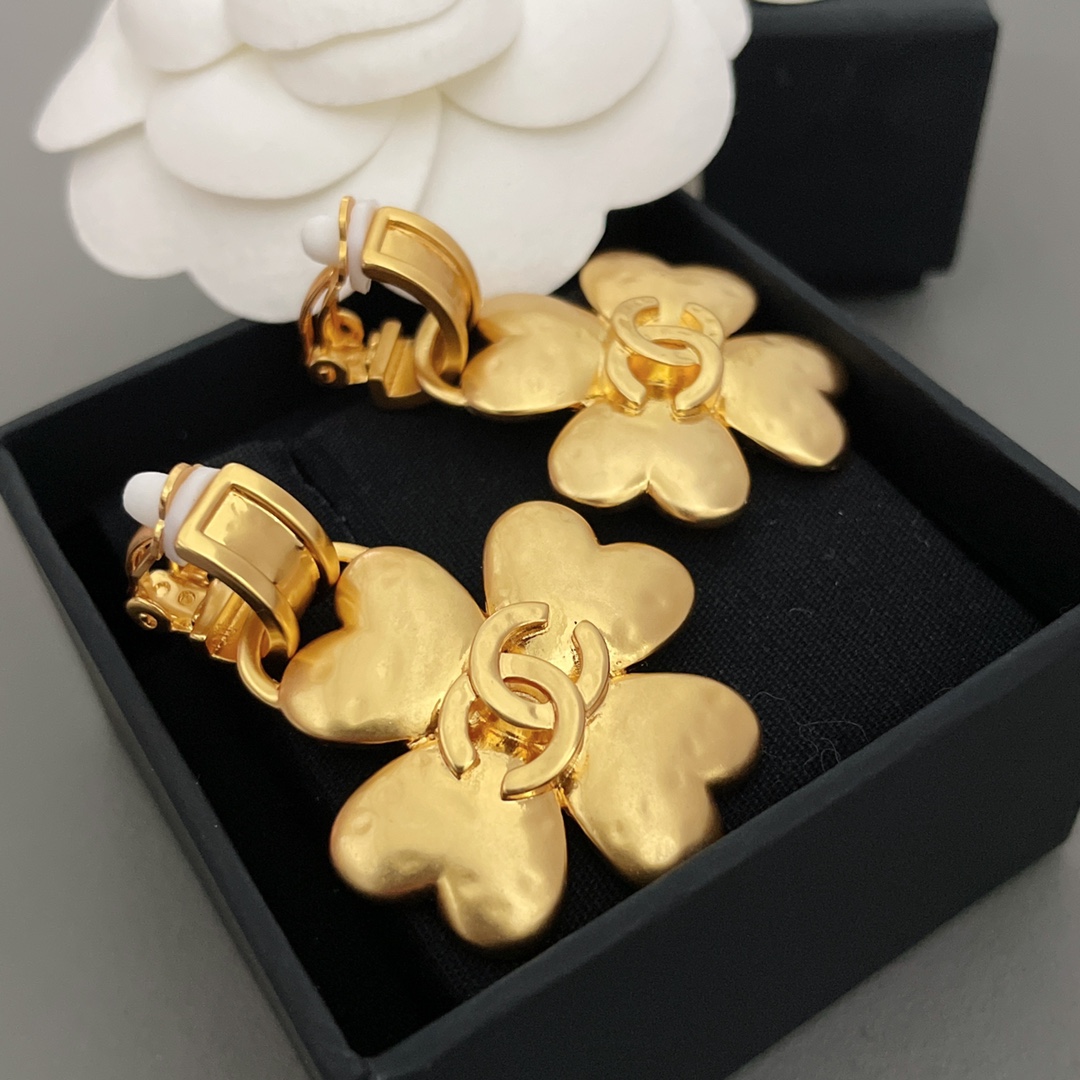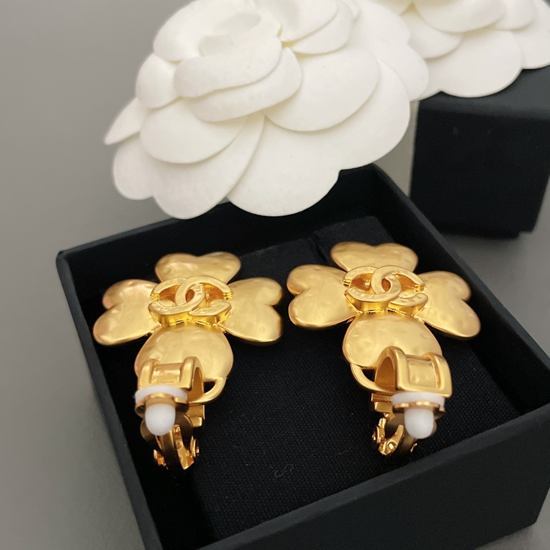 Chanel NIGO gold-plated Four-leaf clover ear clip Accessories #nigo82749
