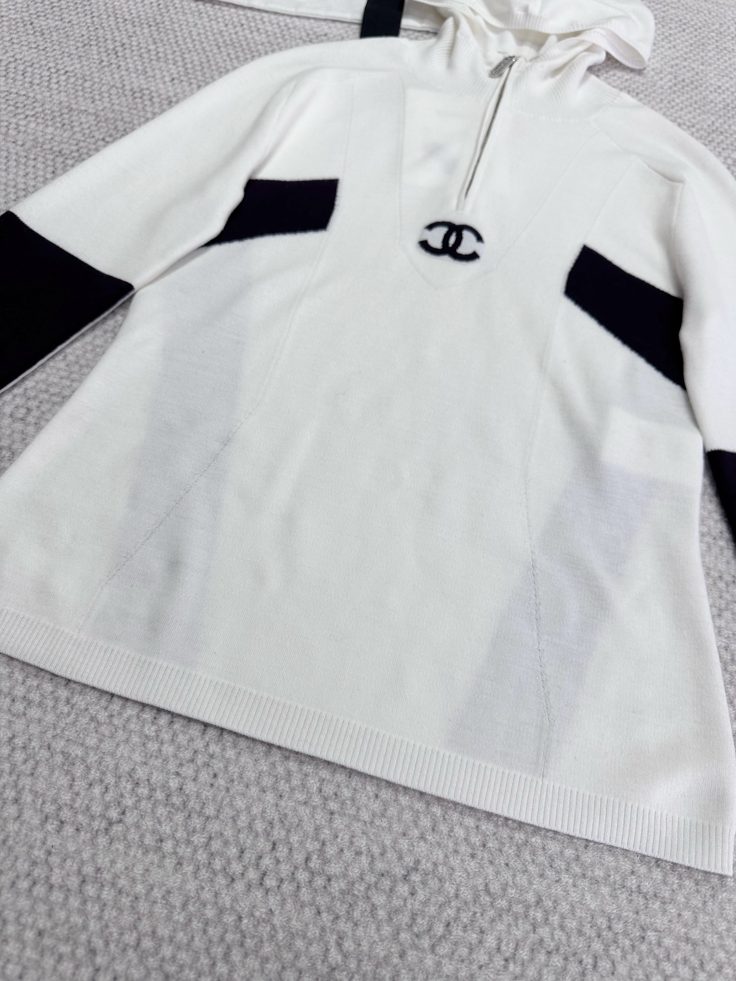 NIGO Chanel Women's Spring/fall Fashion Casual Color Block Hooded Pullover Half Zip Knit Sweater #nigo79229