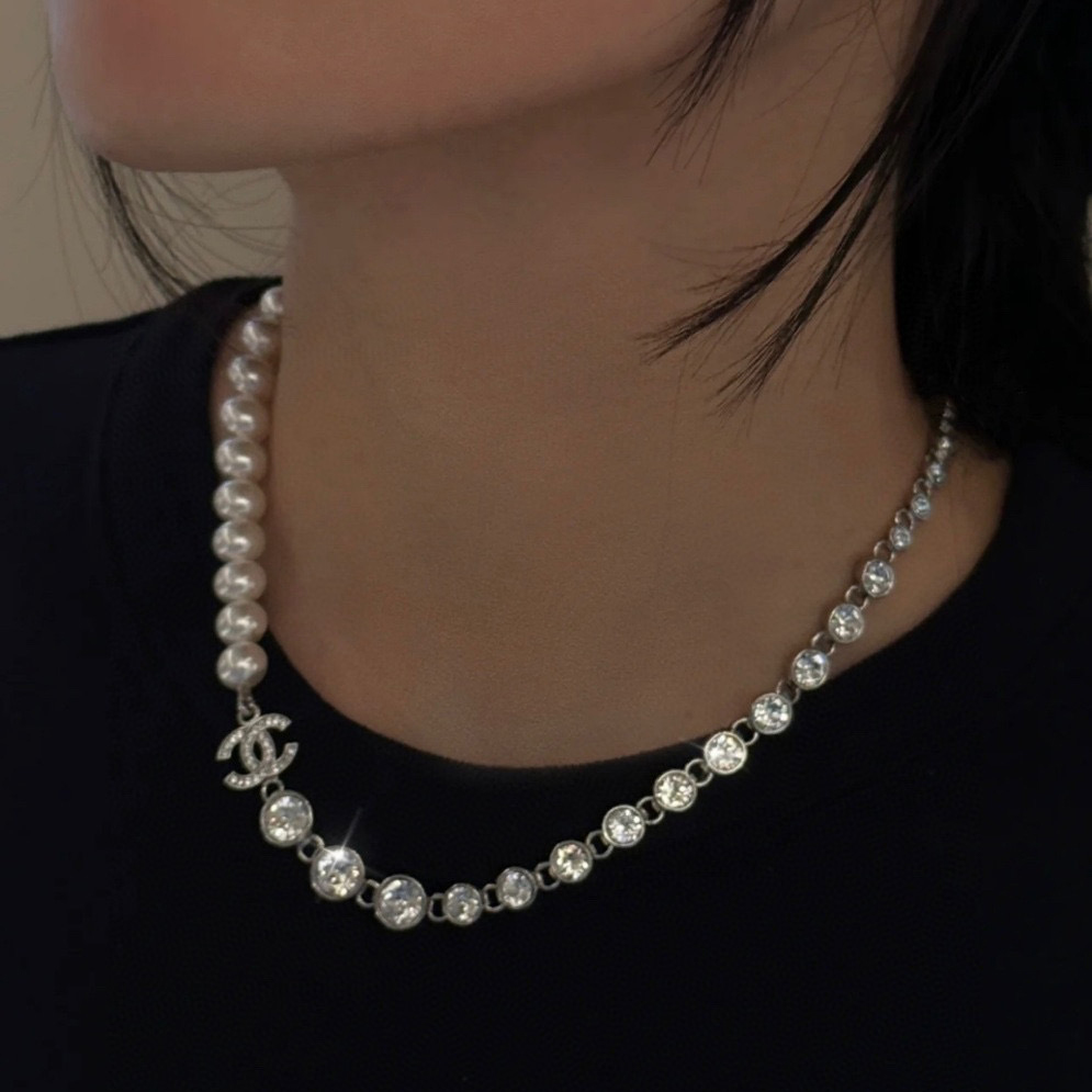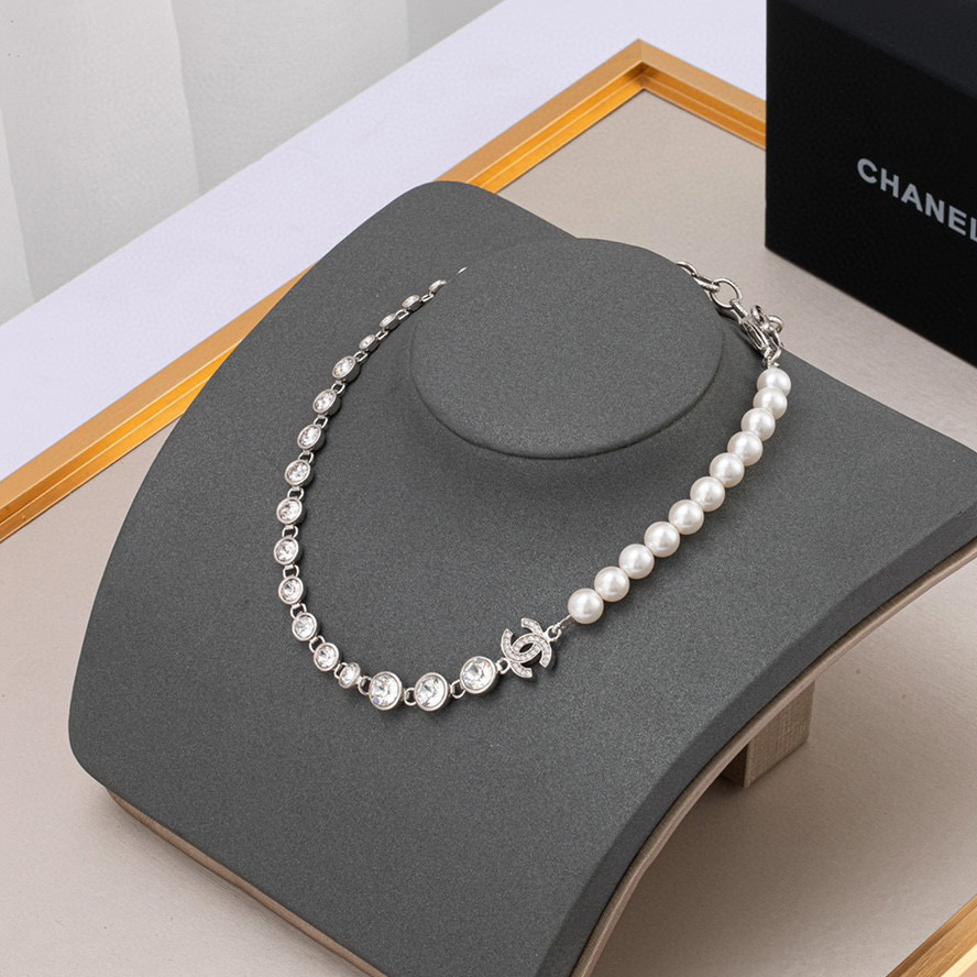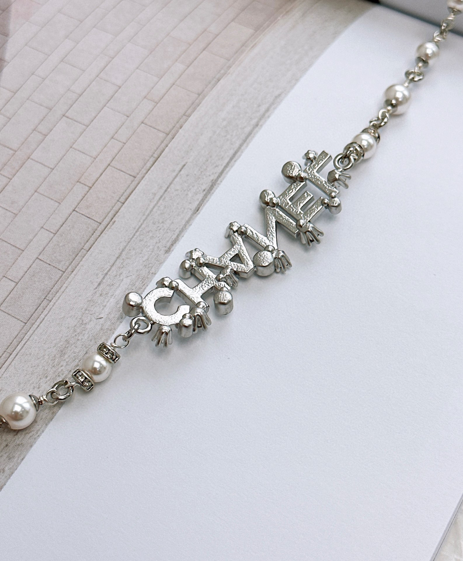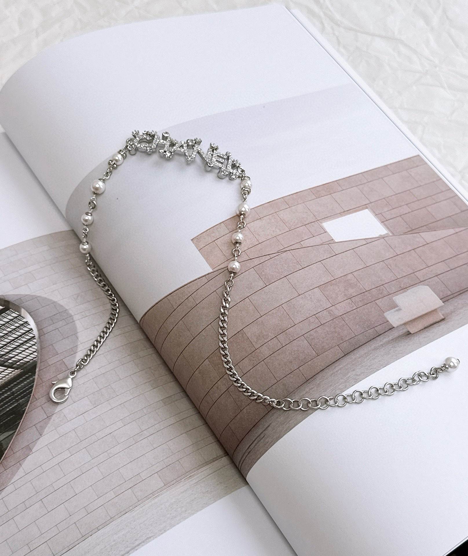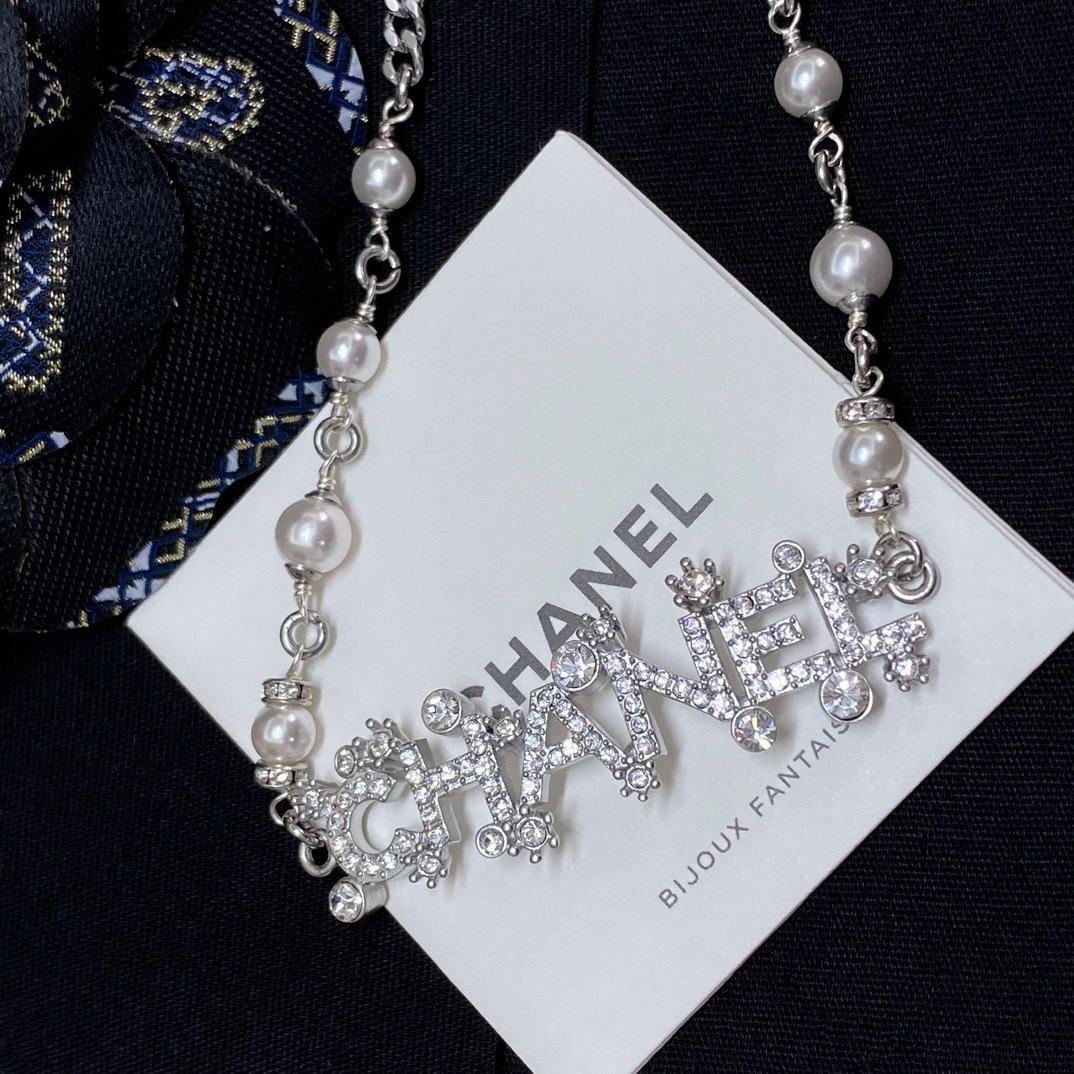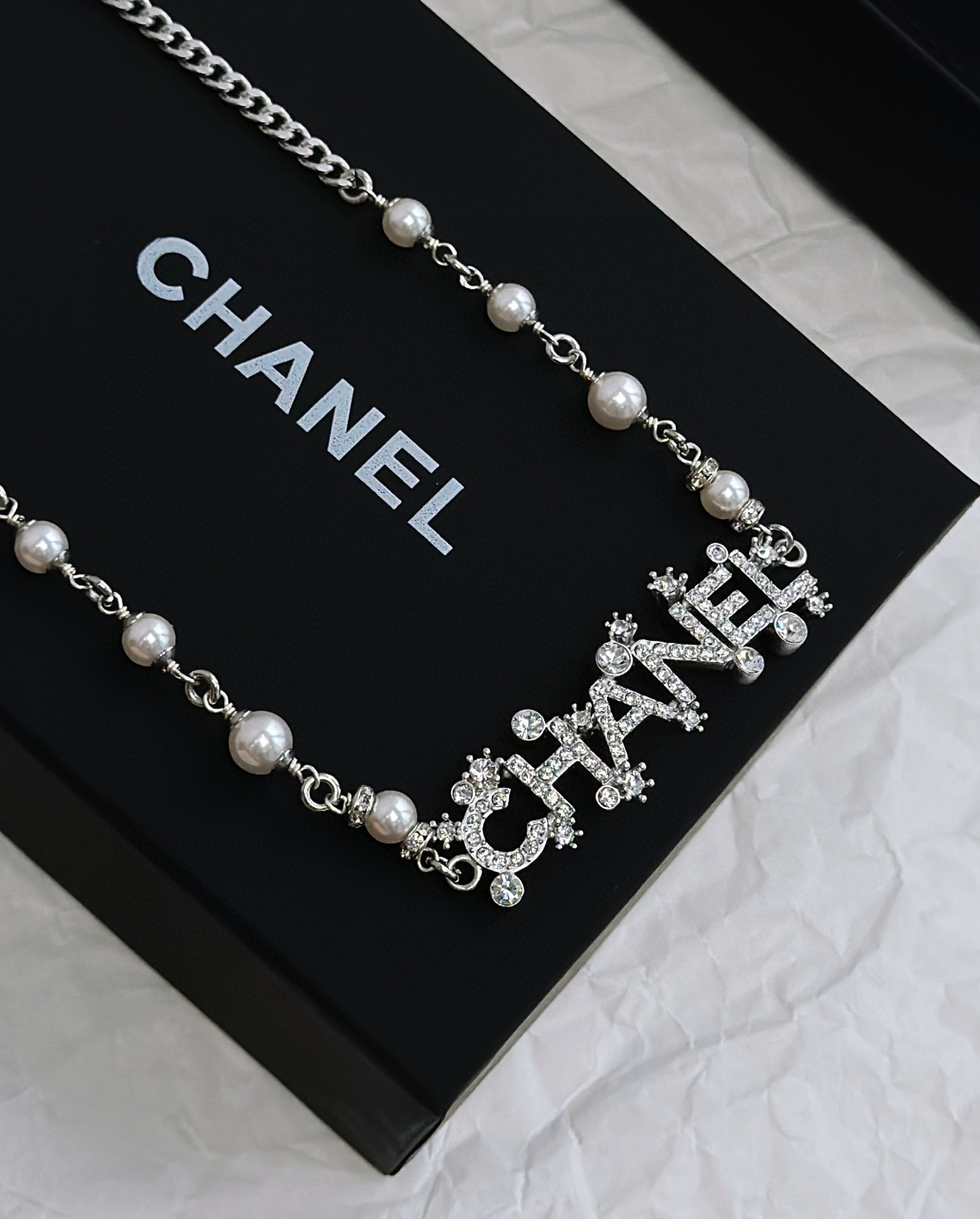 Chanel NIGO Silver Pearl Patchwork Chain Necklace Accessories #nigo57363