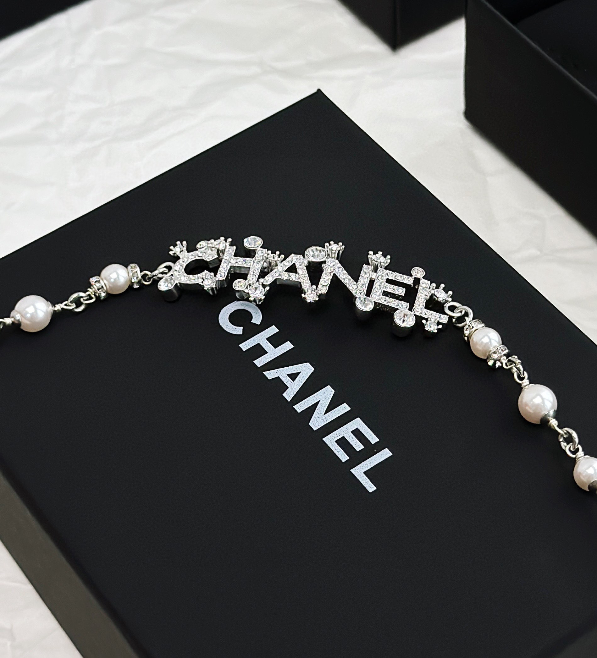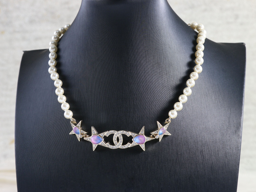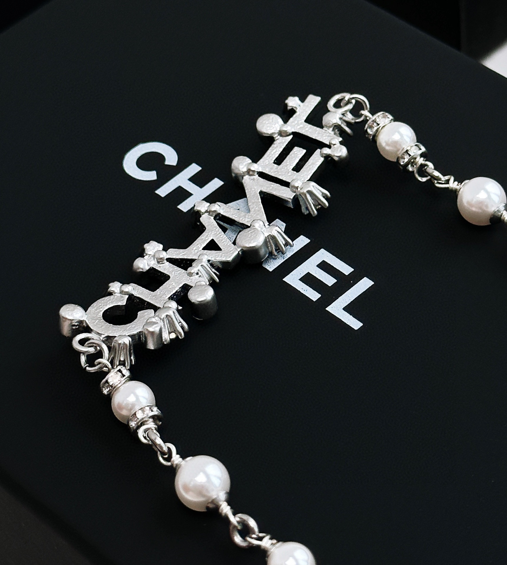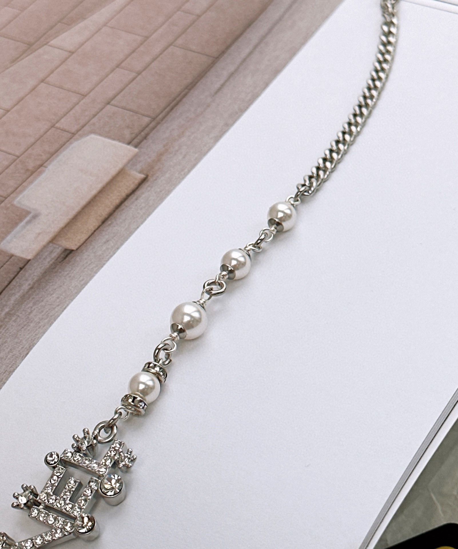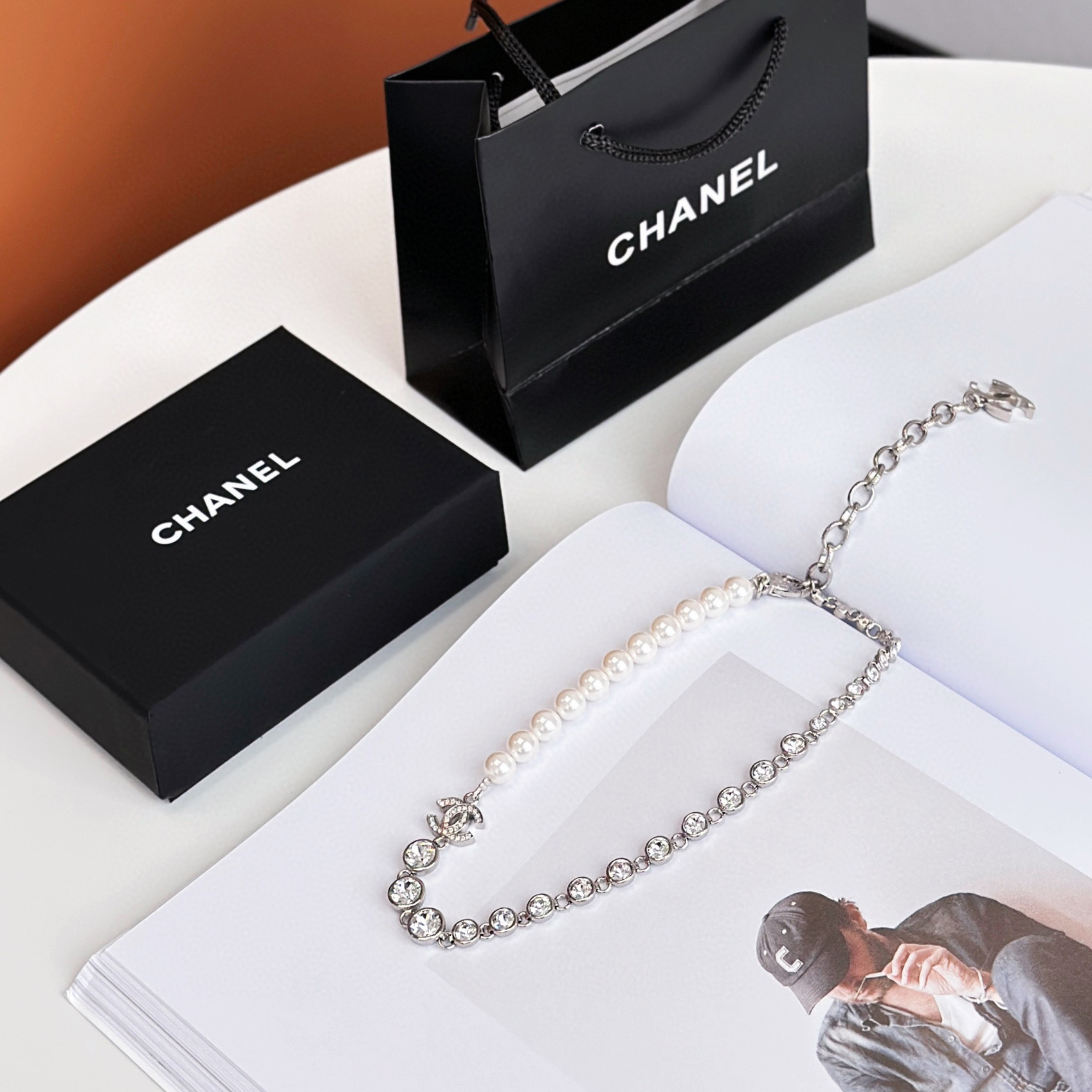 Chanel NIGO Silver Pearl Patchwork Chain Necklace Accessories #nigo57363
