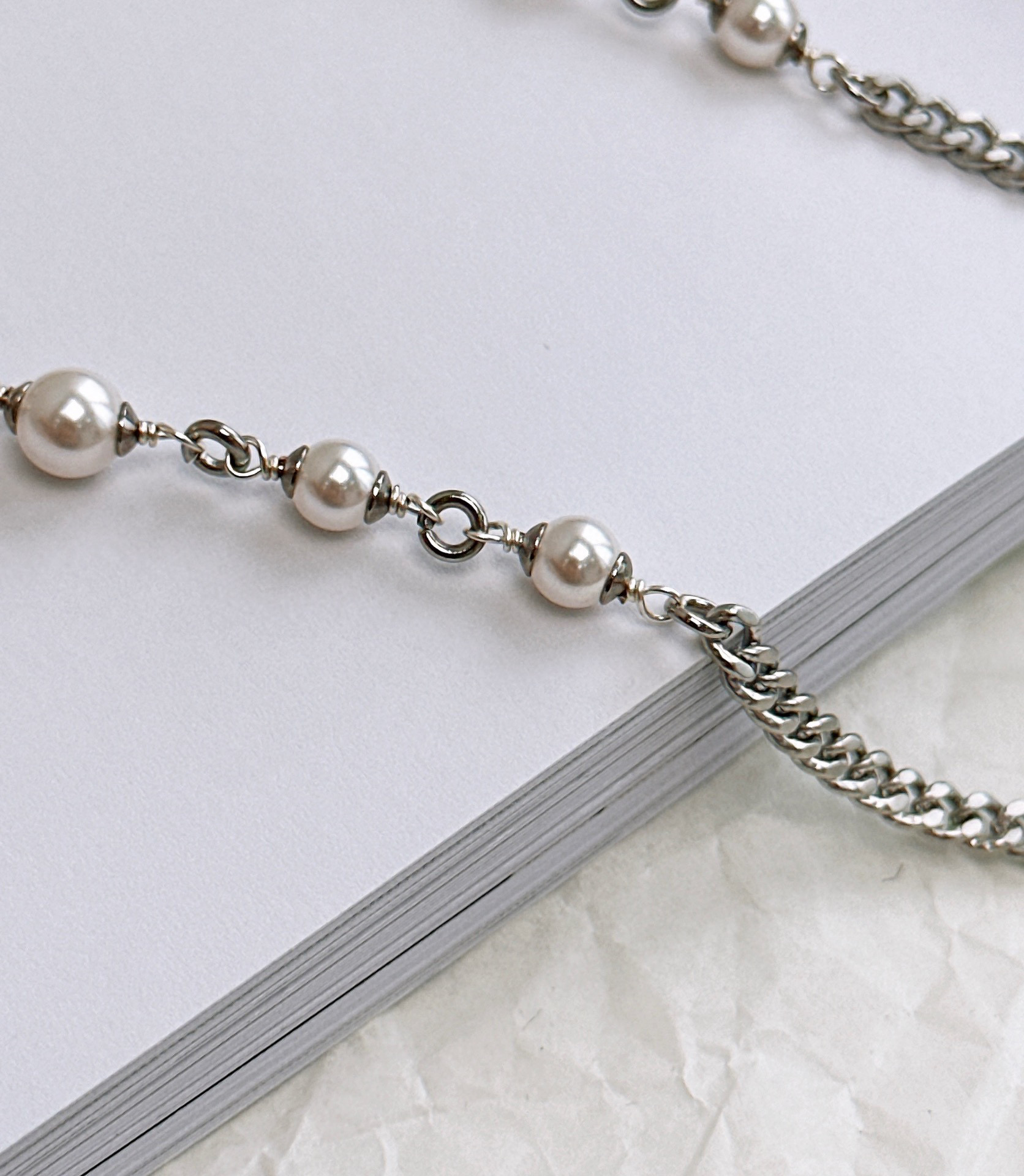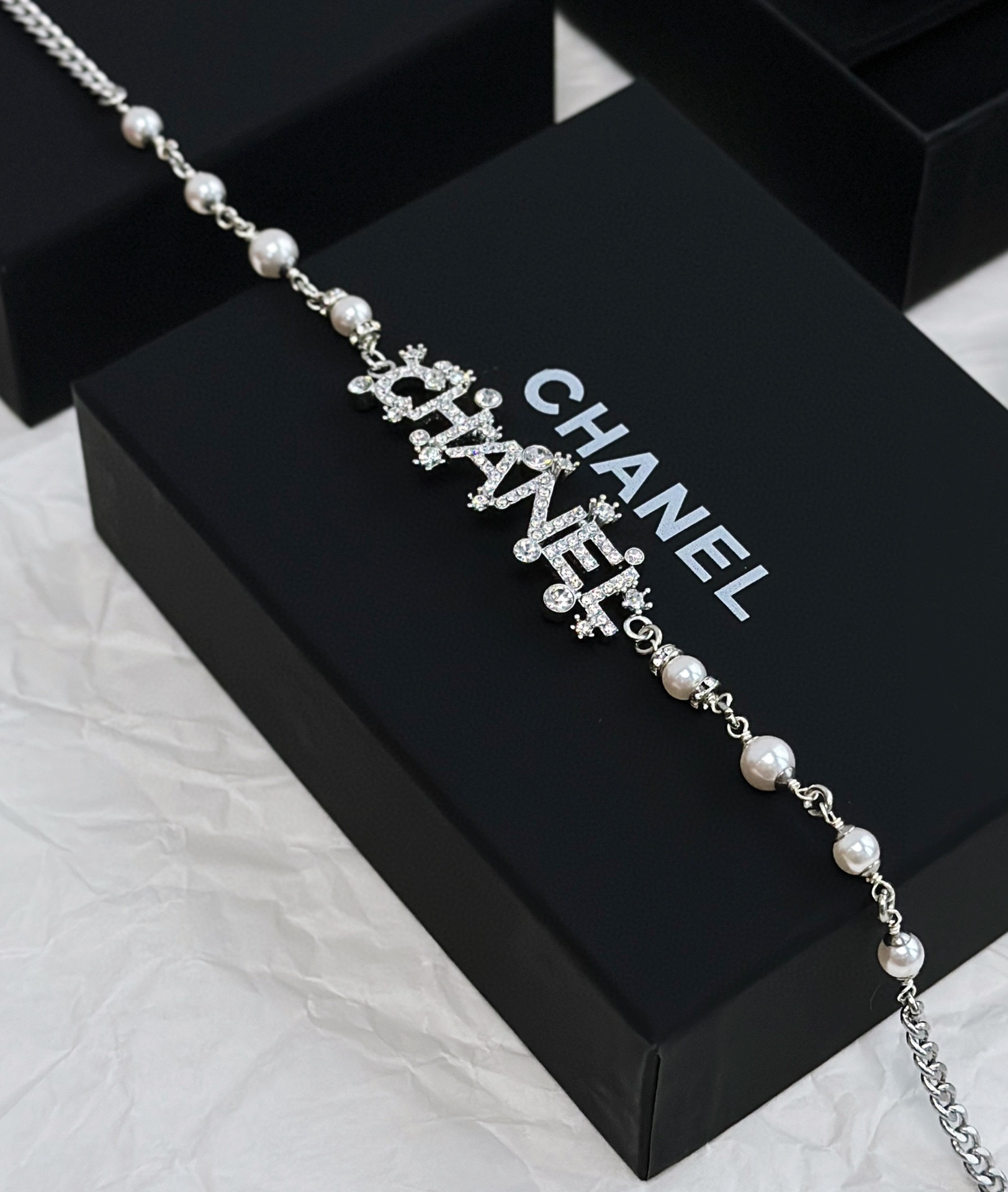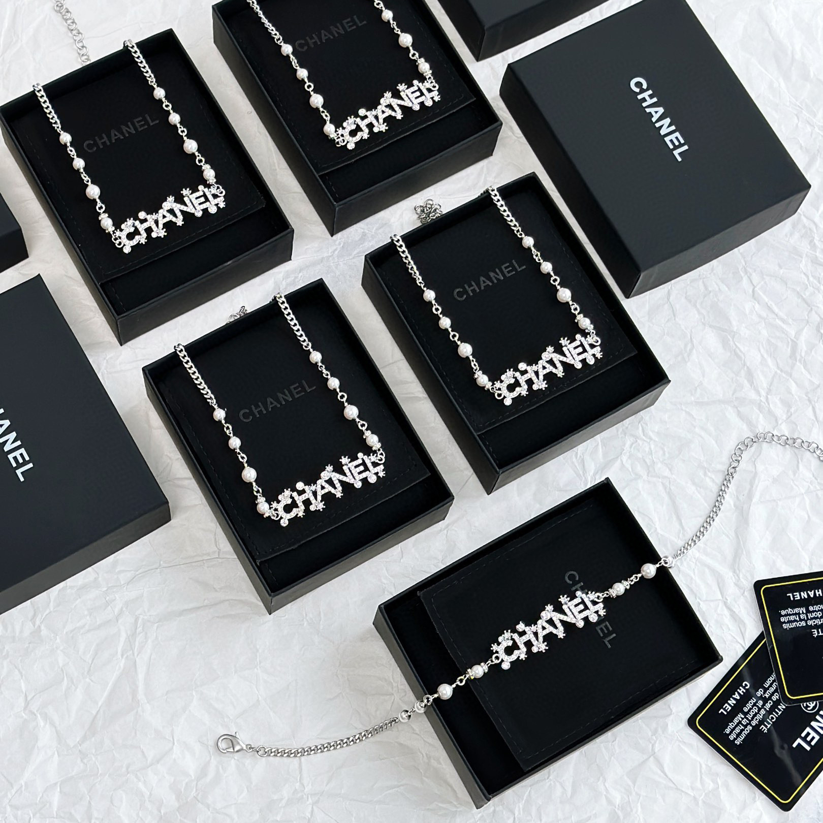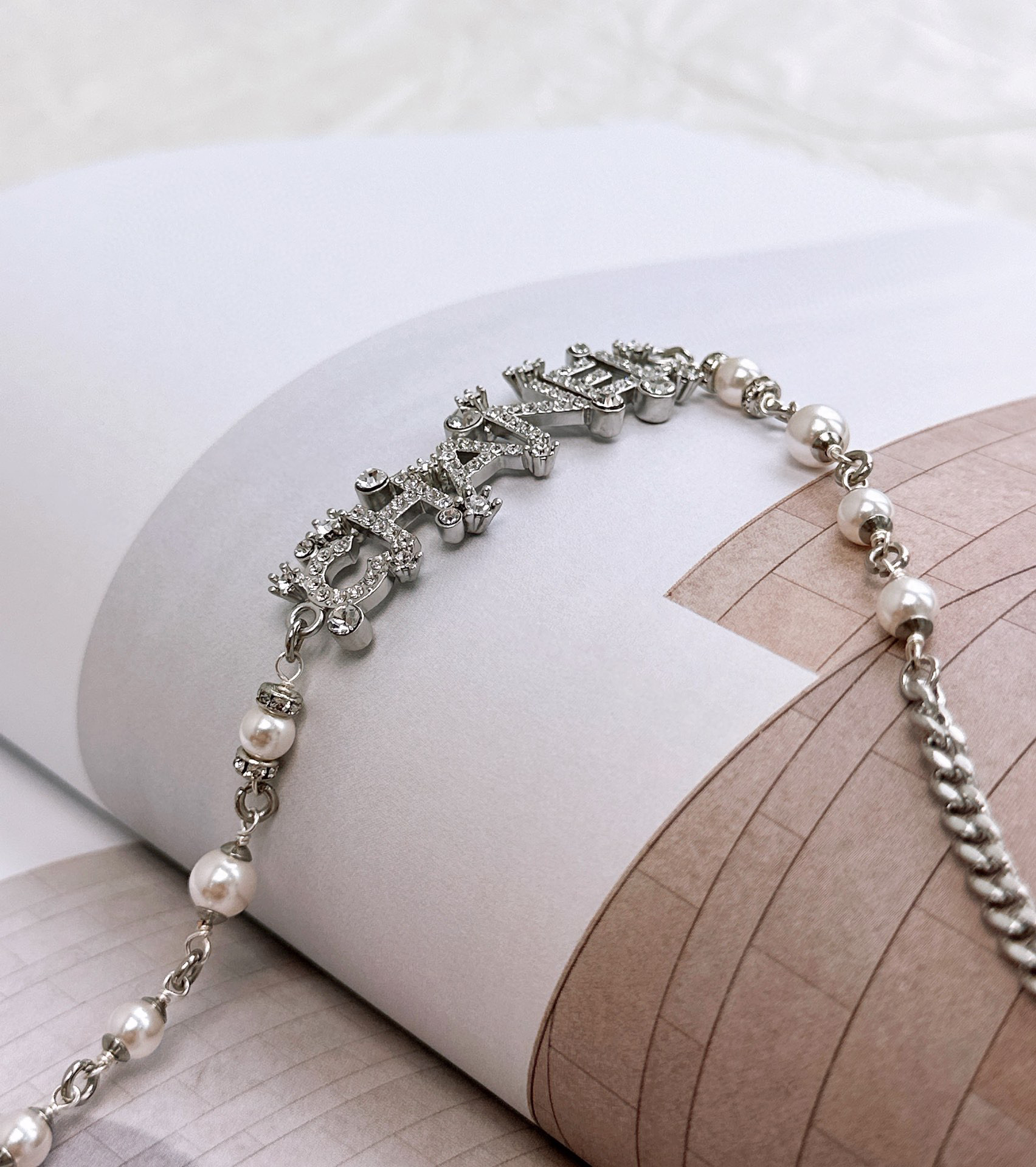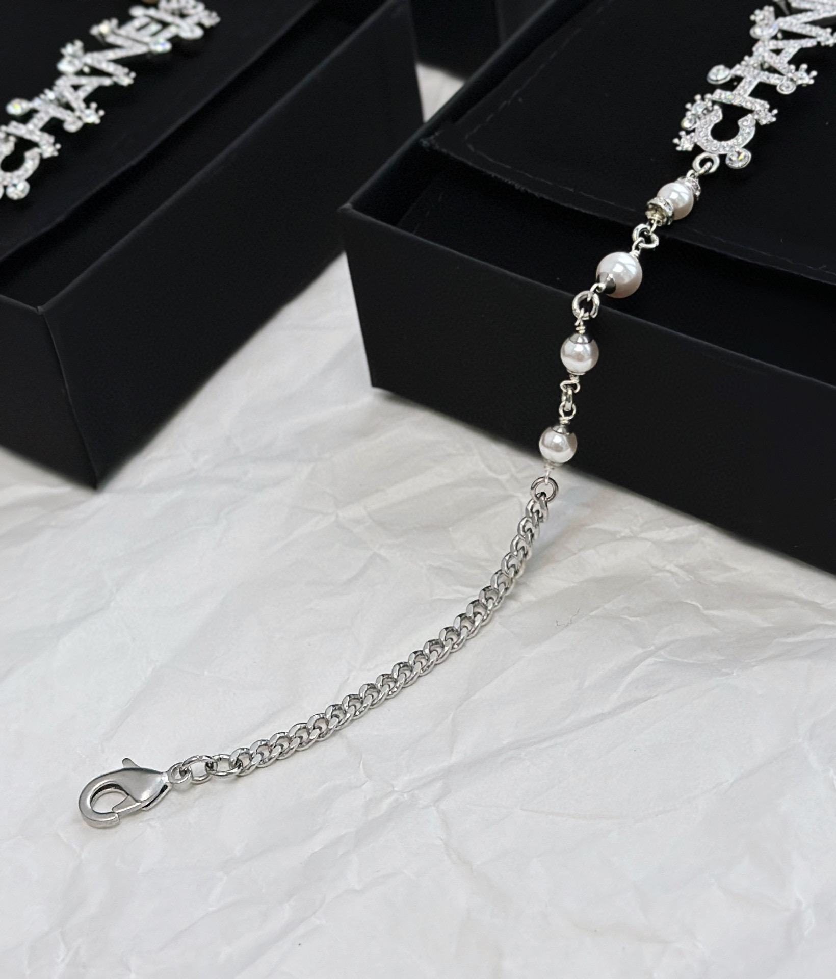 Chanel NIGO Silver Pearl Patchwork Chain Necklace Accessories #nigo57363