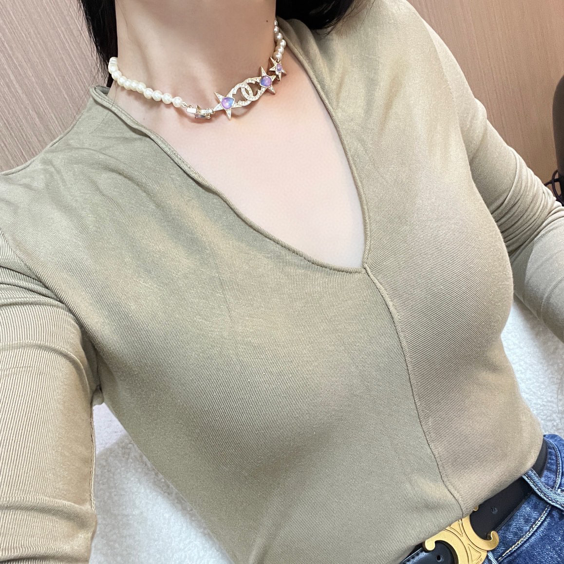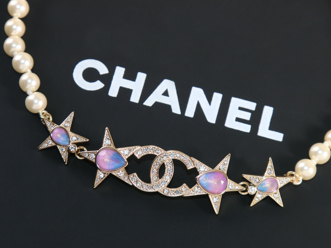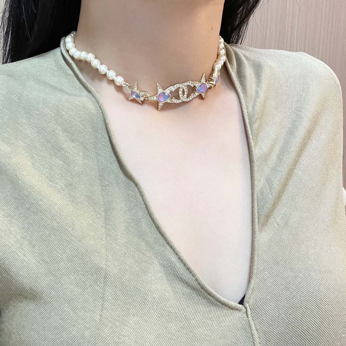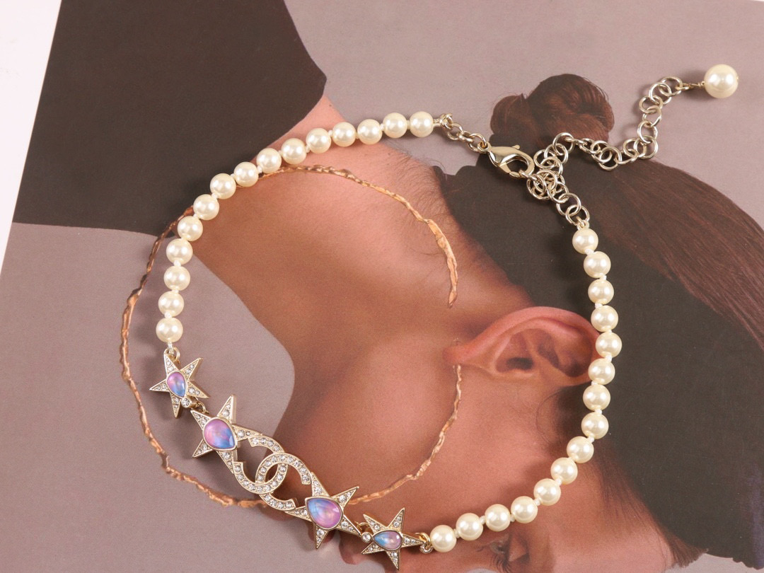 Chanel NIGO Gold Pearl Patchwork Decorative Necklace Accessories #nigo57236
