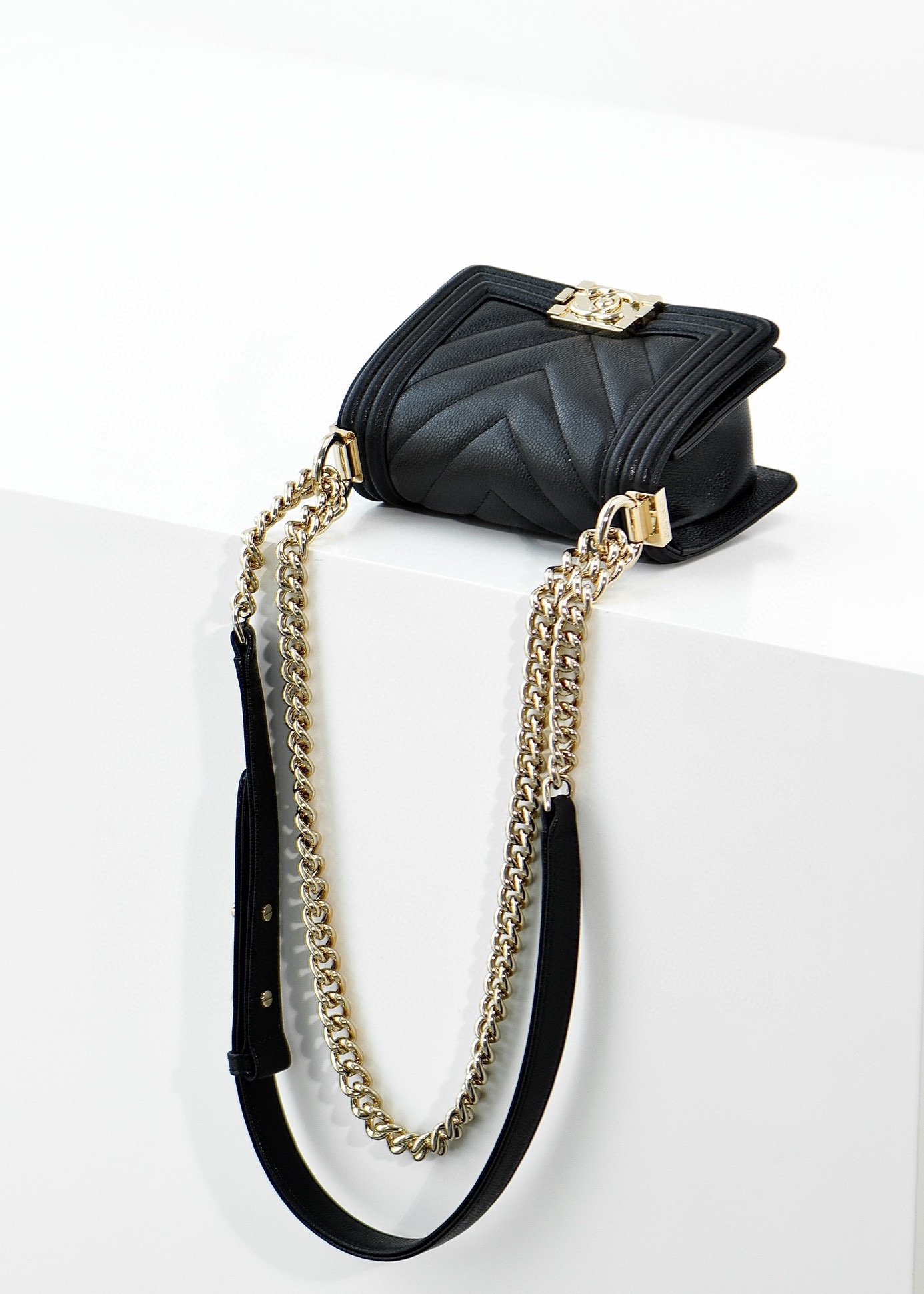 Chanel NIGO Black leather texture chain single-shoulder messenger bag #nigo56887