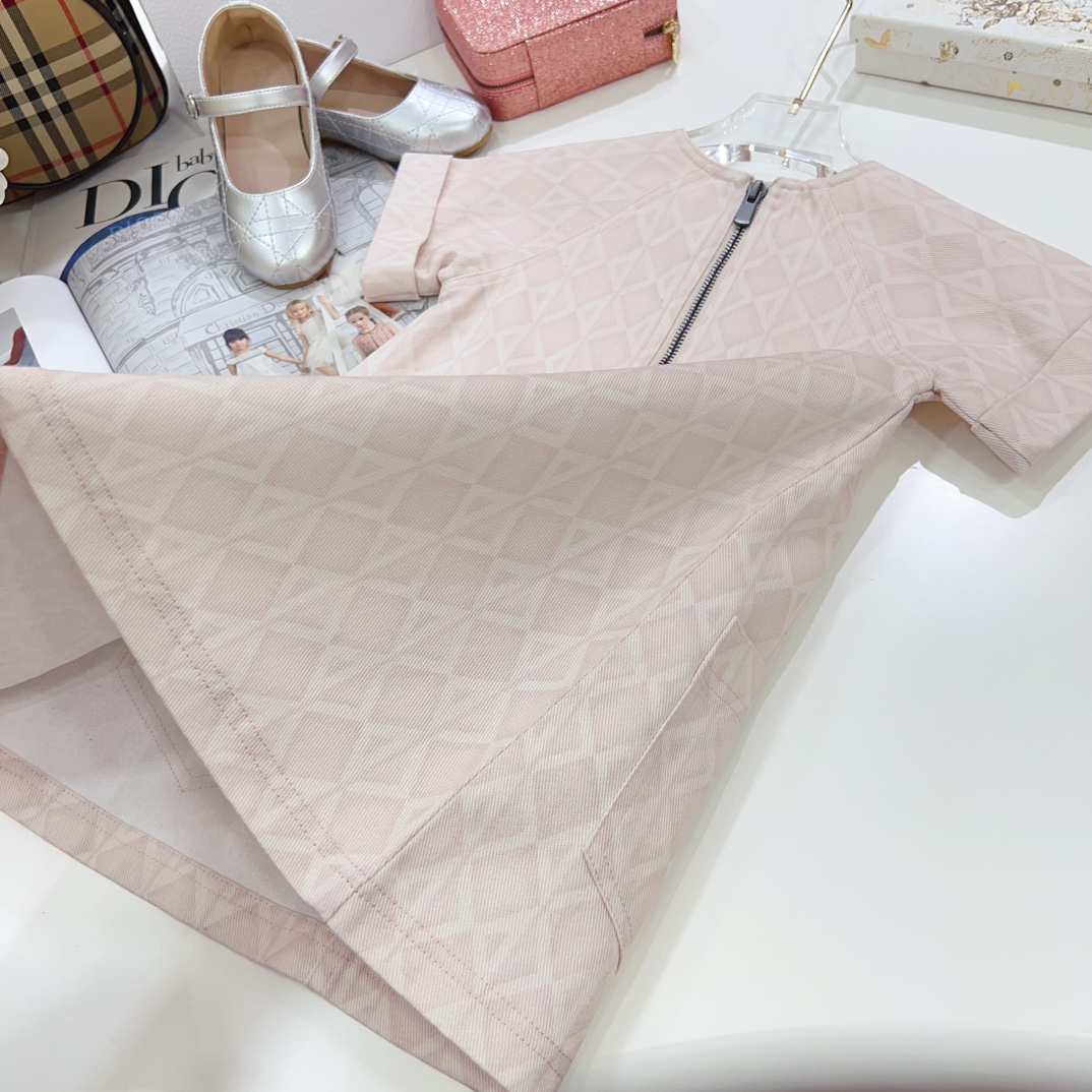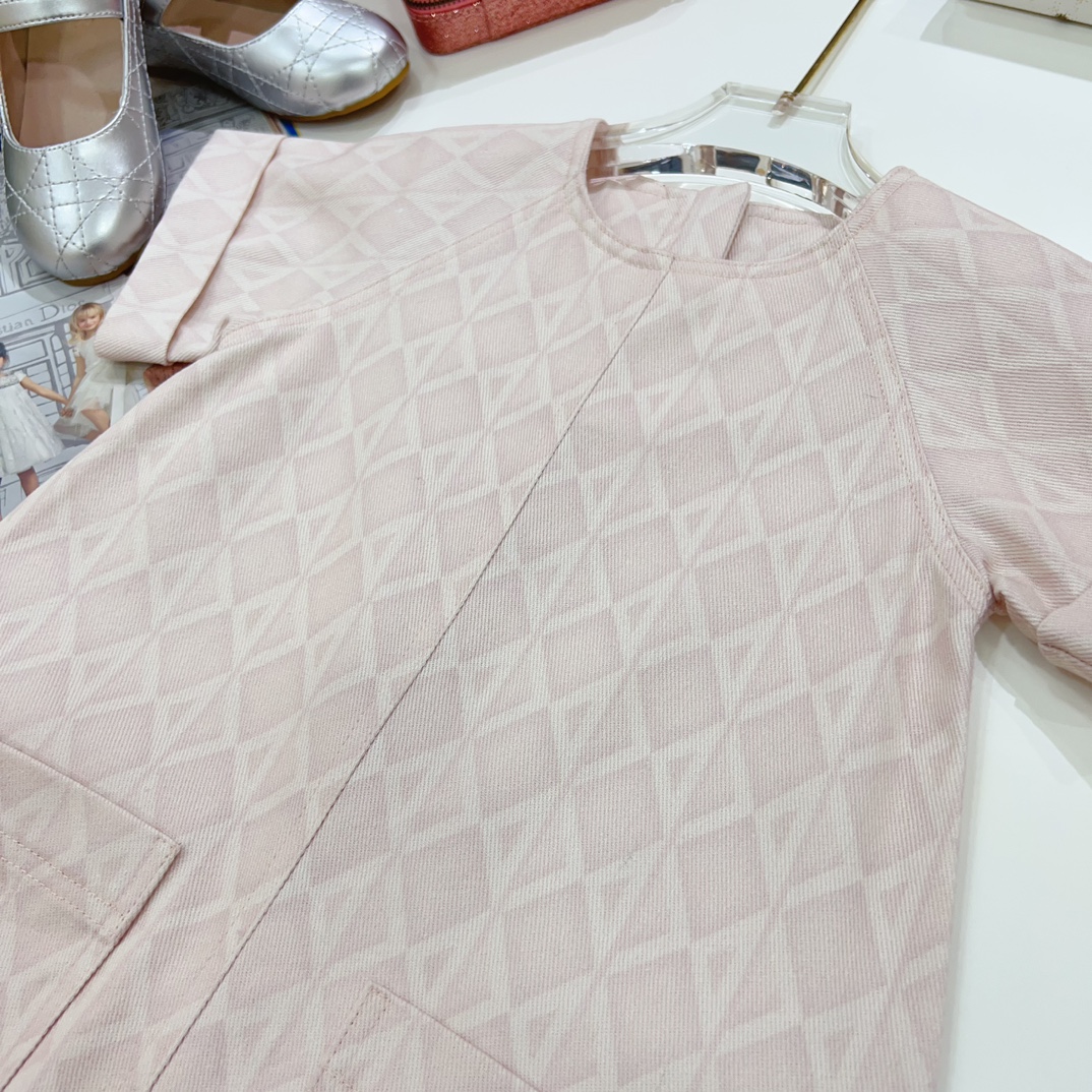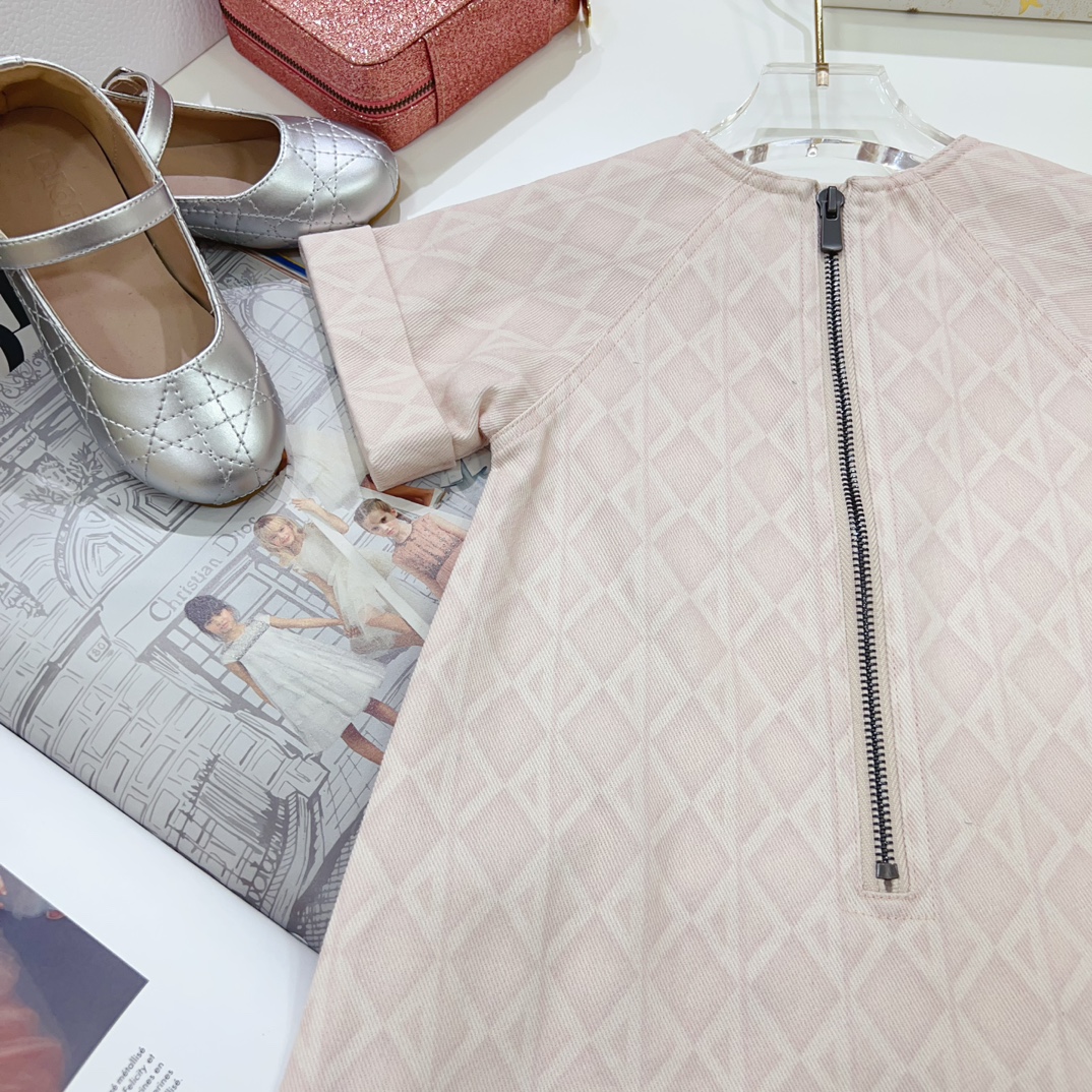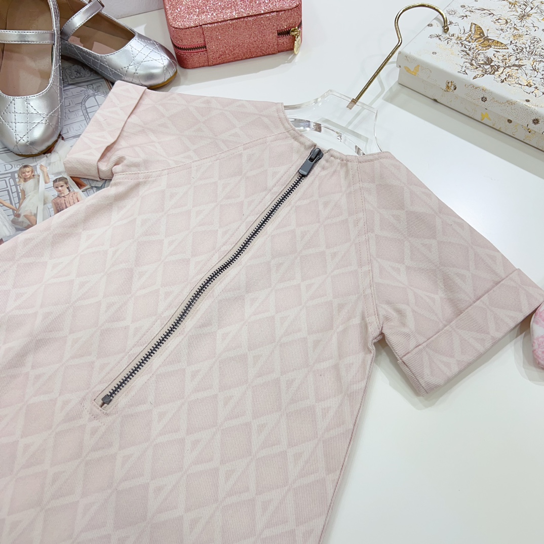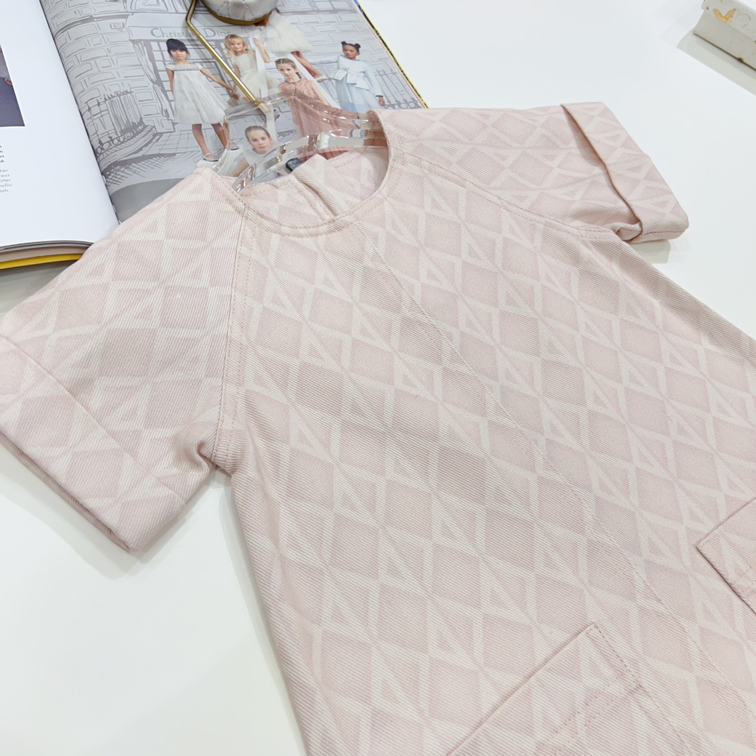 NIGO Dior Kid's Summer Logo Full Printed Round Neck Zipper Short Sleeve Pink A-Line Dress Button Long Pinafre Dress Casual Straight Shorts #nigo31287