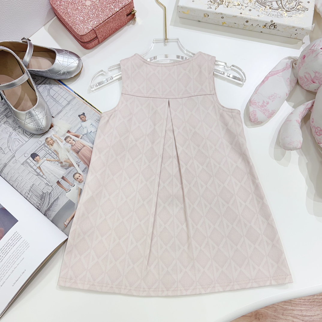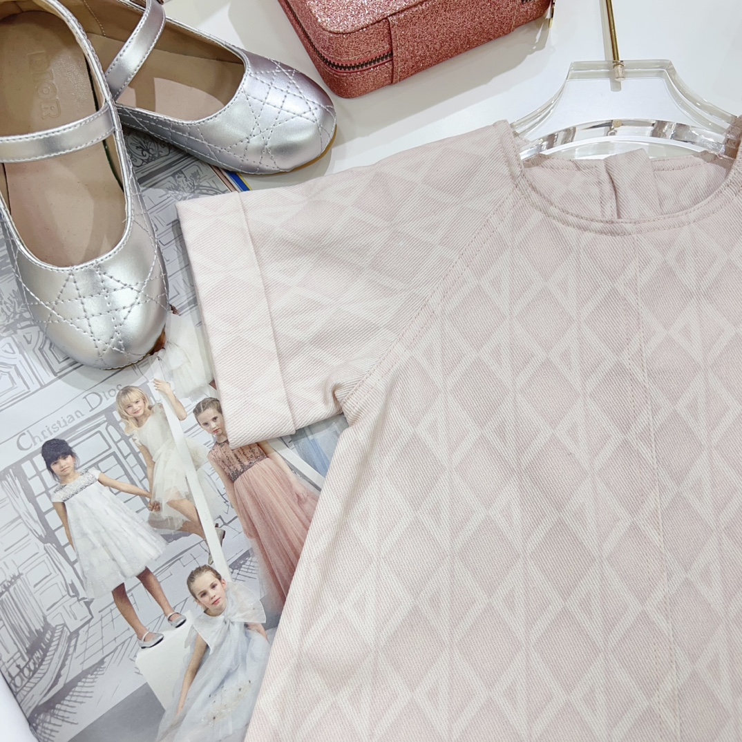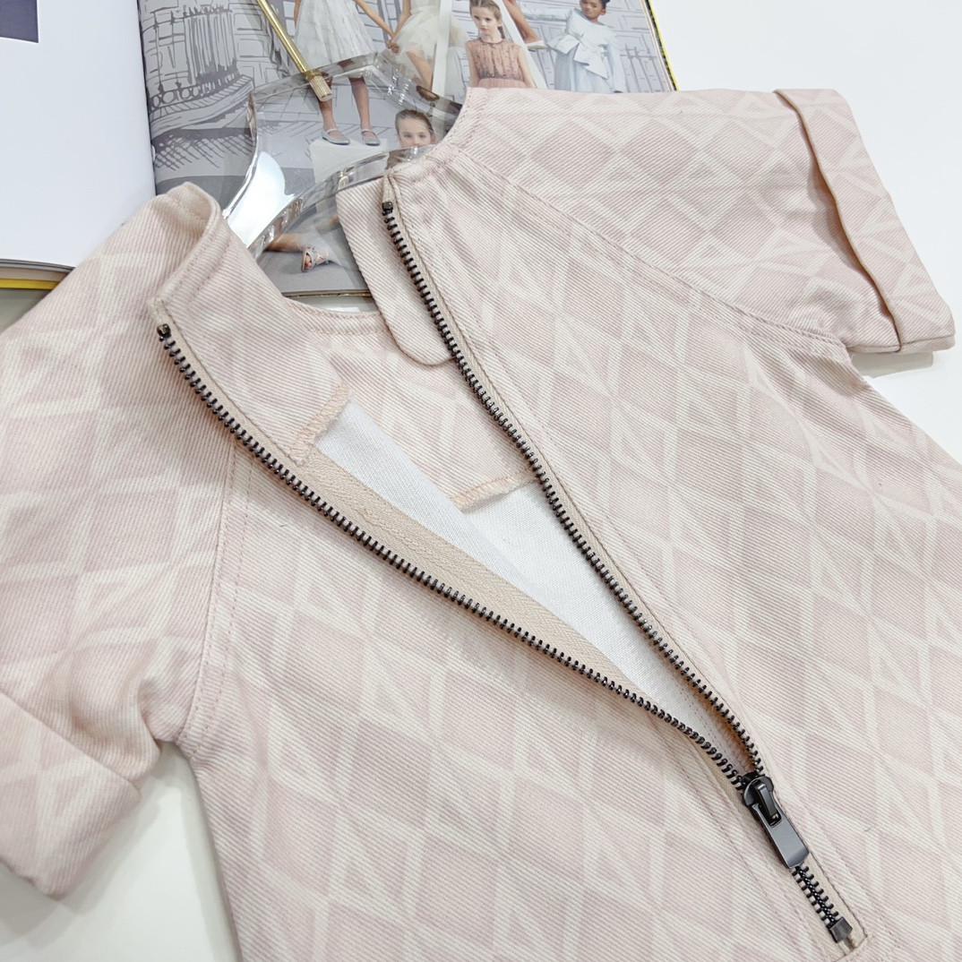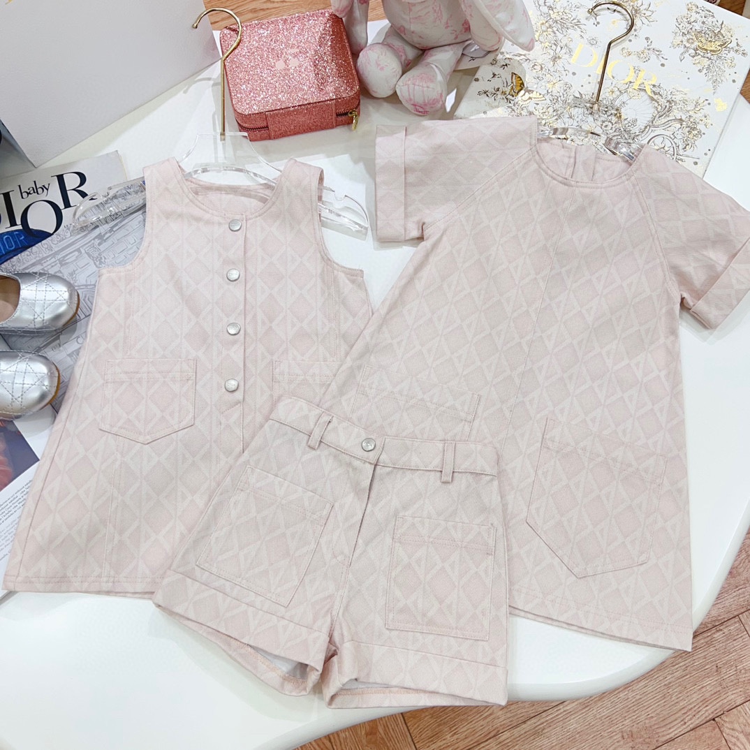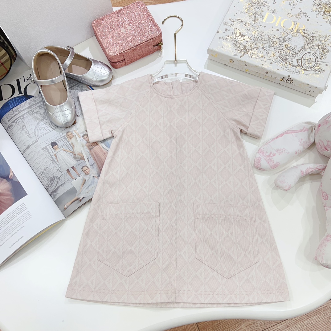 NIGO Dior Kid's Summer Logo Full Printed Round Neck Zipper Short Sleeve Pink A-Line Dress Button Long Pinafre Dress Casual Straight Shorts #nigo31287