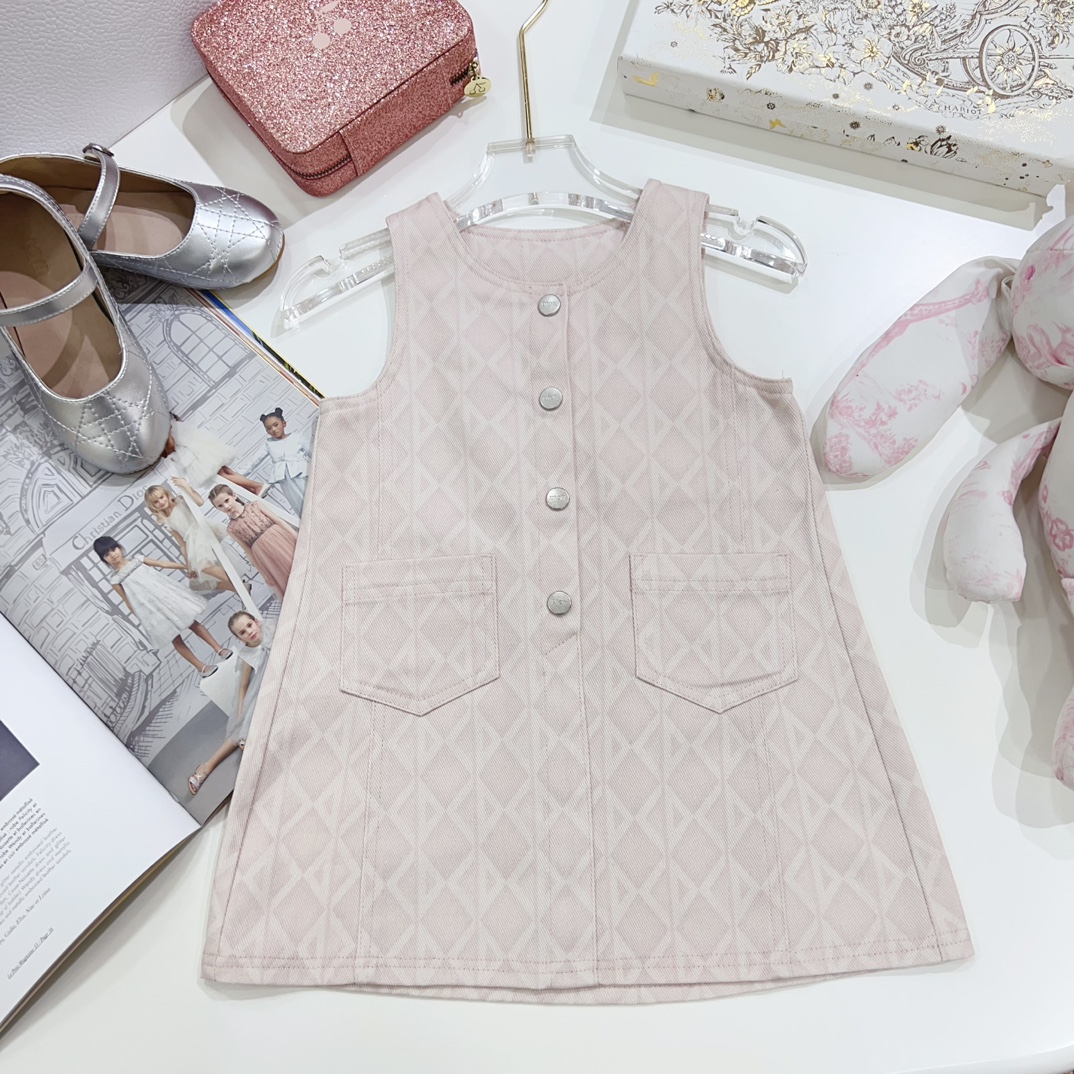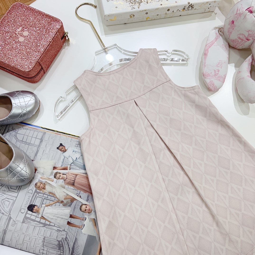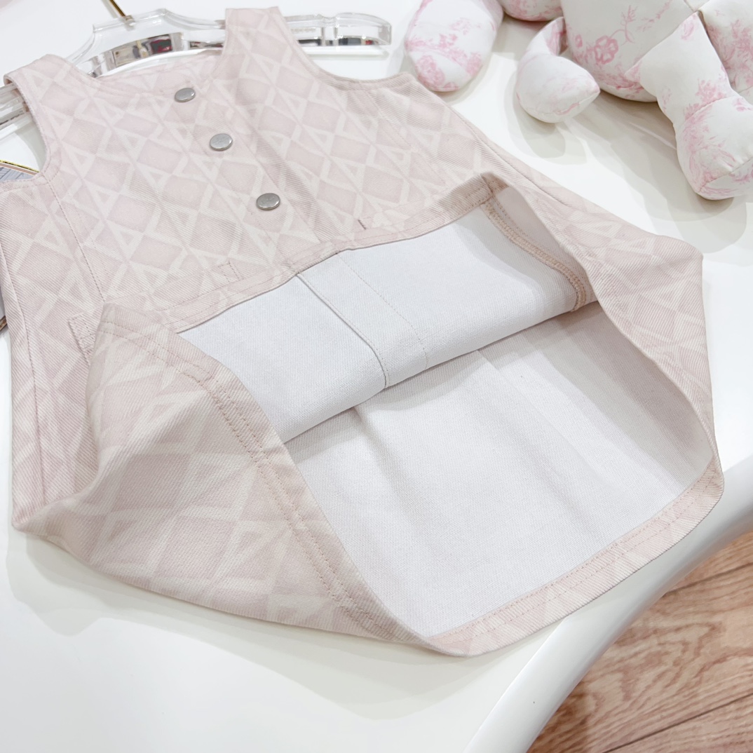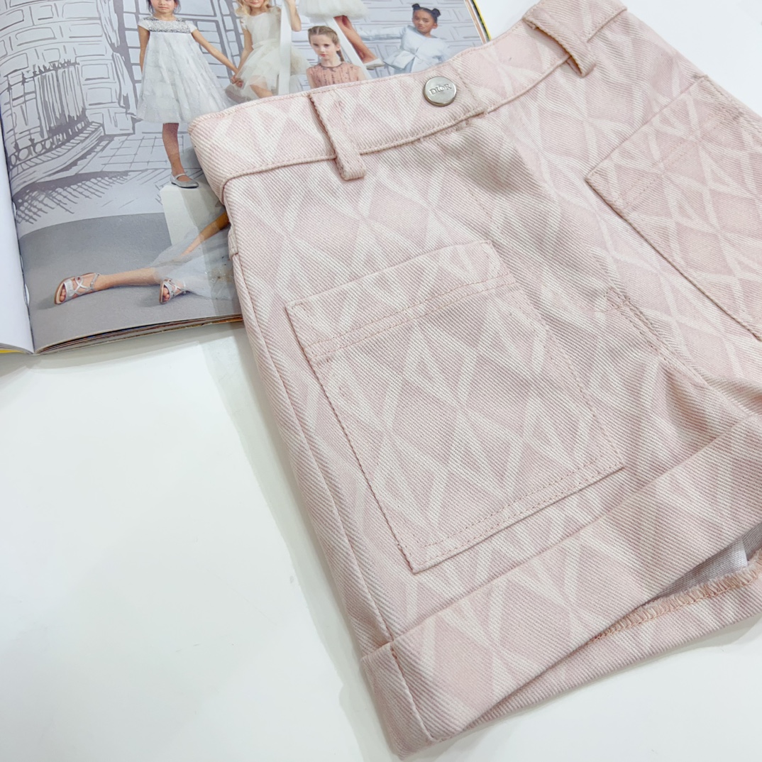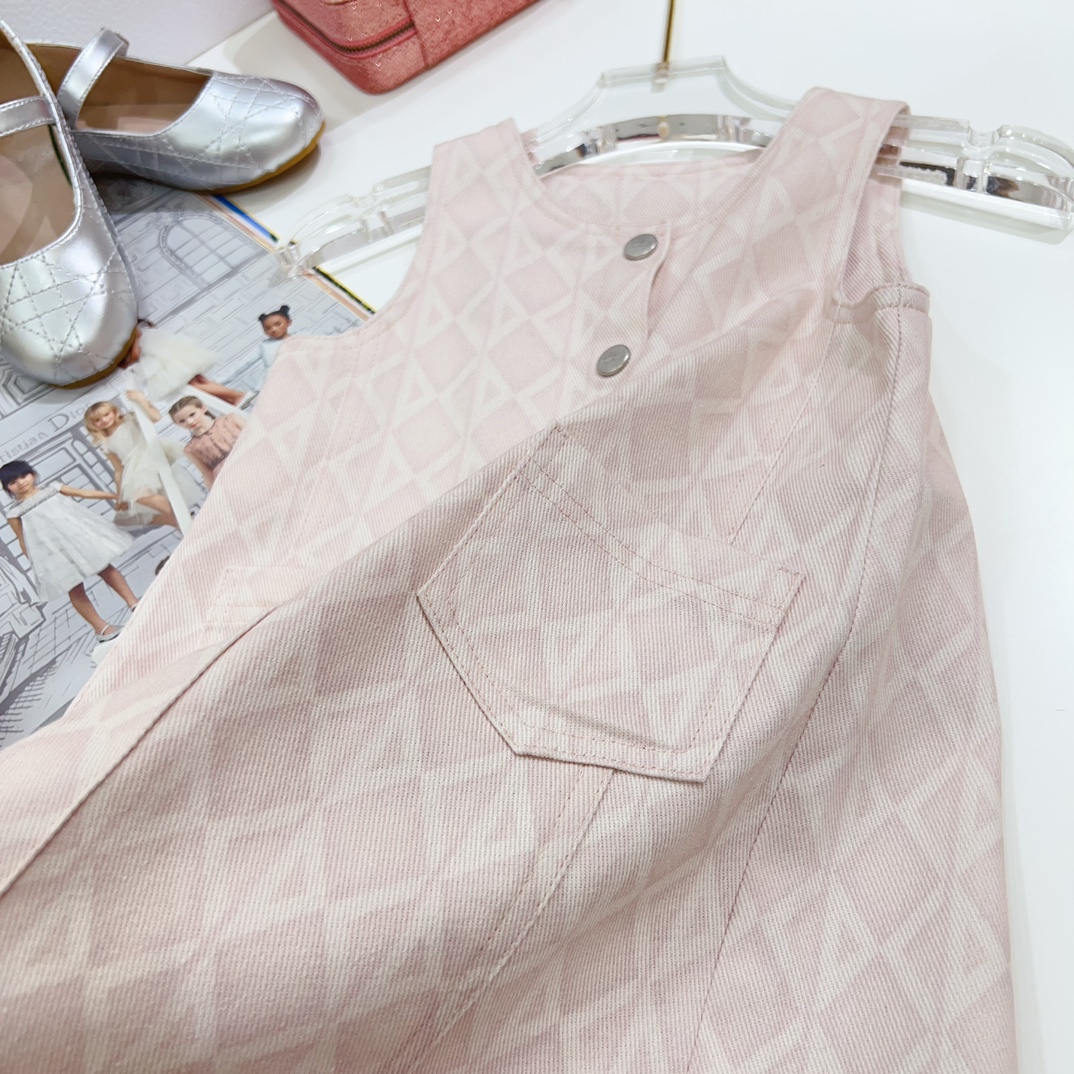 NIGO Dior Kid's Summer Logo Full Printed Round Neck Zipper Short Sleeve Pink A-Line Dress Button Long Pinafre Dress Casual Straight Shorts #nigo31287