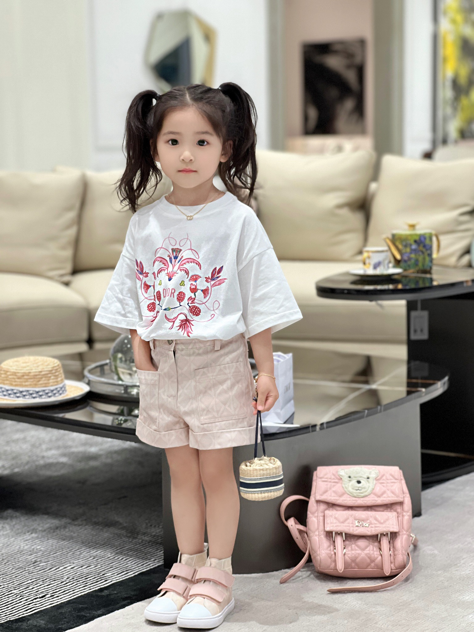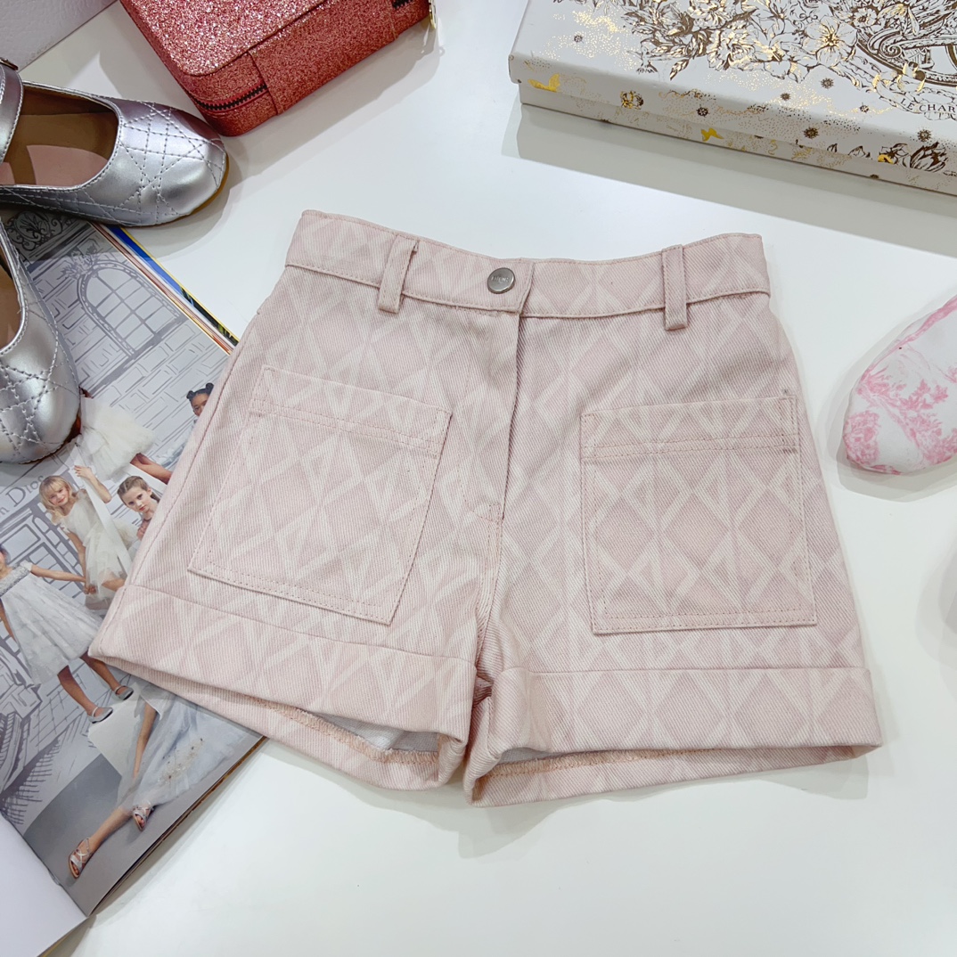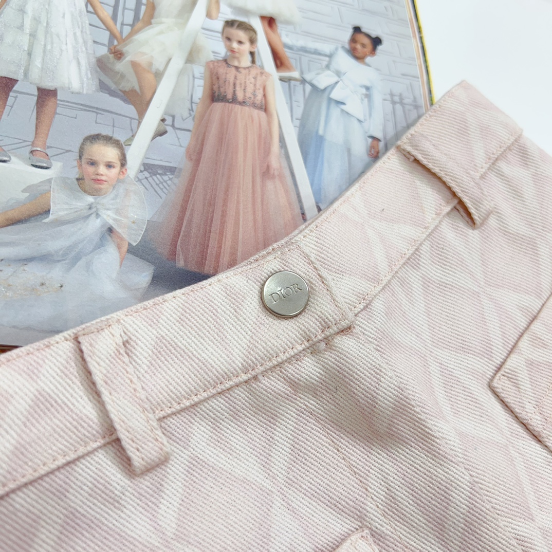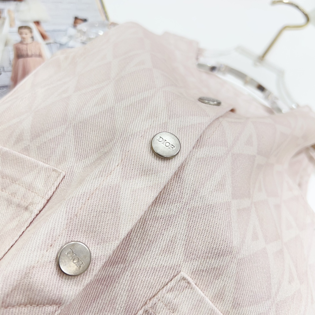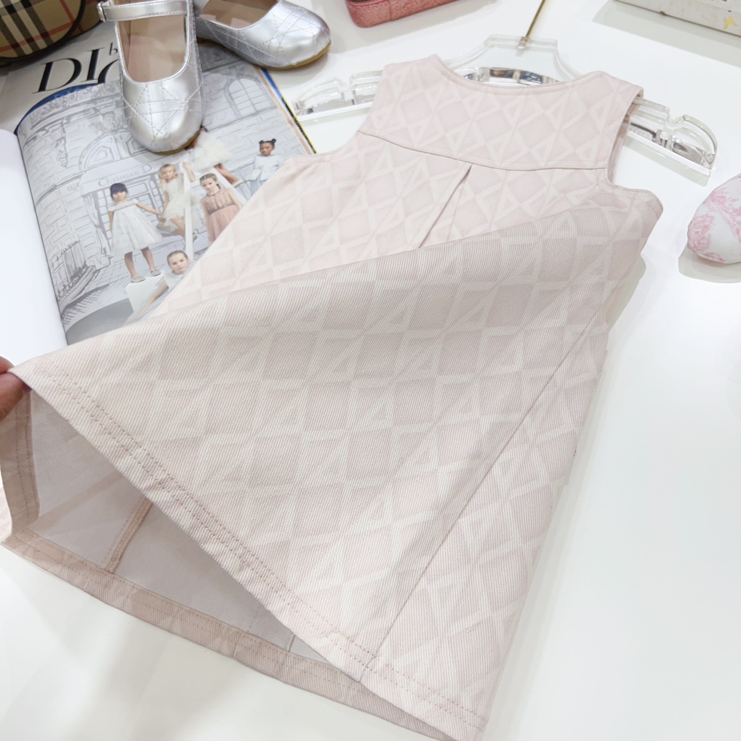 NIGO Dior Kid's Summer Logo Full Printed Round Neck Zipper Short Sleeve Pink A-Line Dress Button Long Pinafre Dress Casual Straight Shorts #nigo31287