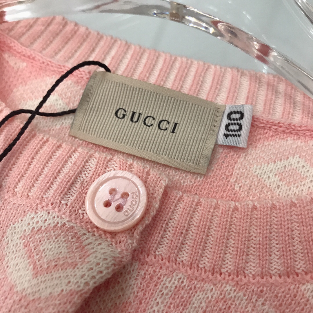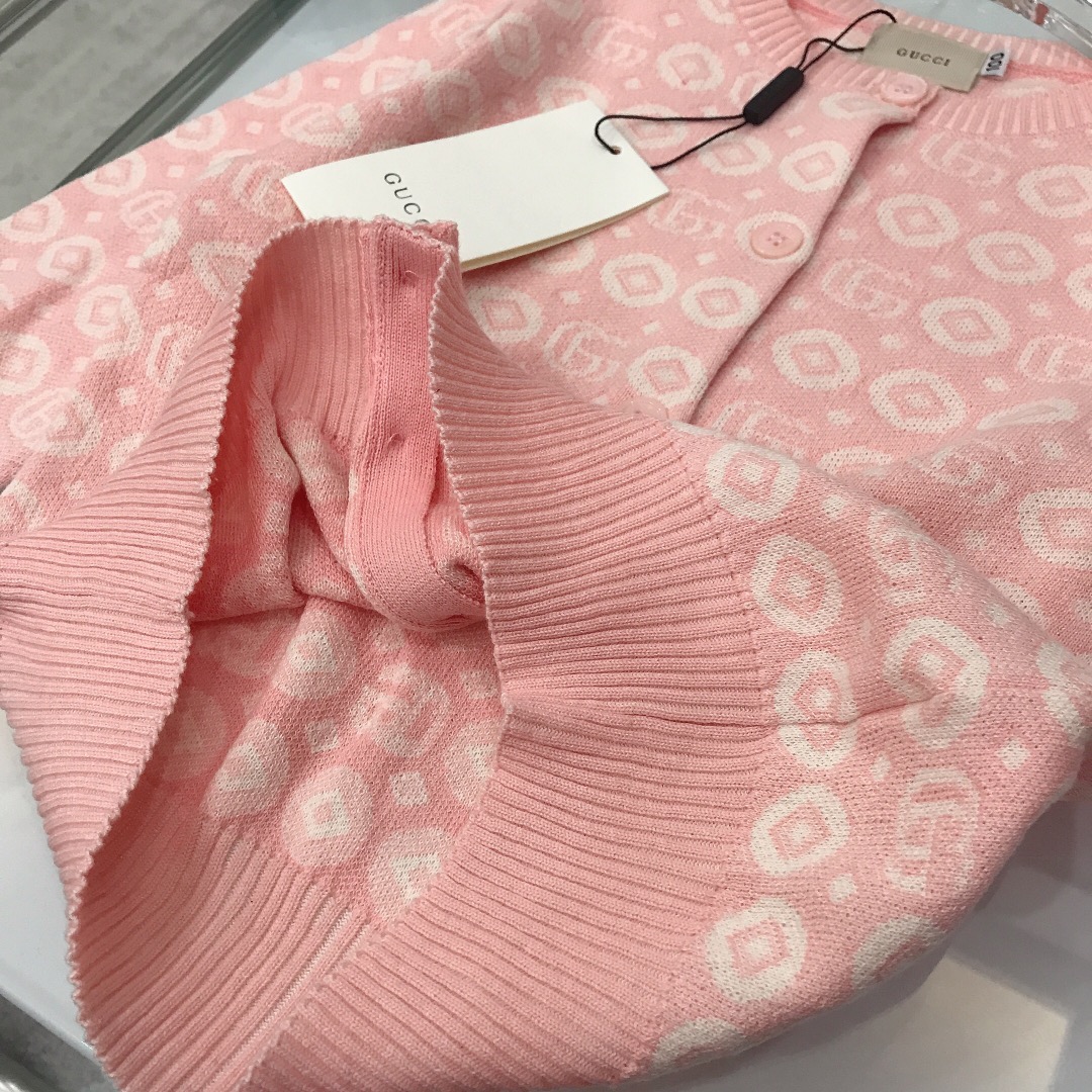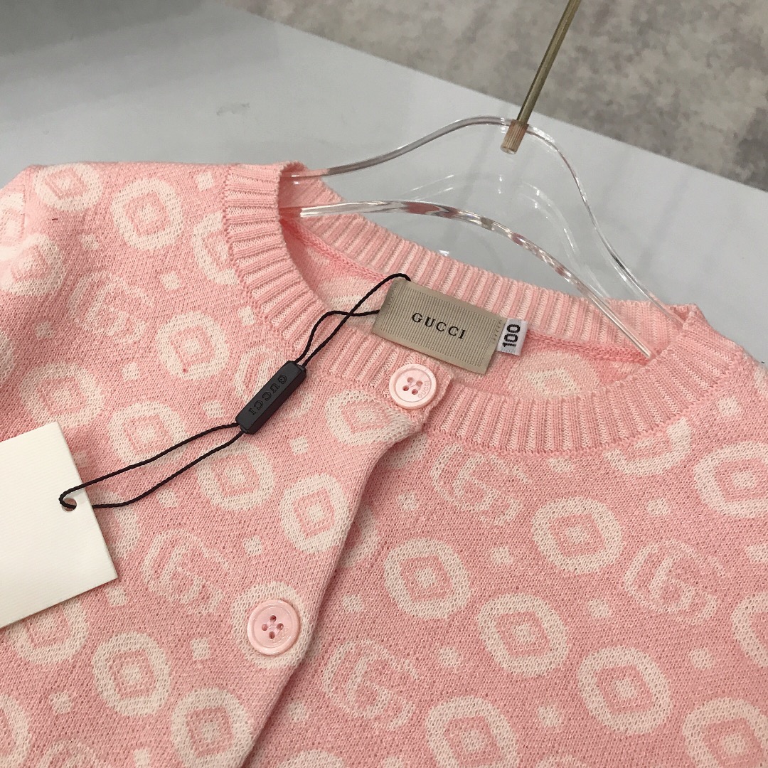 NIGO Gucci Kid's Spring, Fall And Winter Double G Jacquard Cotton Round Neck Long-Sleeved Casual Pink Knitted Cardigan #nigo31347
