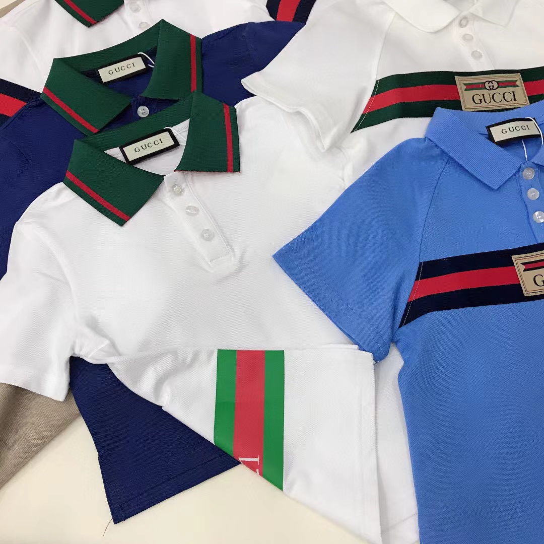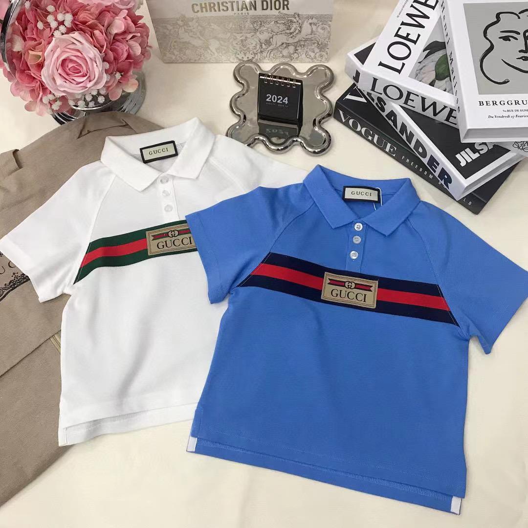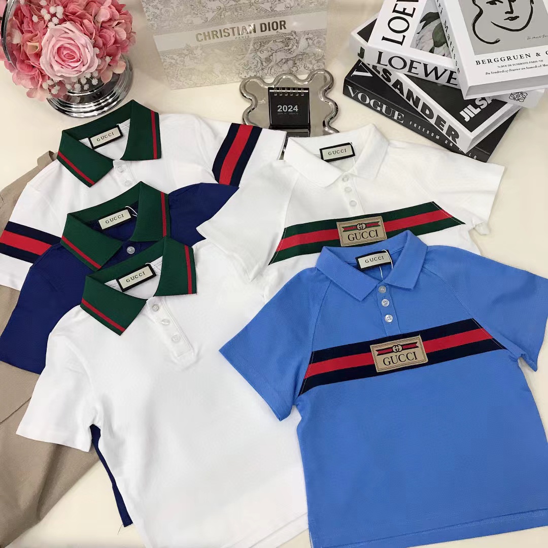 NIGO Gucci Kid's Summer Solid Color Striped Cotton Webbing Straight Short Sleeve Fitted Polo Shirt #nigo31274