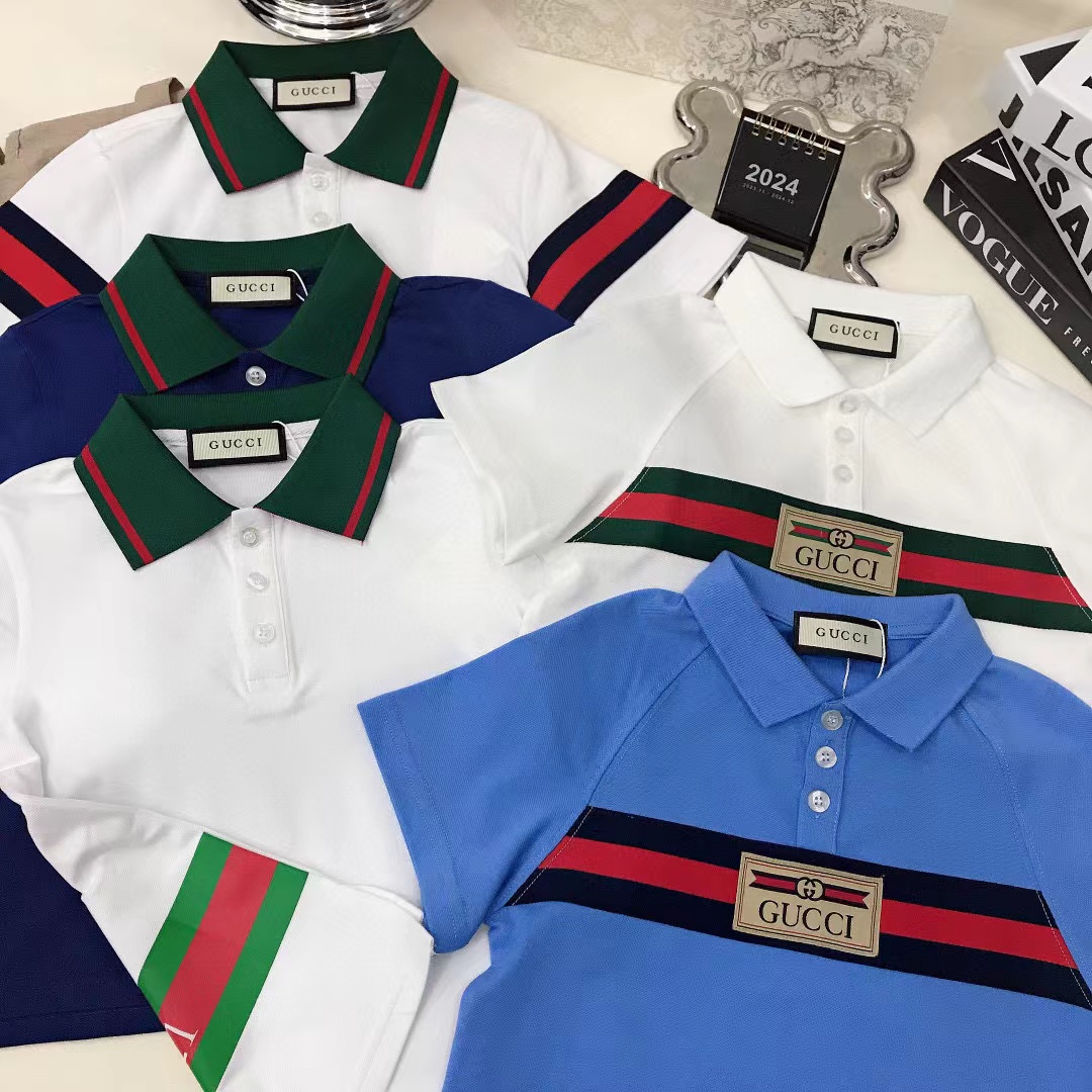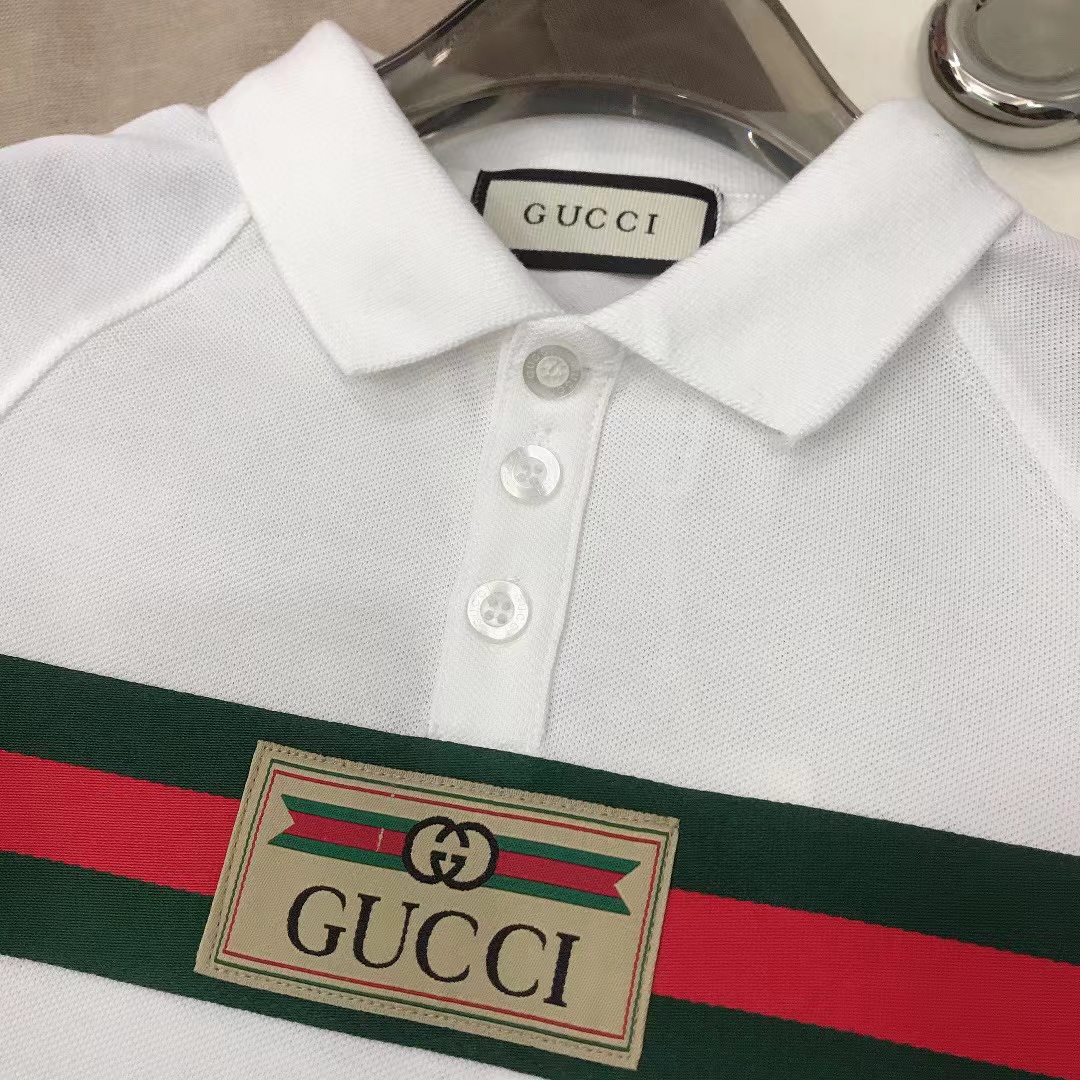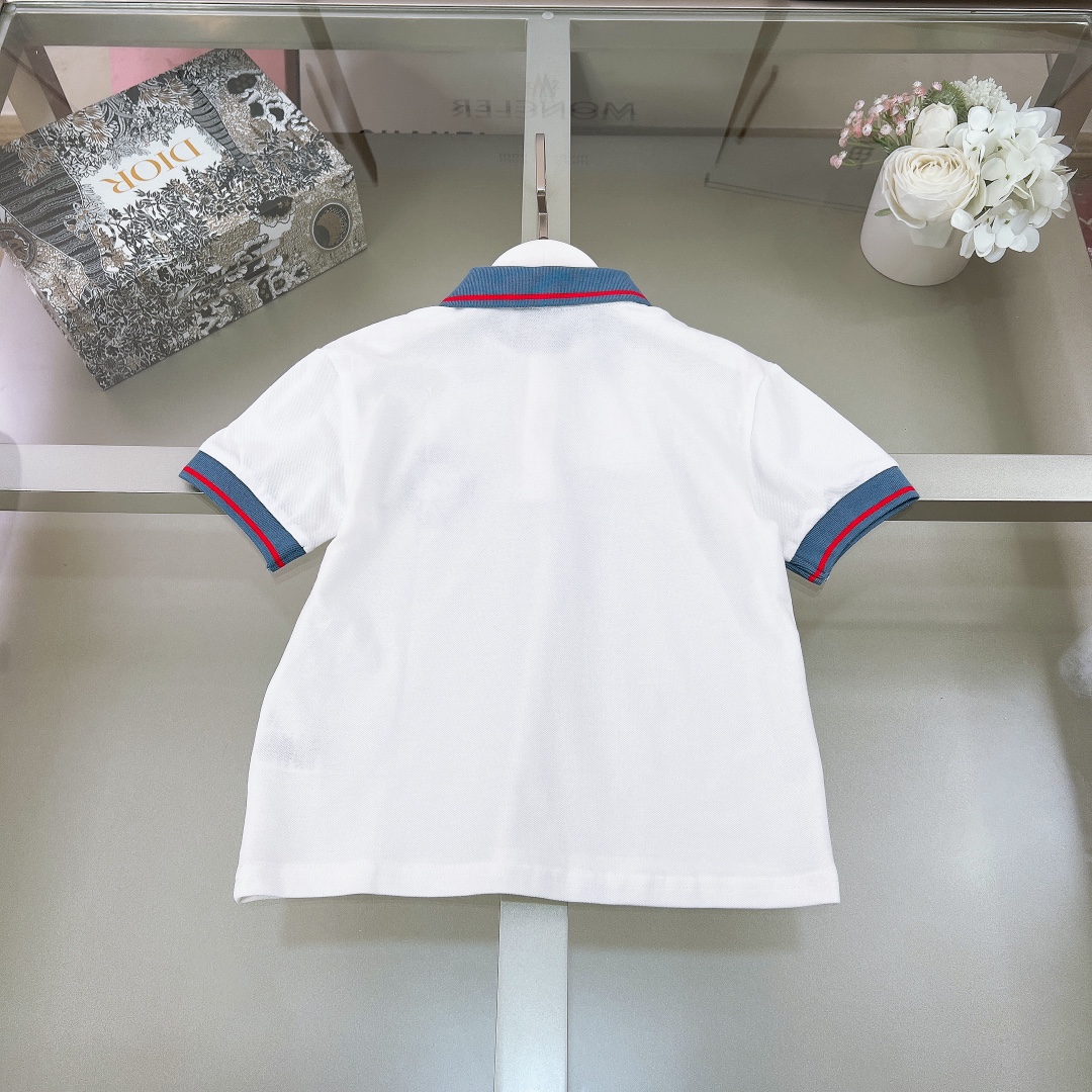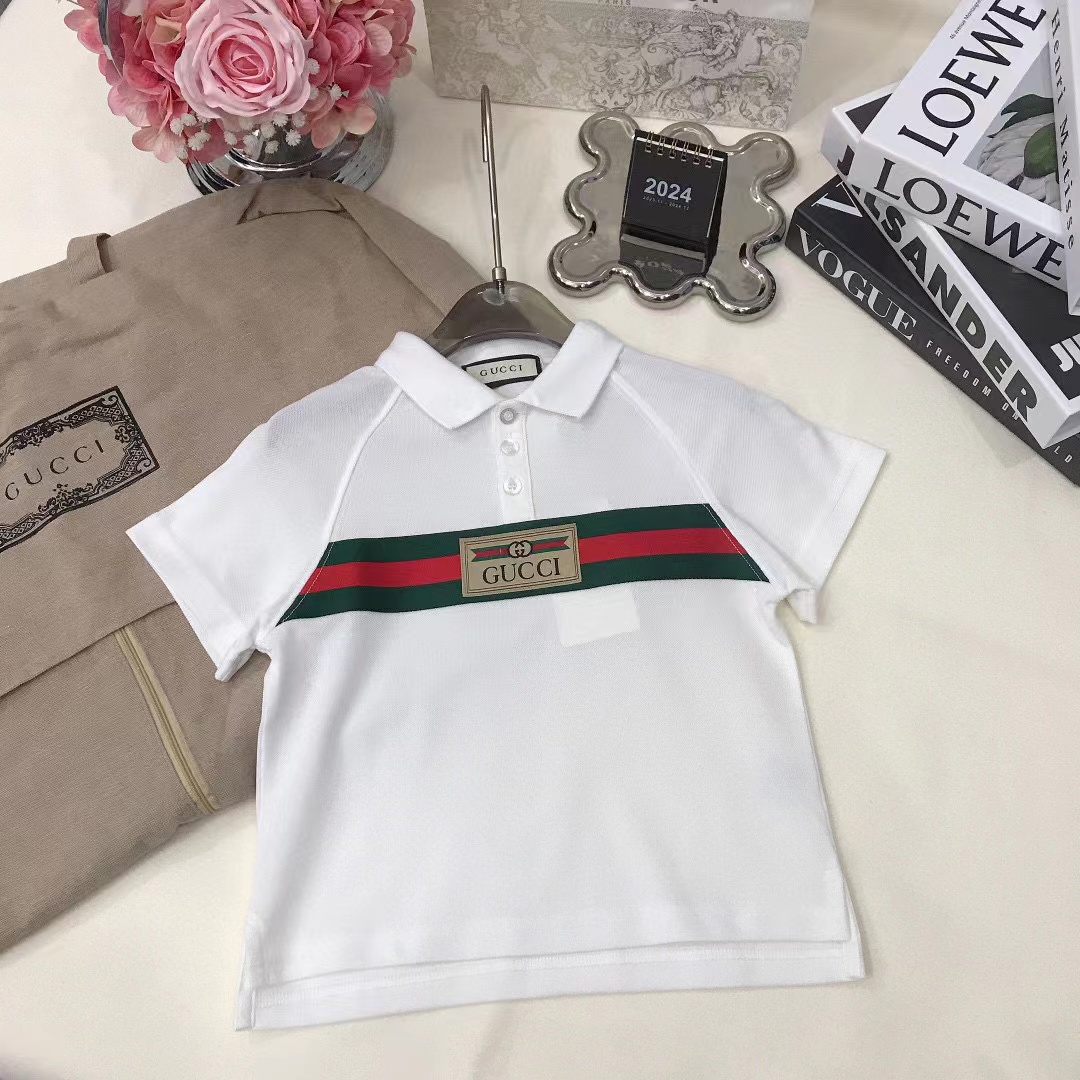NIGO Gucci Kid's Summer Solid Color Striped Cotton Webbing Straight Short Sleeve Fitted Polo Shirt #nigo31274