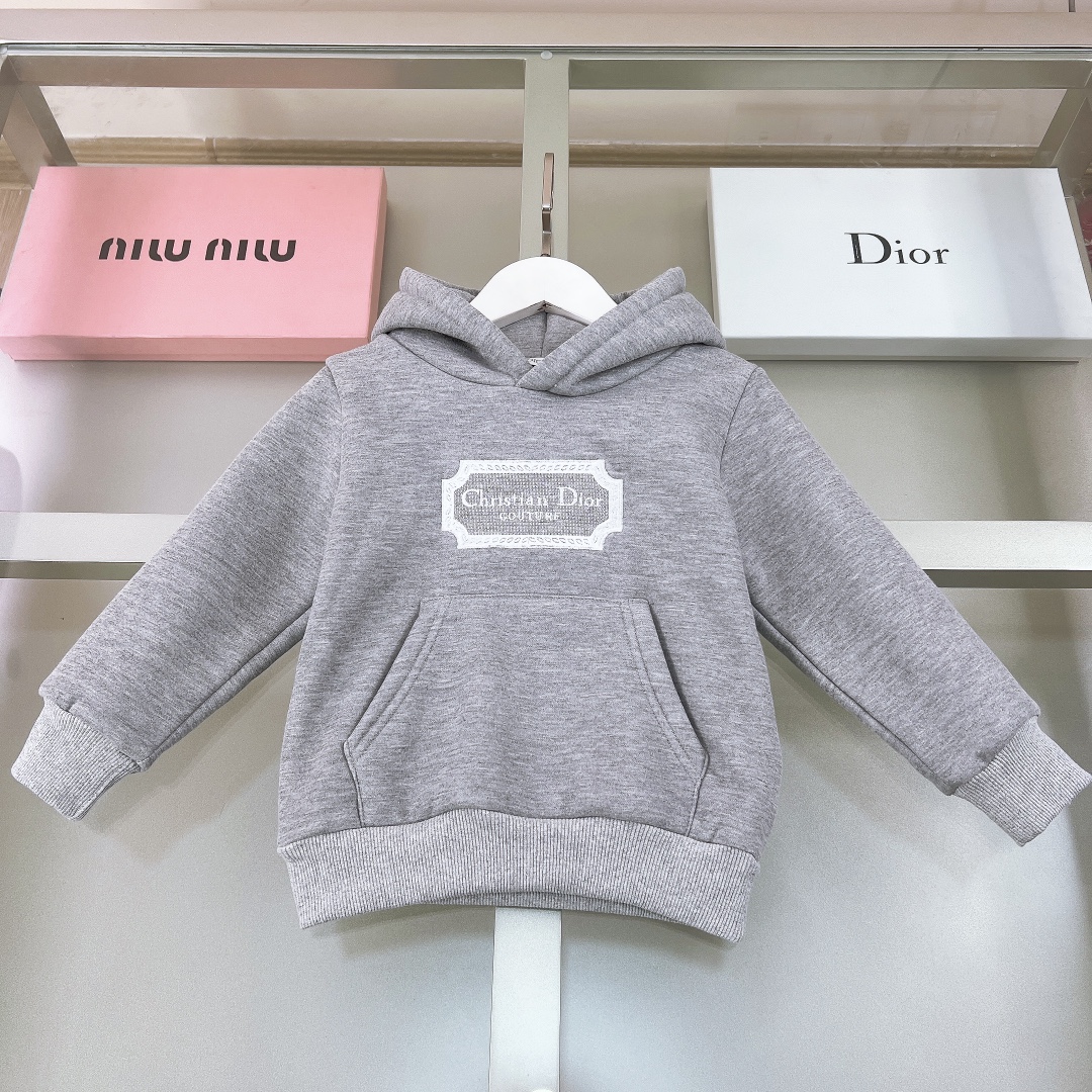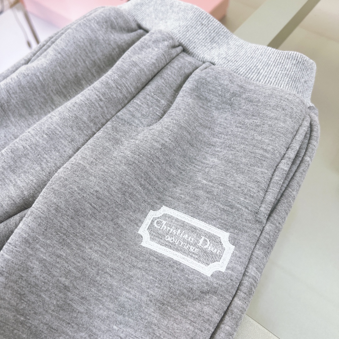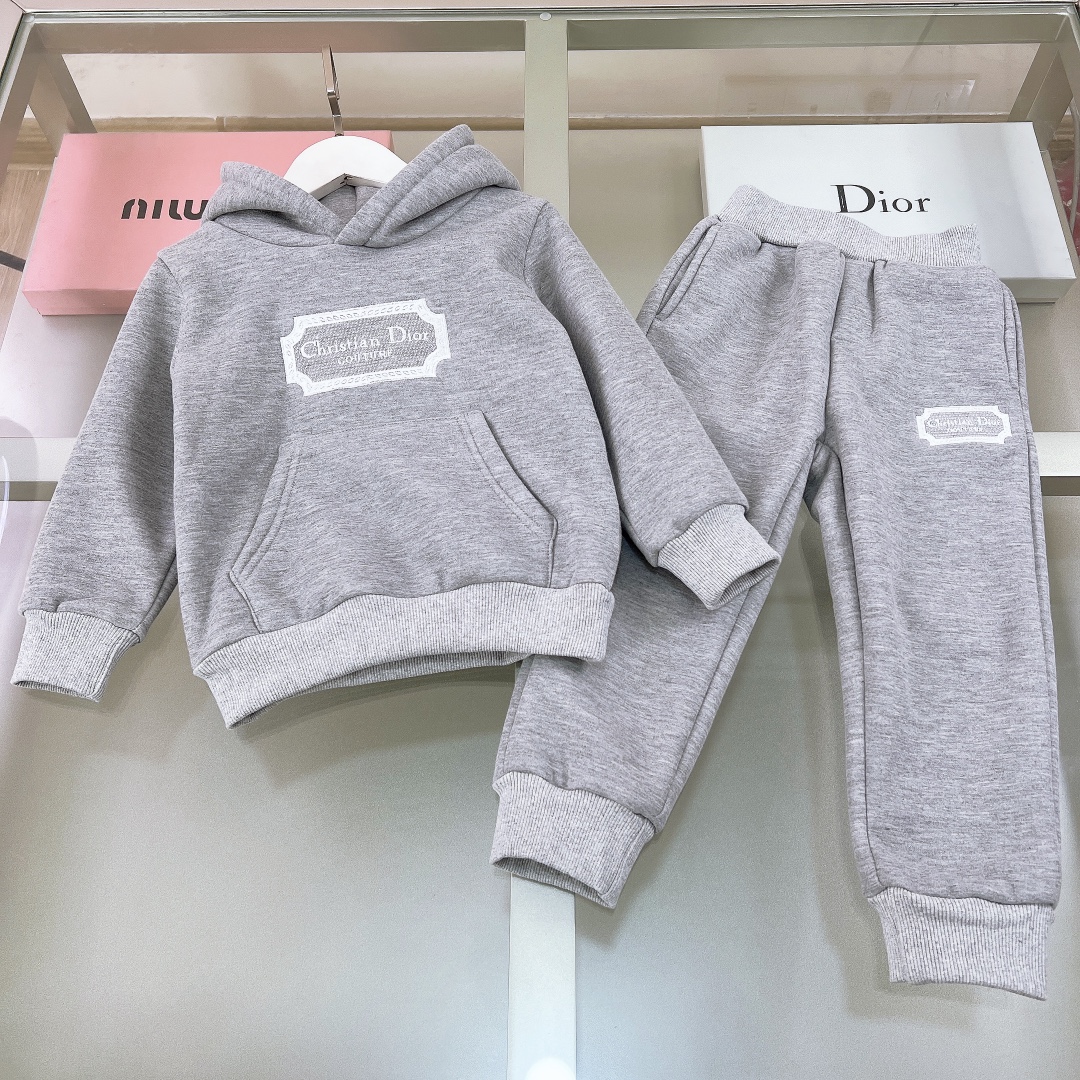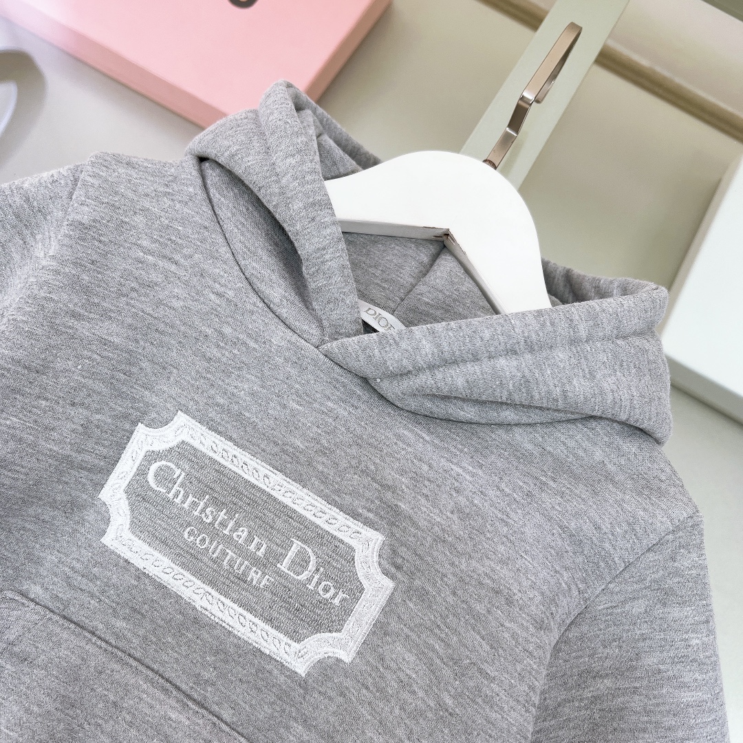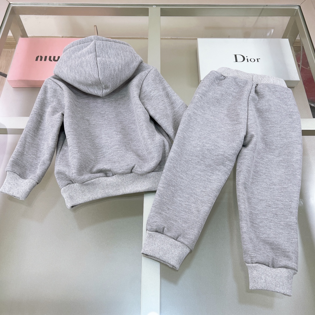 NIGO Dior Kid's Spring And Autumn Gray Letter Embroidery Hooded Long Sleeve Cotton Sweatshirt Drawstring Knit Track Pants Set #nigo31245