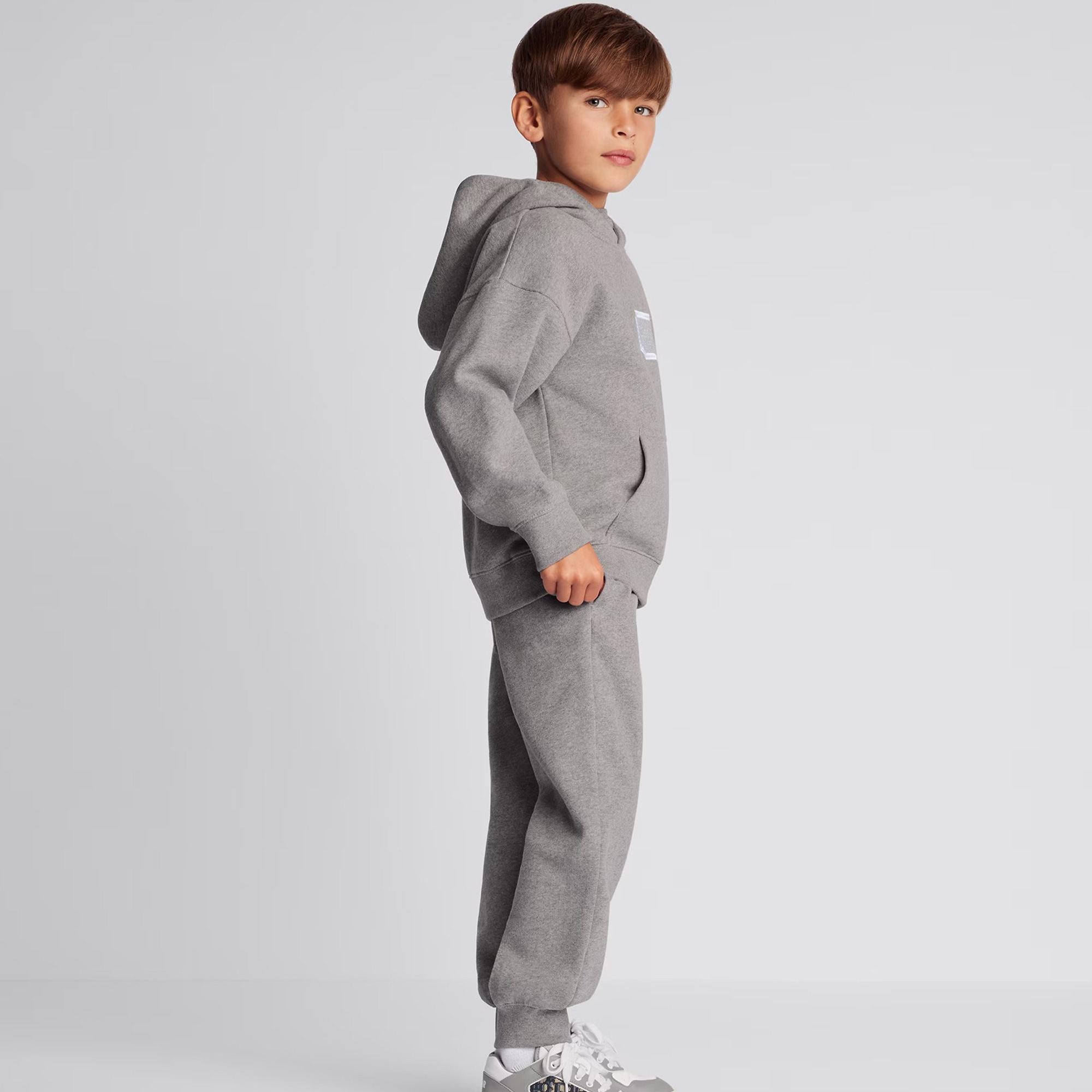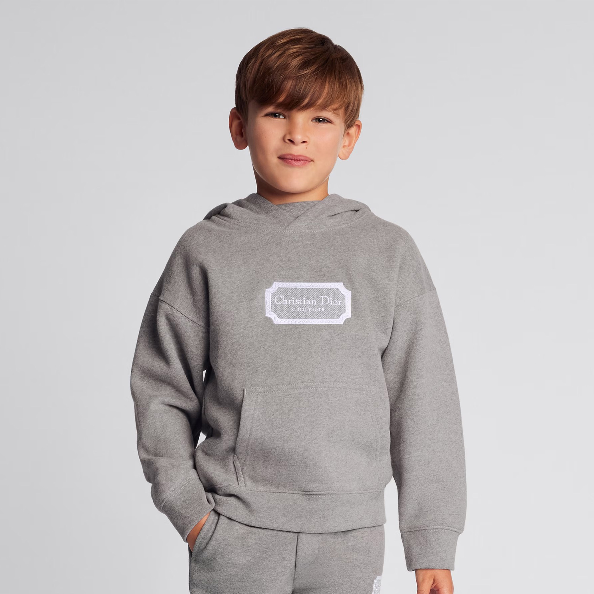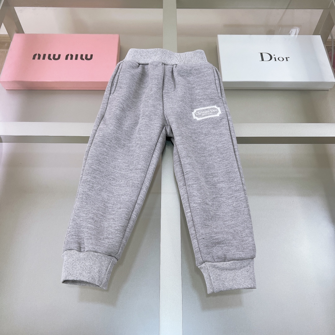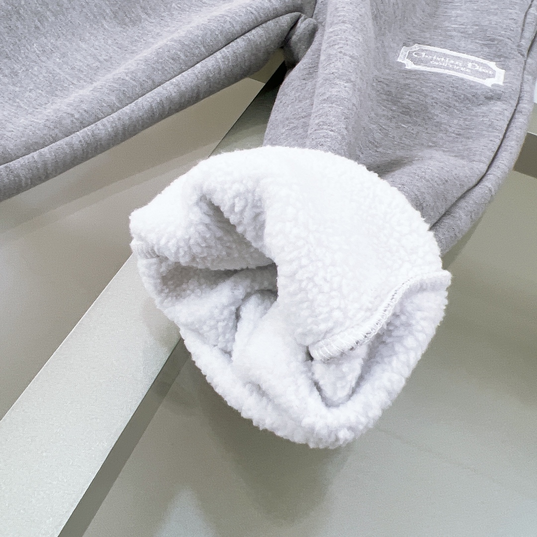 NIGO Dior Kid's Spring And Autumn Gray Letter Embroidery Hooded Long Sleeve Cotton Sweatshirt Drawstring Knit Track Pants Set #nigo31245