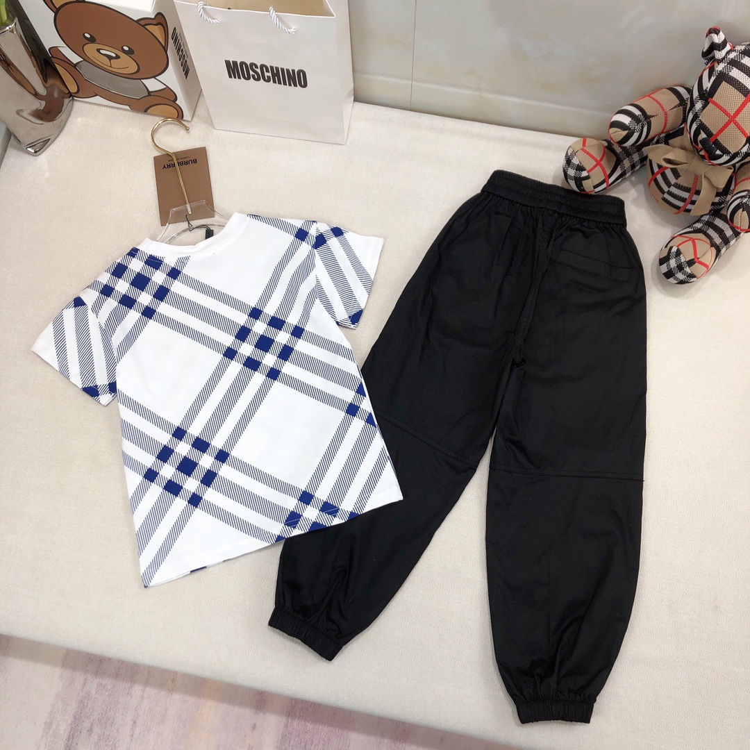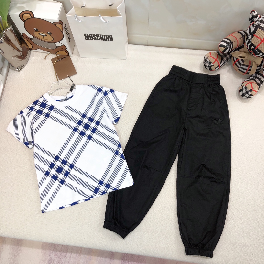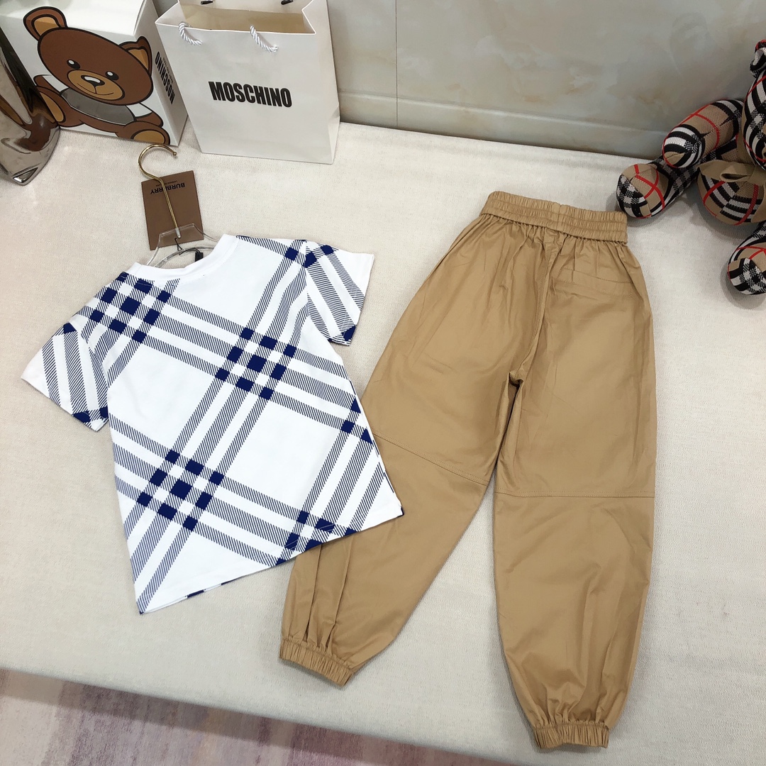NIGO Burberry Kids Summer Plaid Cotton Round Neck Short Sleeve Straight T-shirt Drawstring Casual Pants Suit #nigo31241