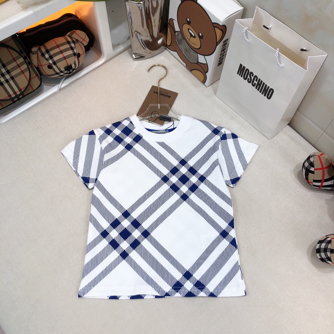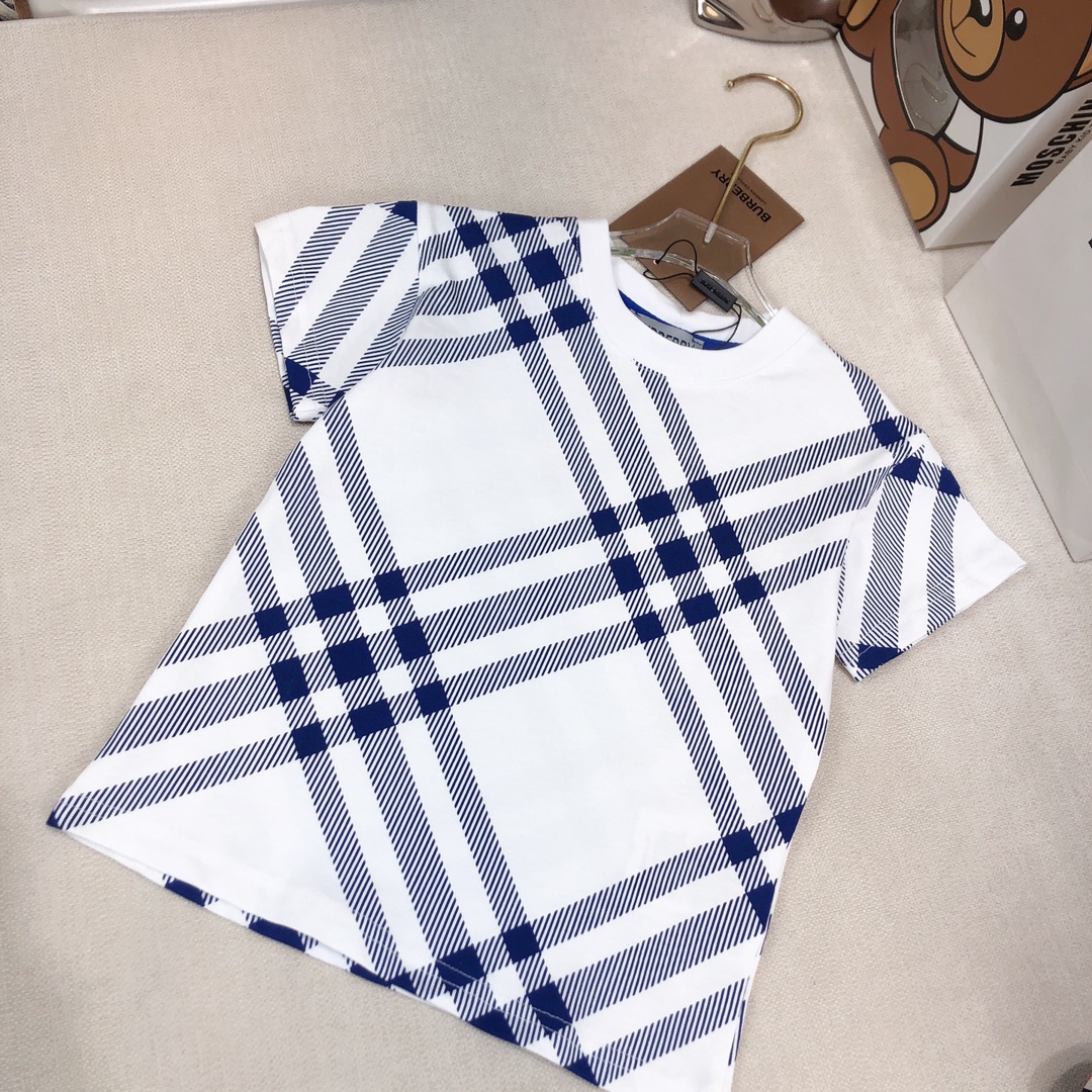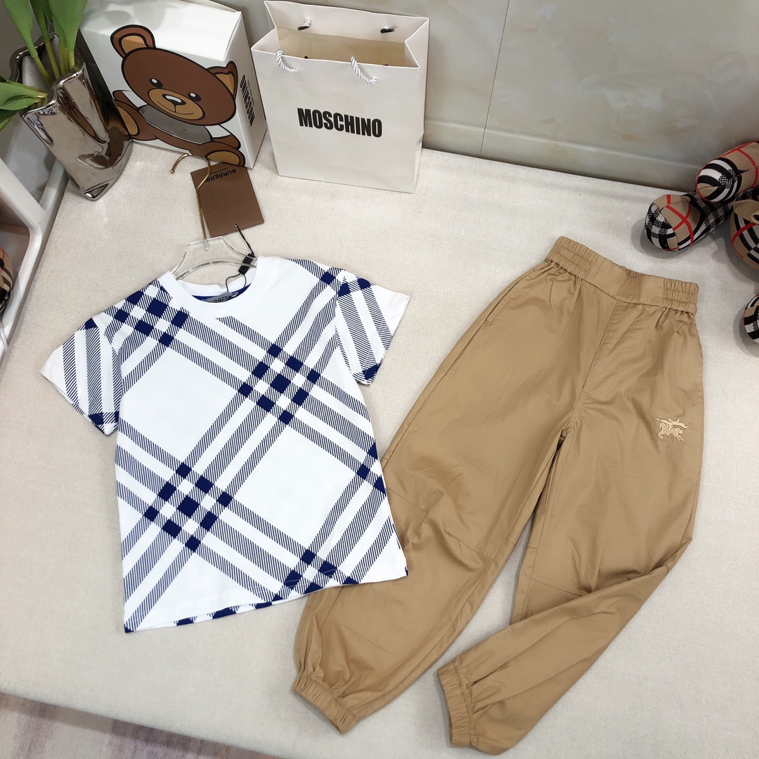 NIGO Burberry Kids Summer Plaid Cotton Round Neck Short Sleeve Straight T-shirt Drawstring Casual Pants Suit #nigo31241