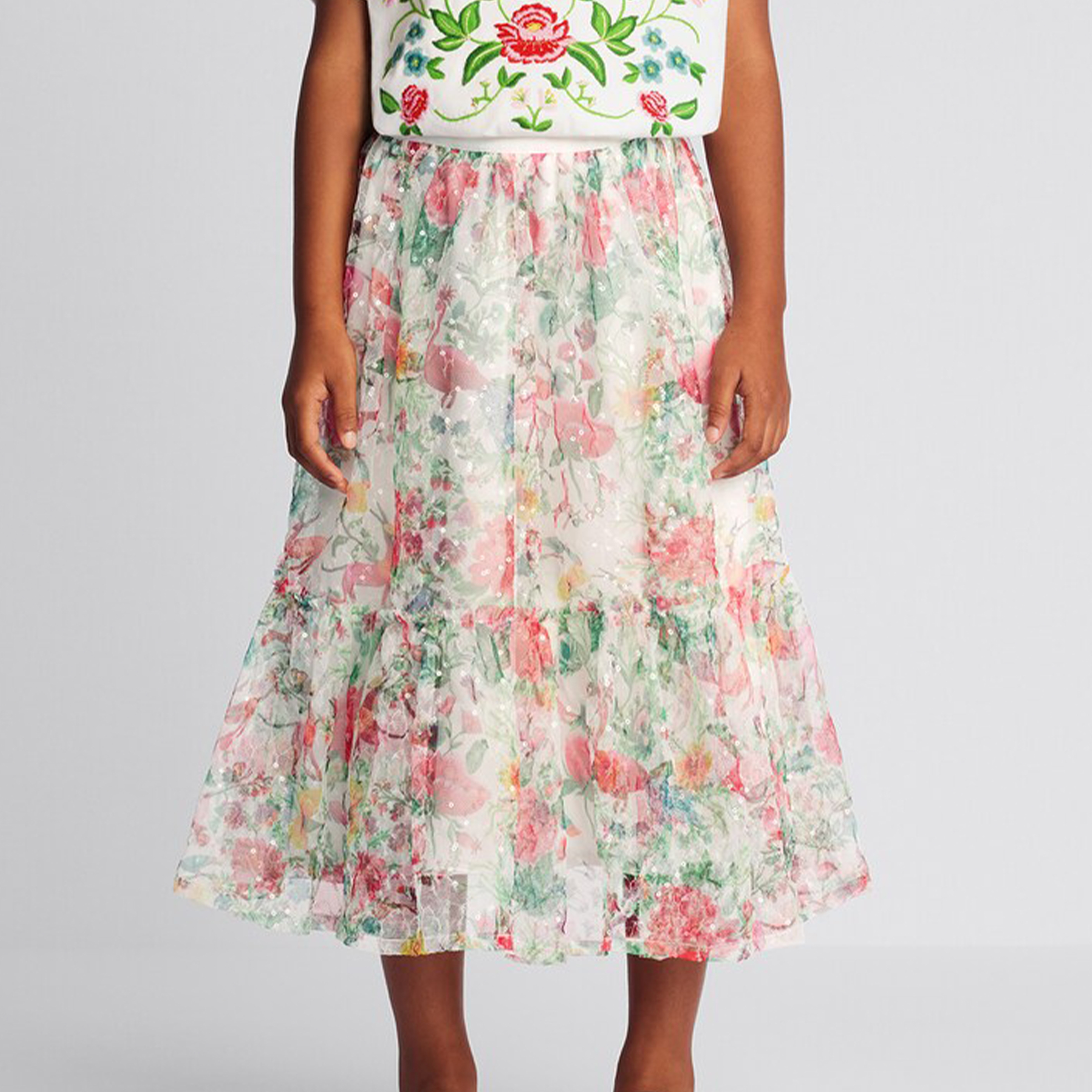 NIGO Dior Kids Spring And Autumn High Street Floral Printed Tulle Long Fitted Half Skirt #nigo31265