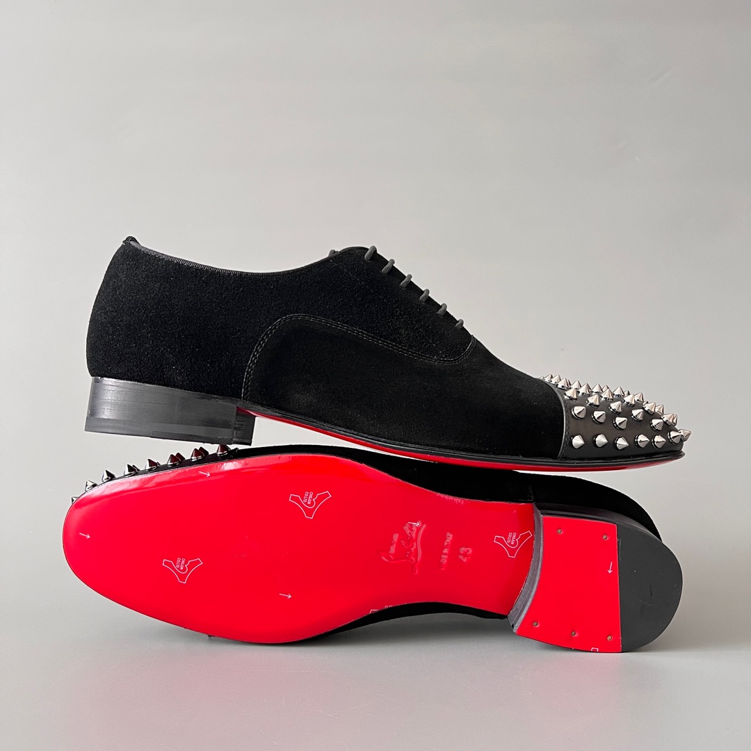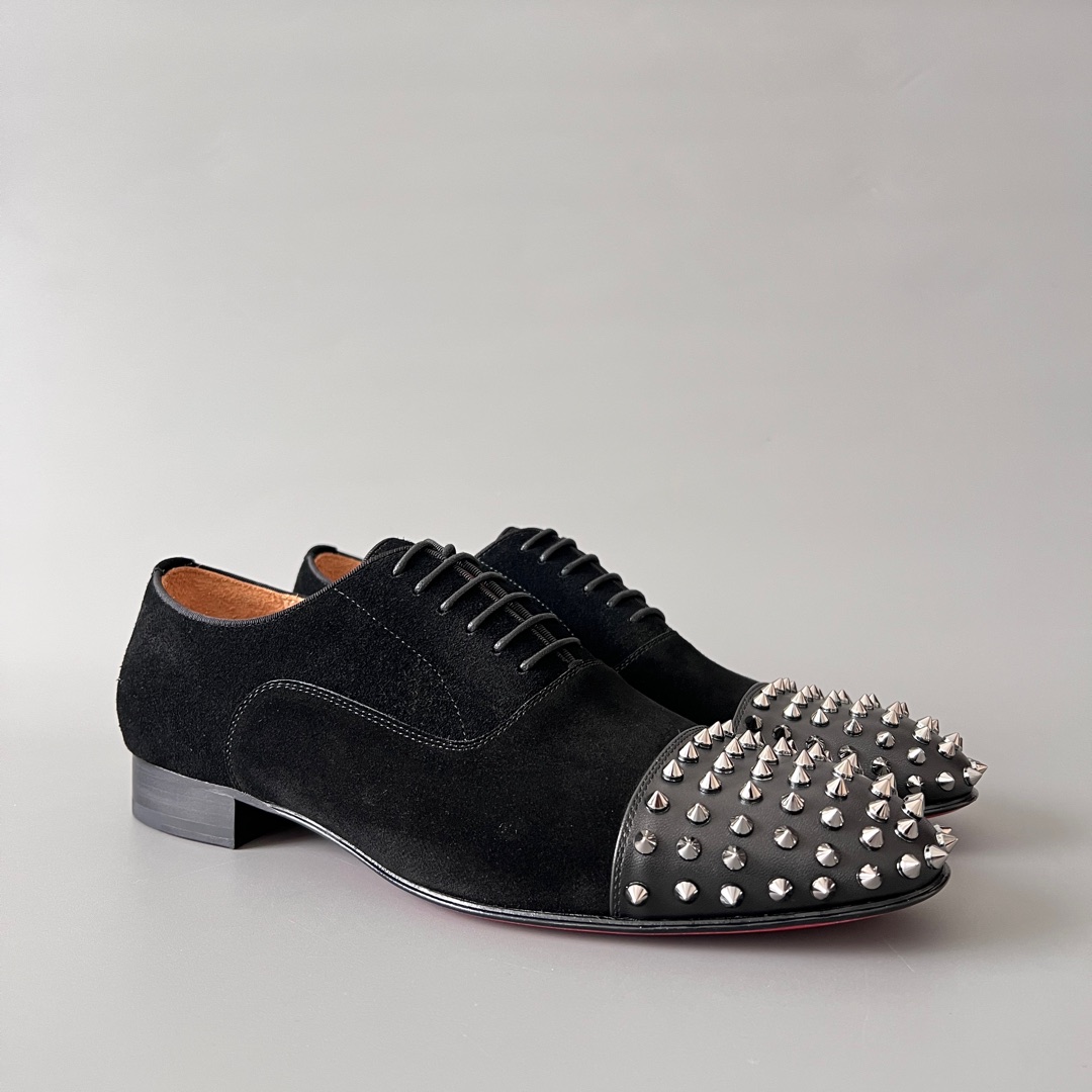 NIGO Christian Louboutin Men's Fashion Casual Lace-up Leather Shoes Rivets Metal Decoration Cowhide Pointed Toe Shallow Mouth Men's Shoes Ngvp #nigo9869