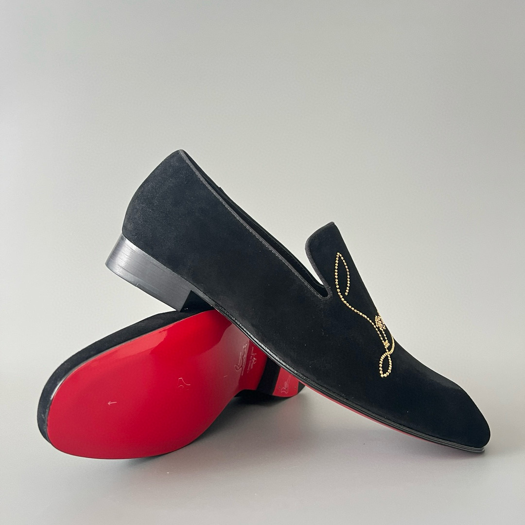 NIGO Christian Louboutin Men's Summer Black Casual Cowhide Rhinestone Logo Leather Shoes #nigo97654