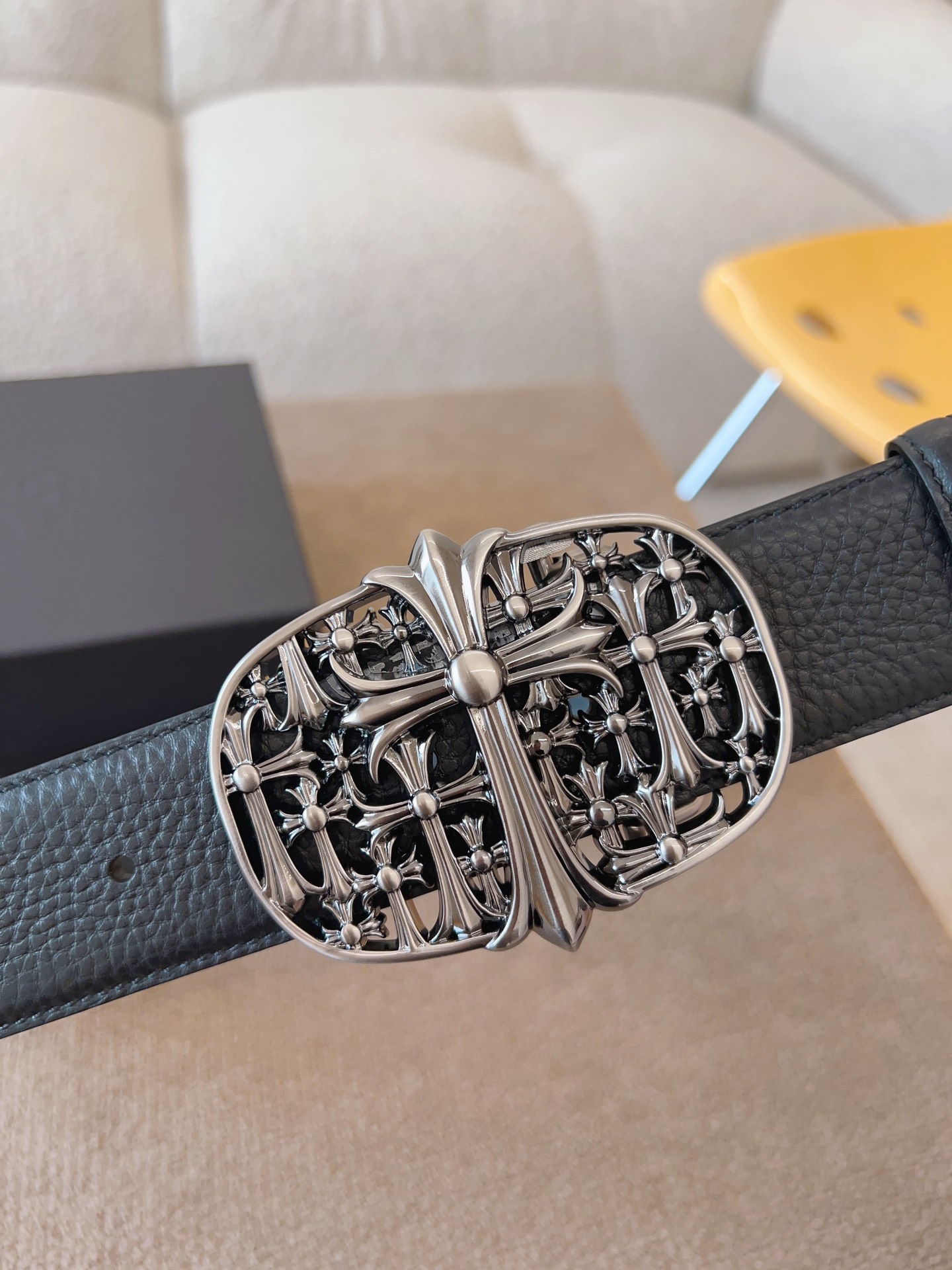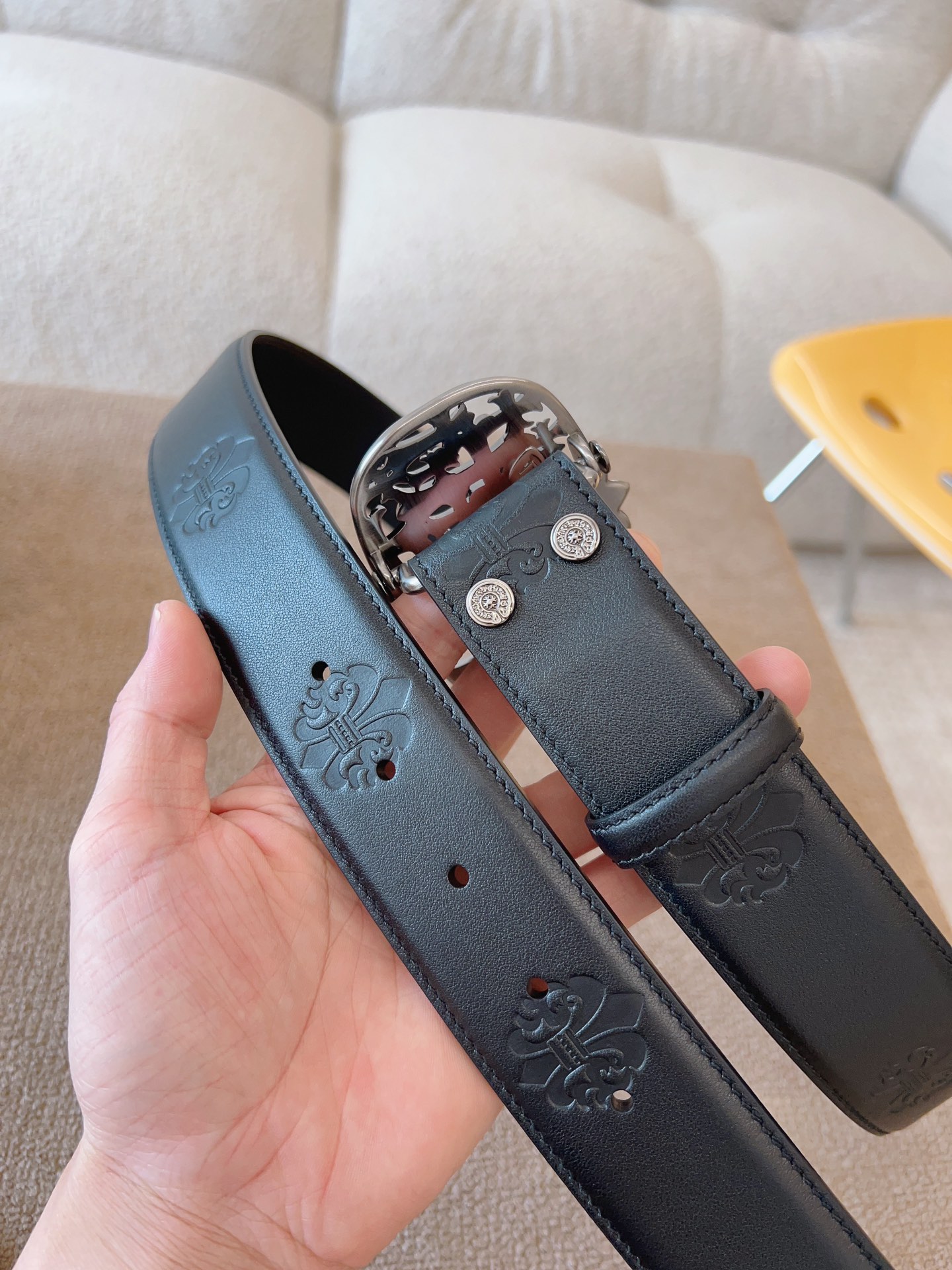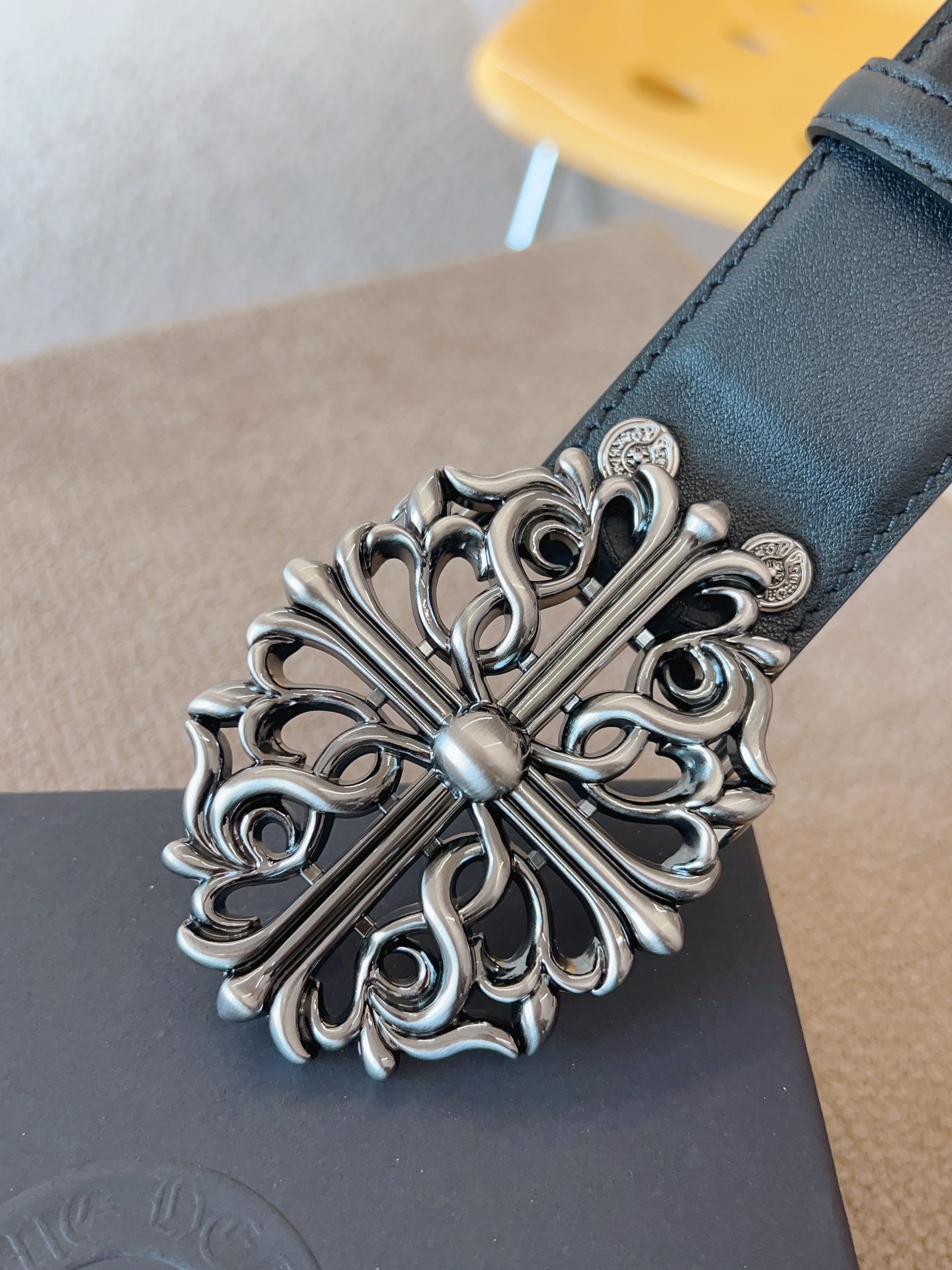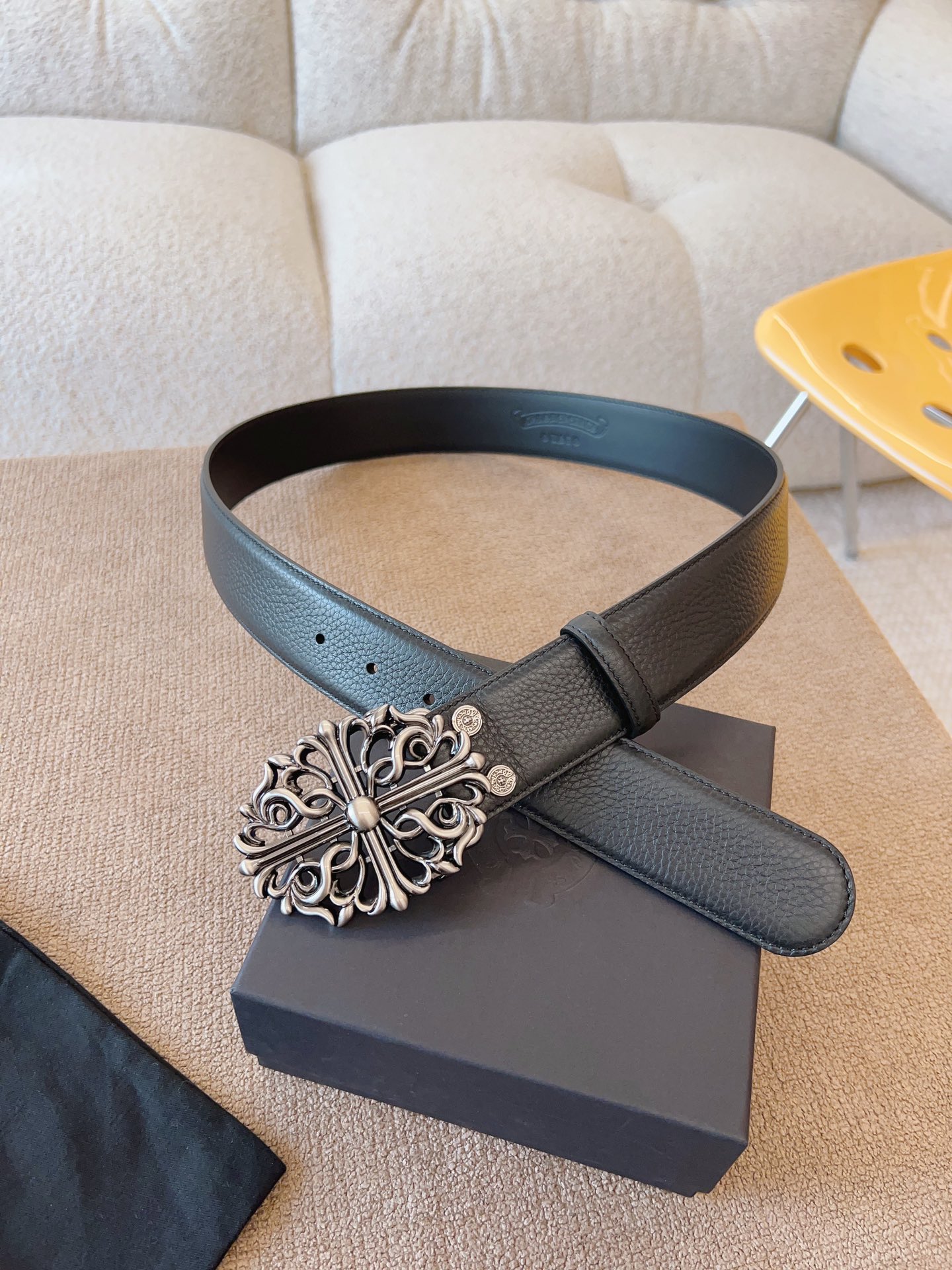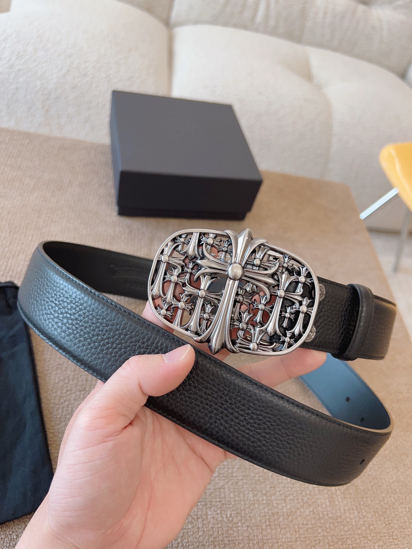 NIGO Chrome Hearts Men's and Women's Black Logo Logo Leather Strap 4cm Wide Belt #nigo73818