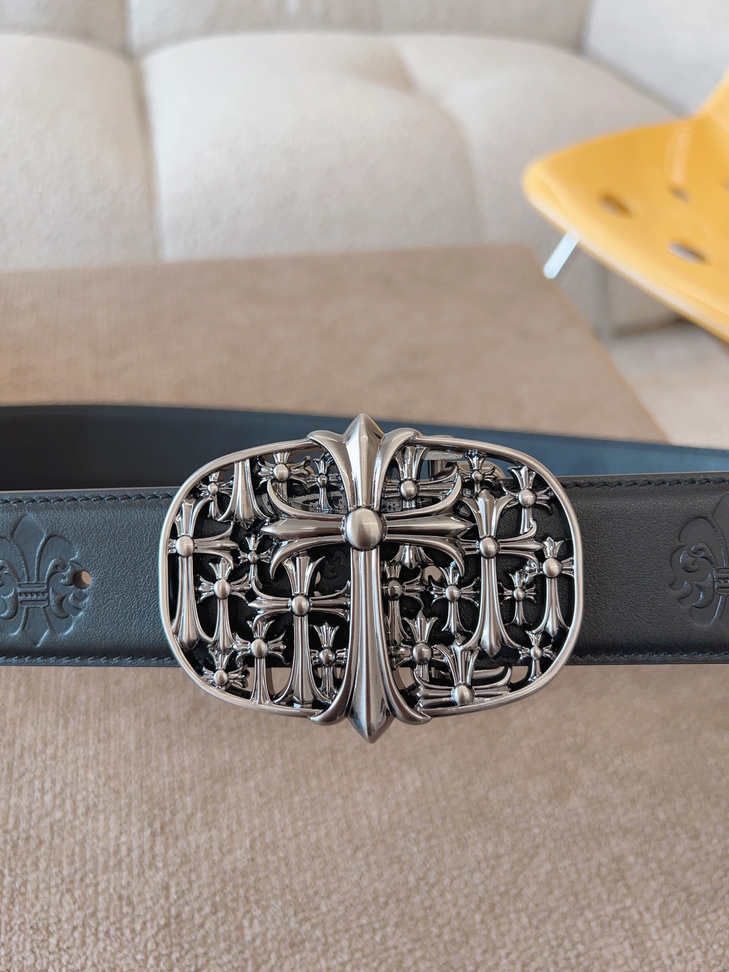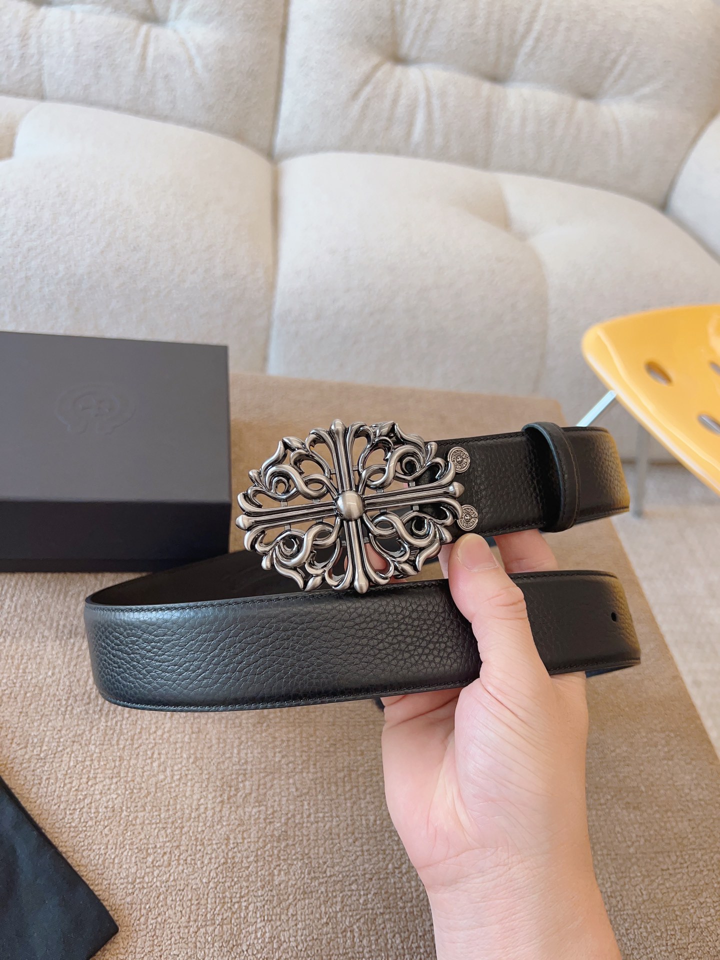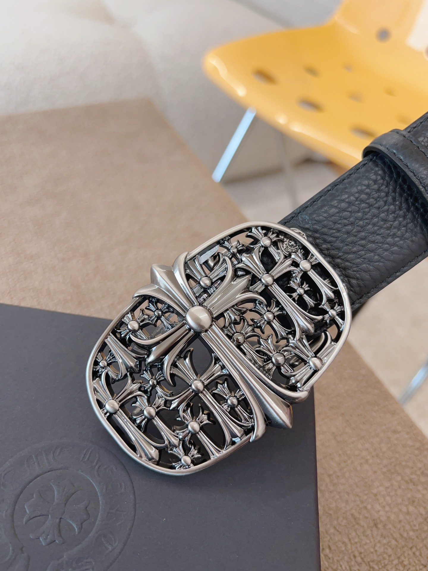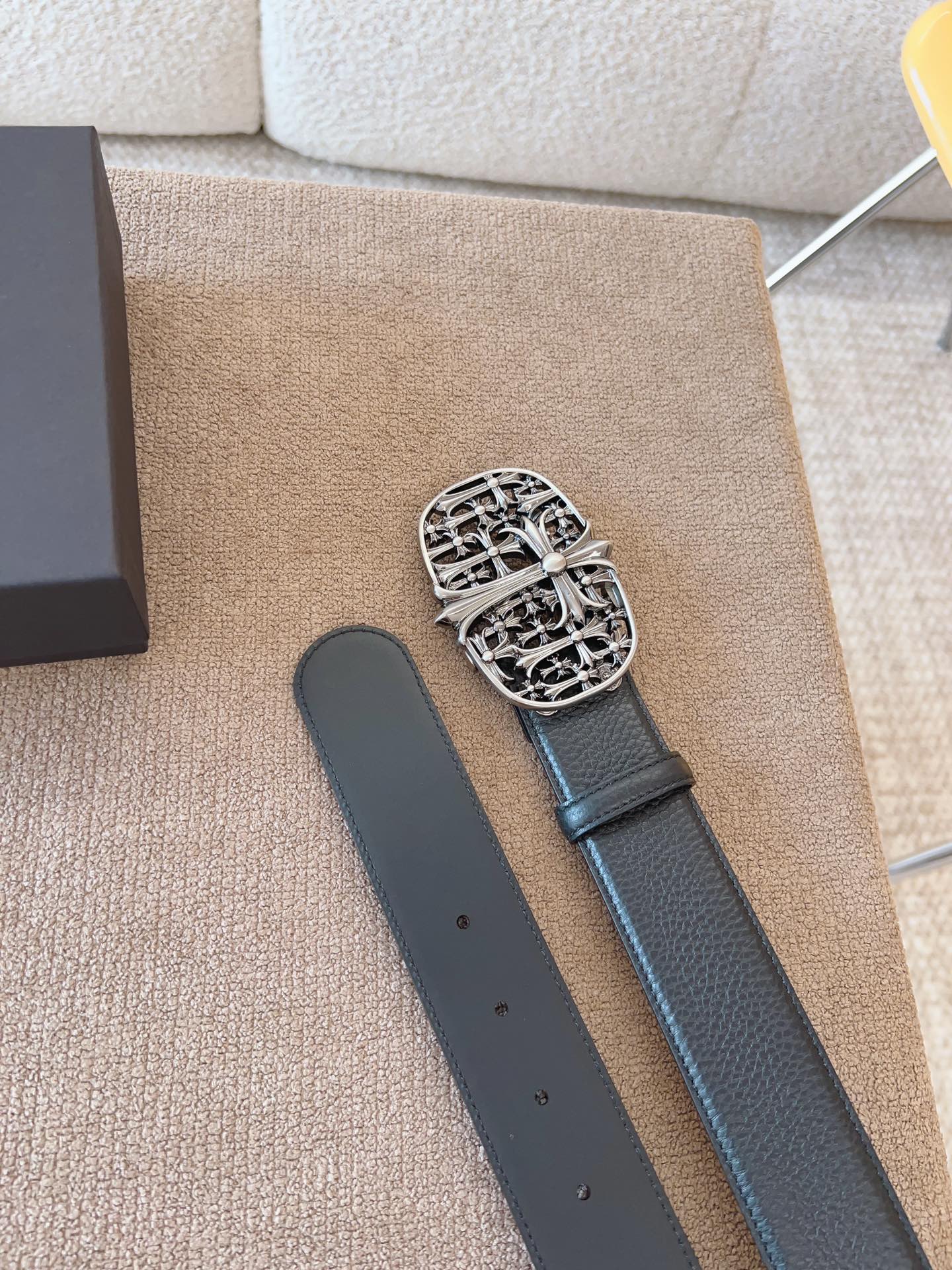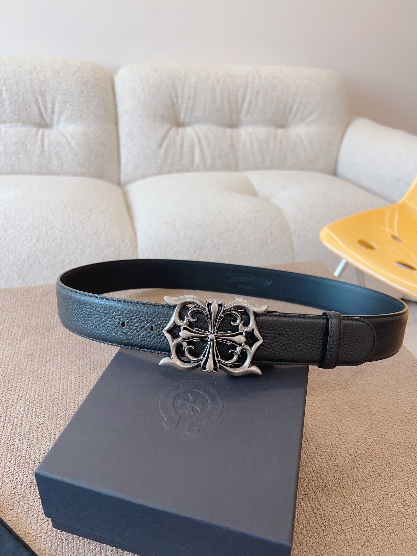 NIGO Chrome Hearts Men's and Women's Black Logo Logo Leather Strap 4cm Wide Belt #nigo73818