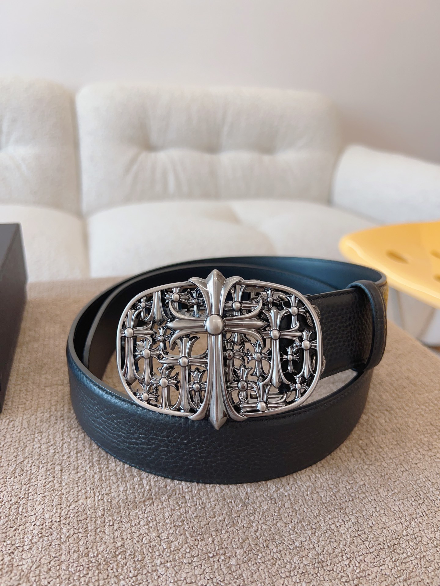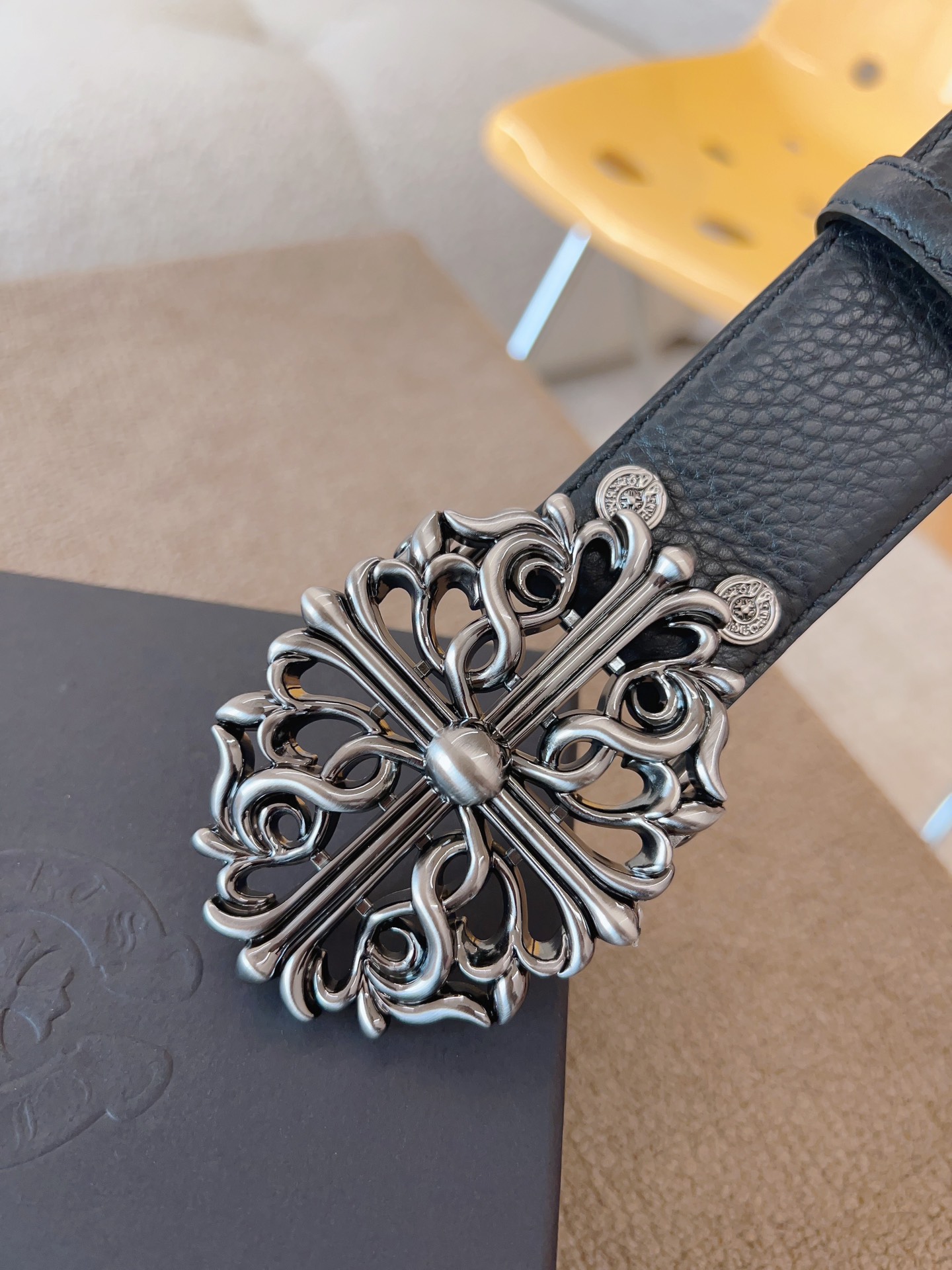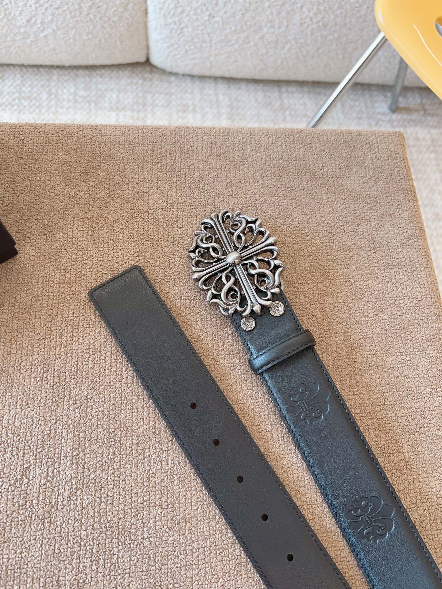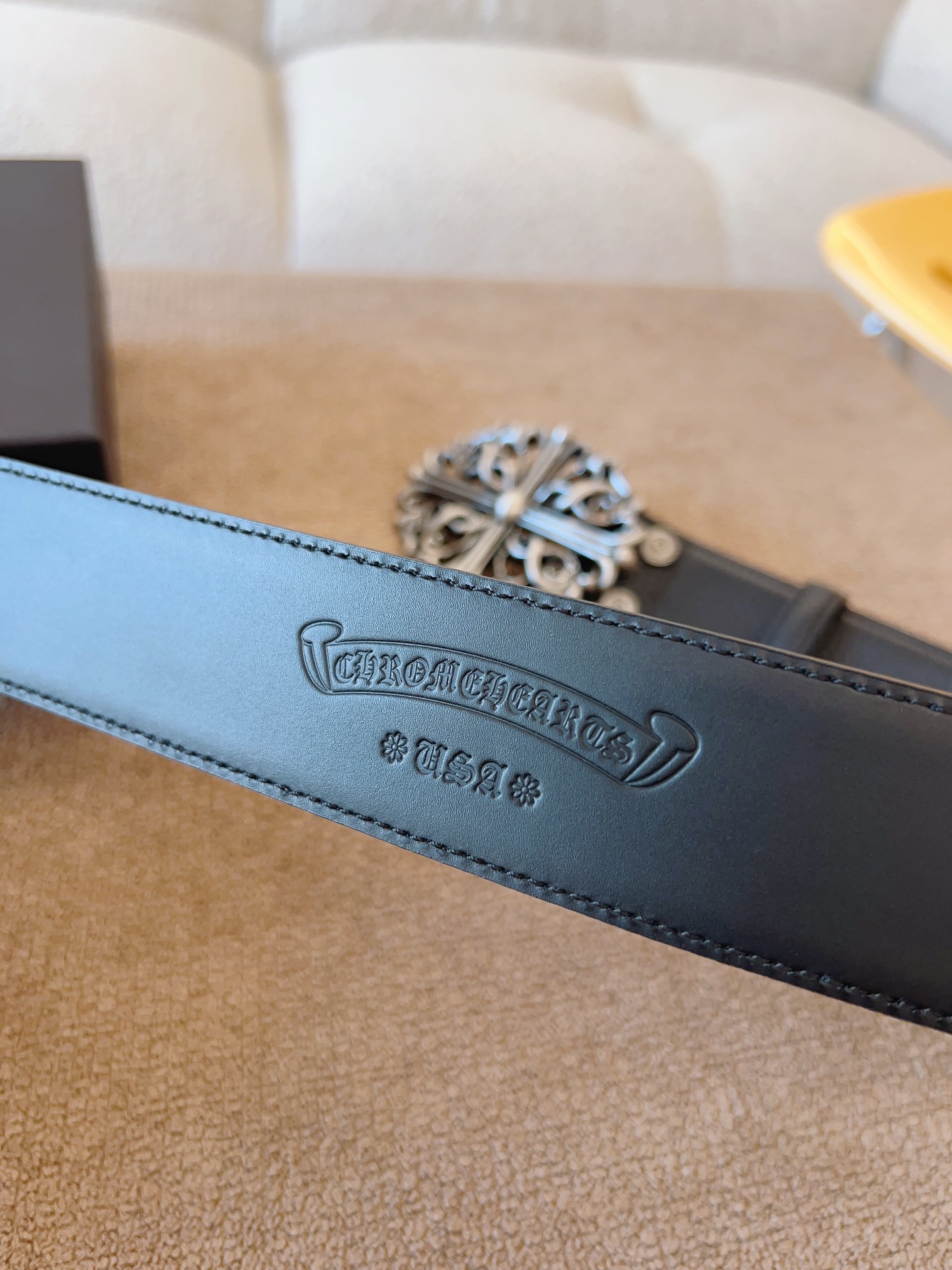 NIGO Chrome Hearts Men's and Women's Black Logo Logo Leather Strap 4cm Wide Belt #nigo73818