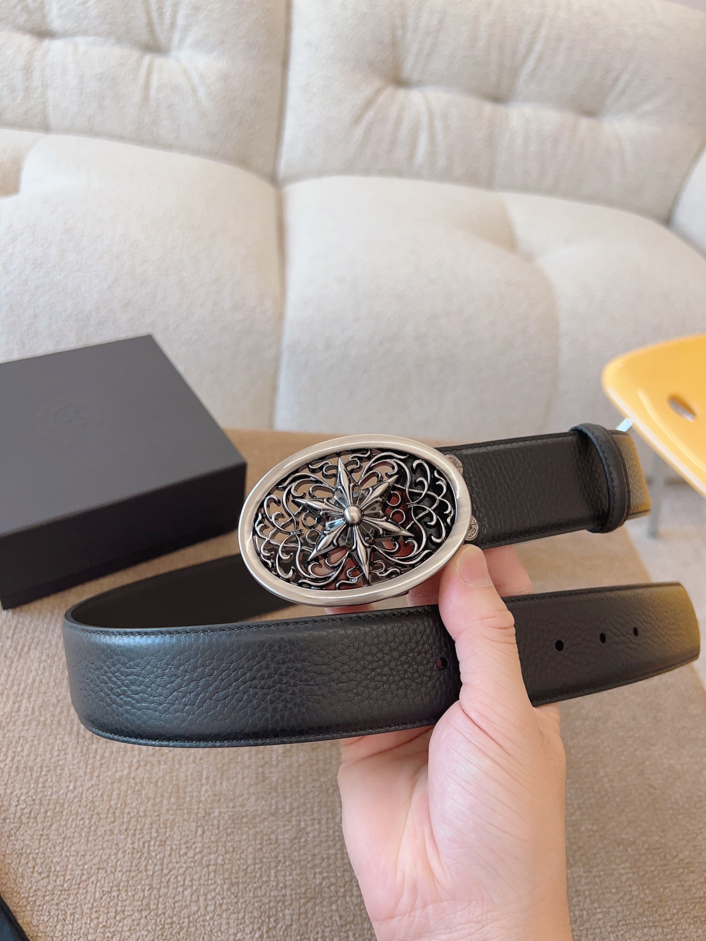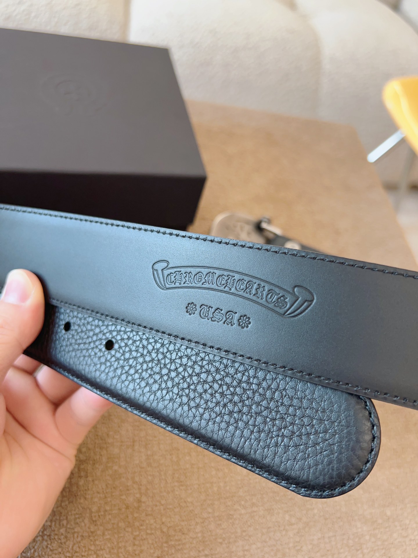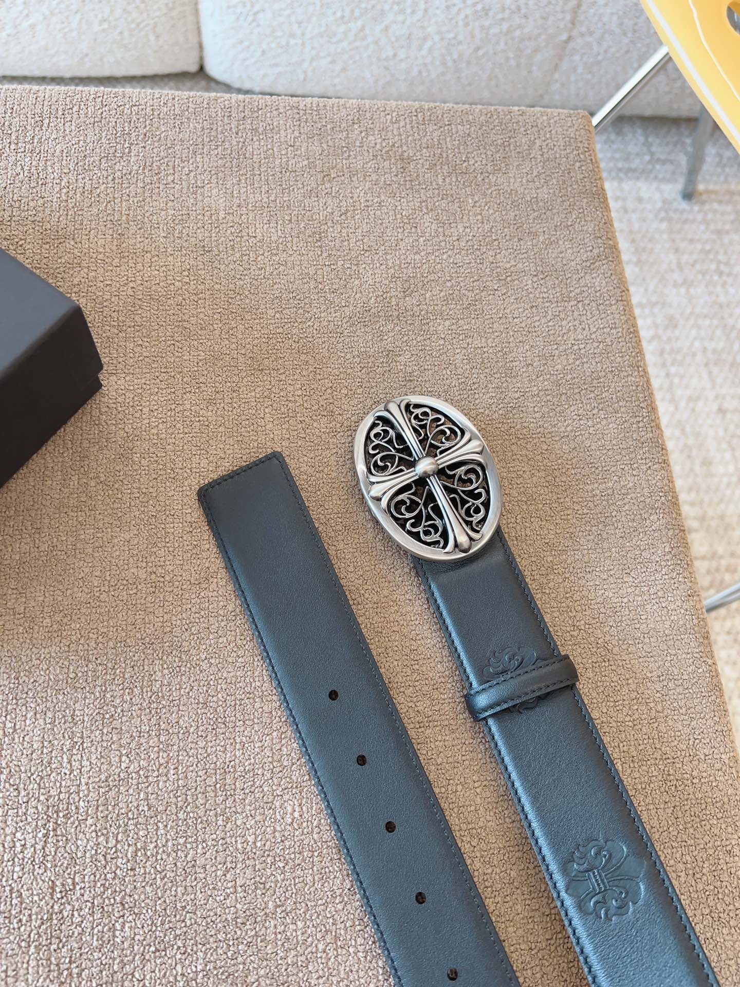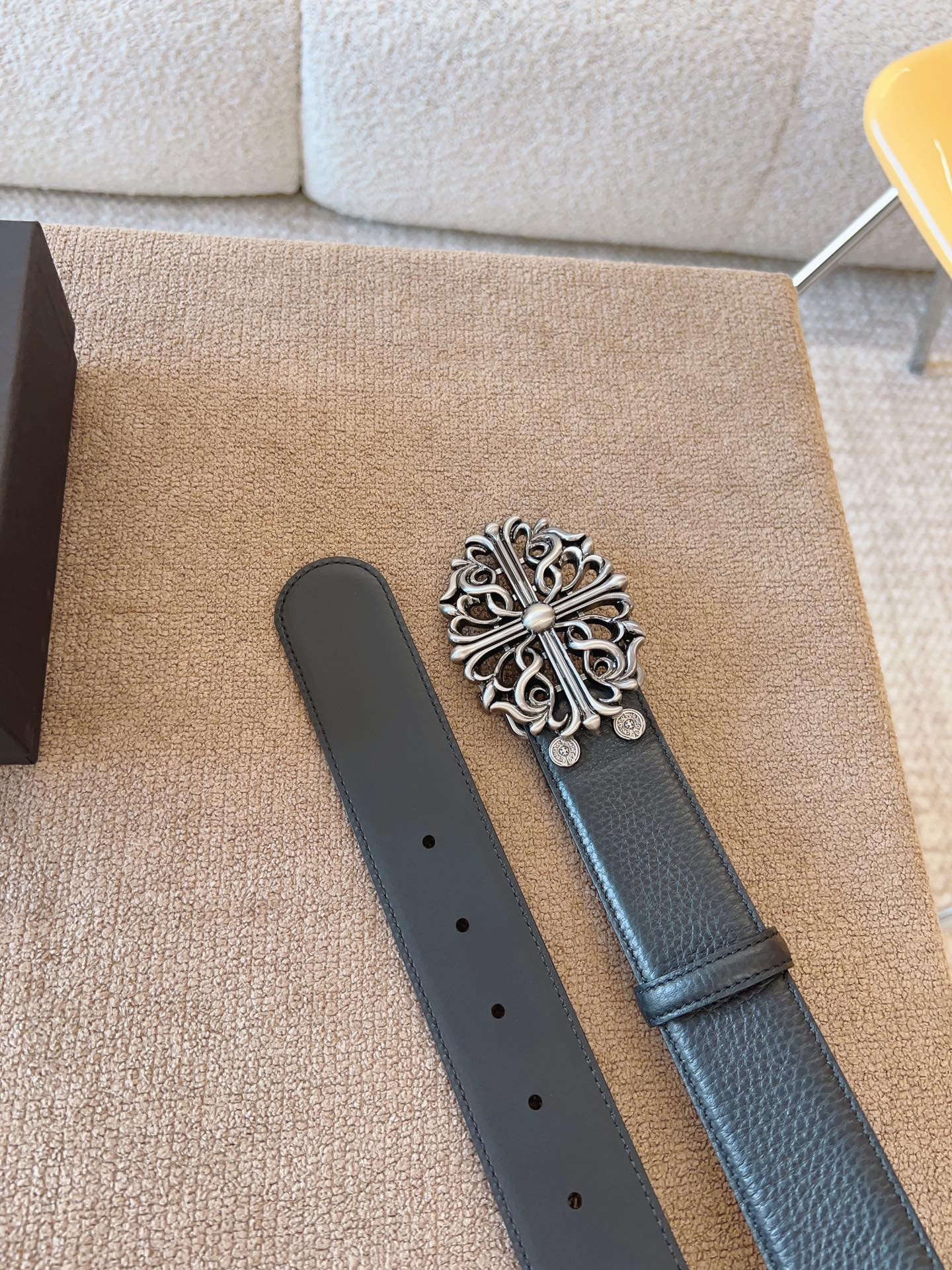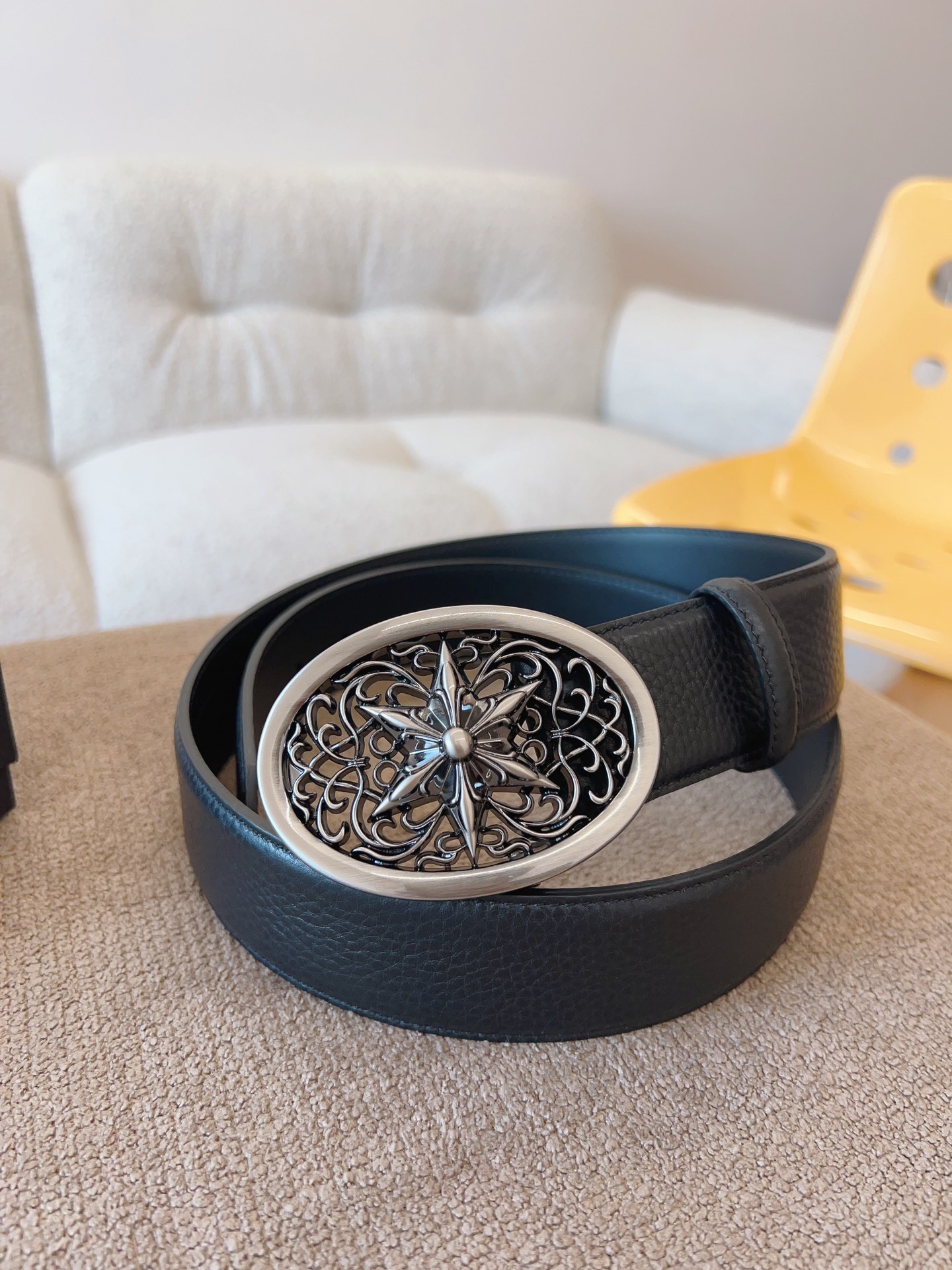 NIGO Chrome Hearts Men's and Women's Black Logo Logo Leather Strap 4cm Wide Belt #nigo73818