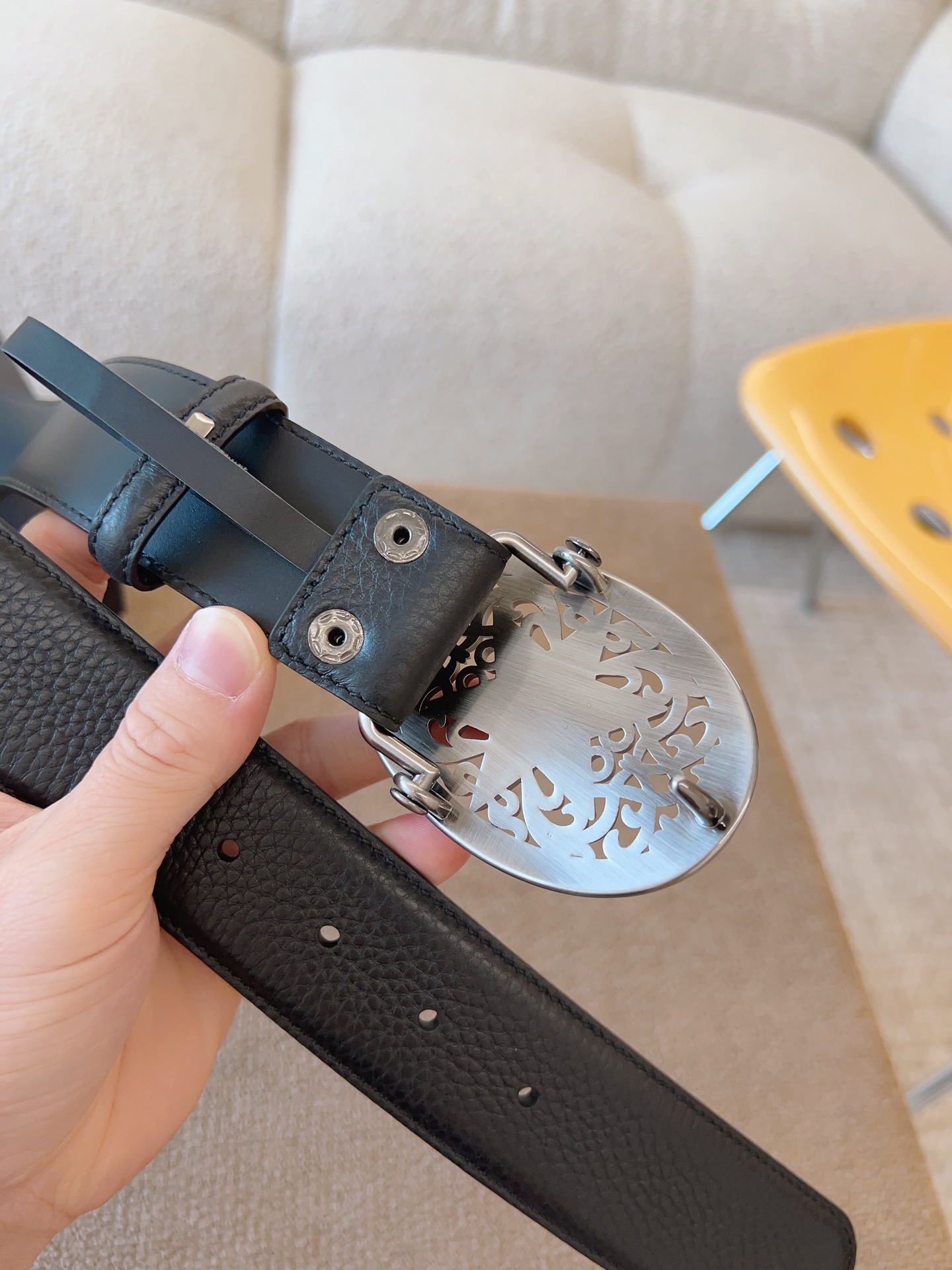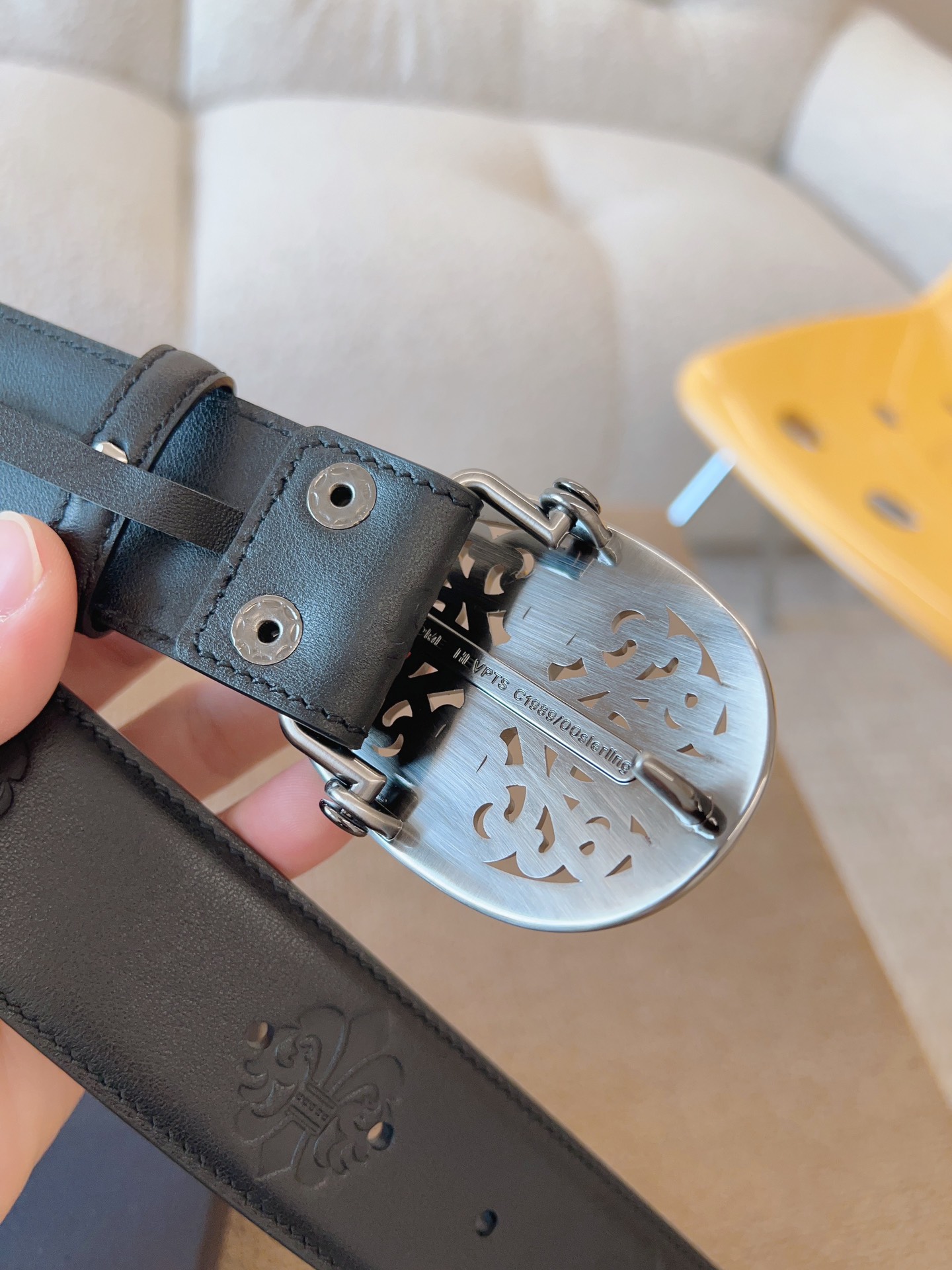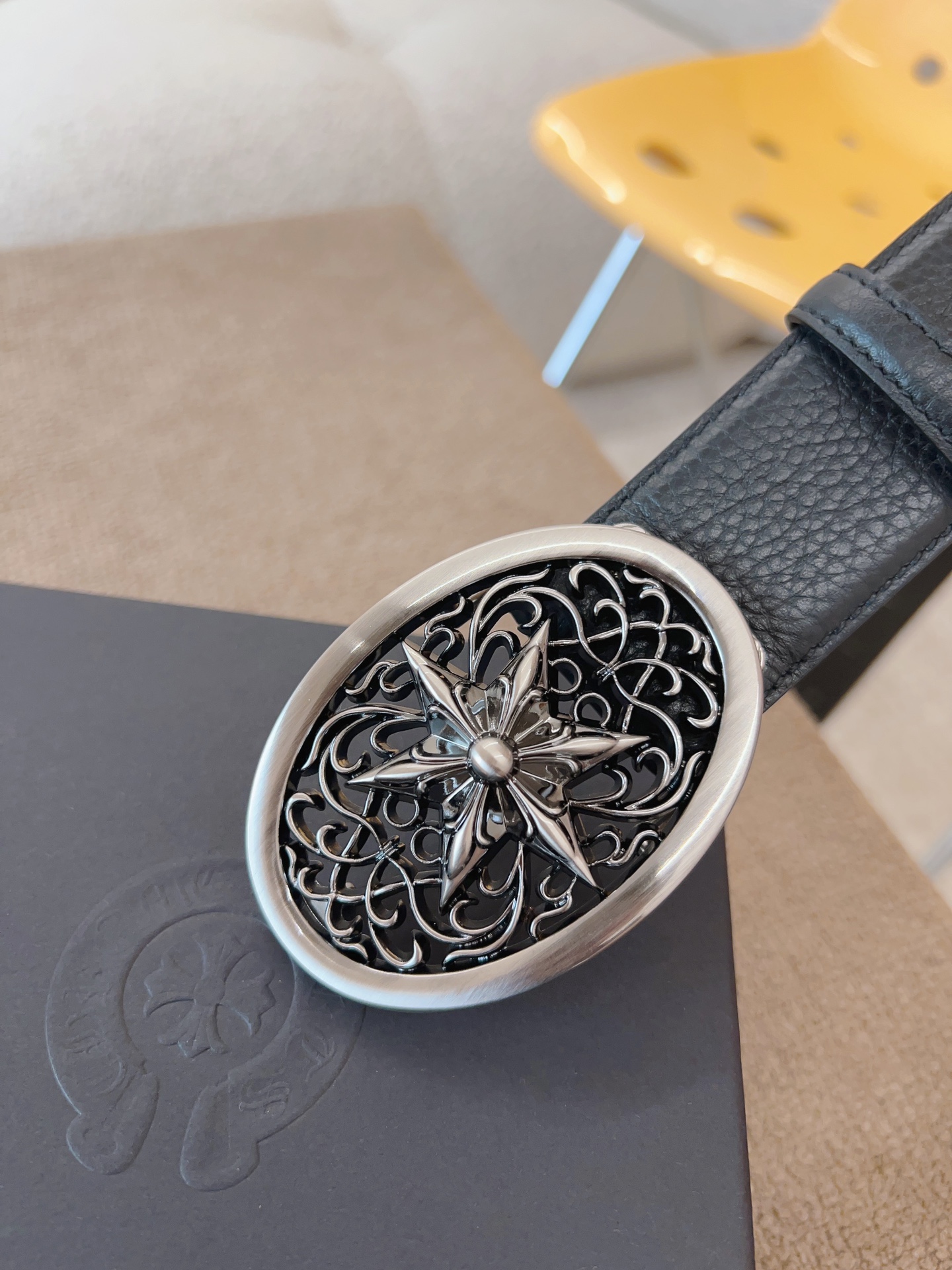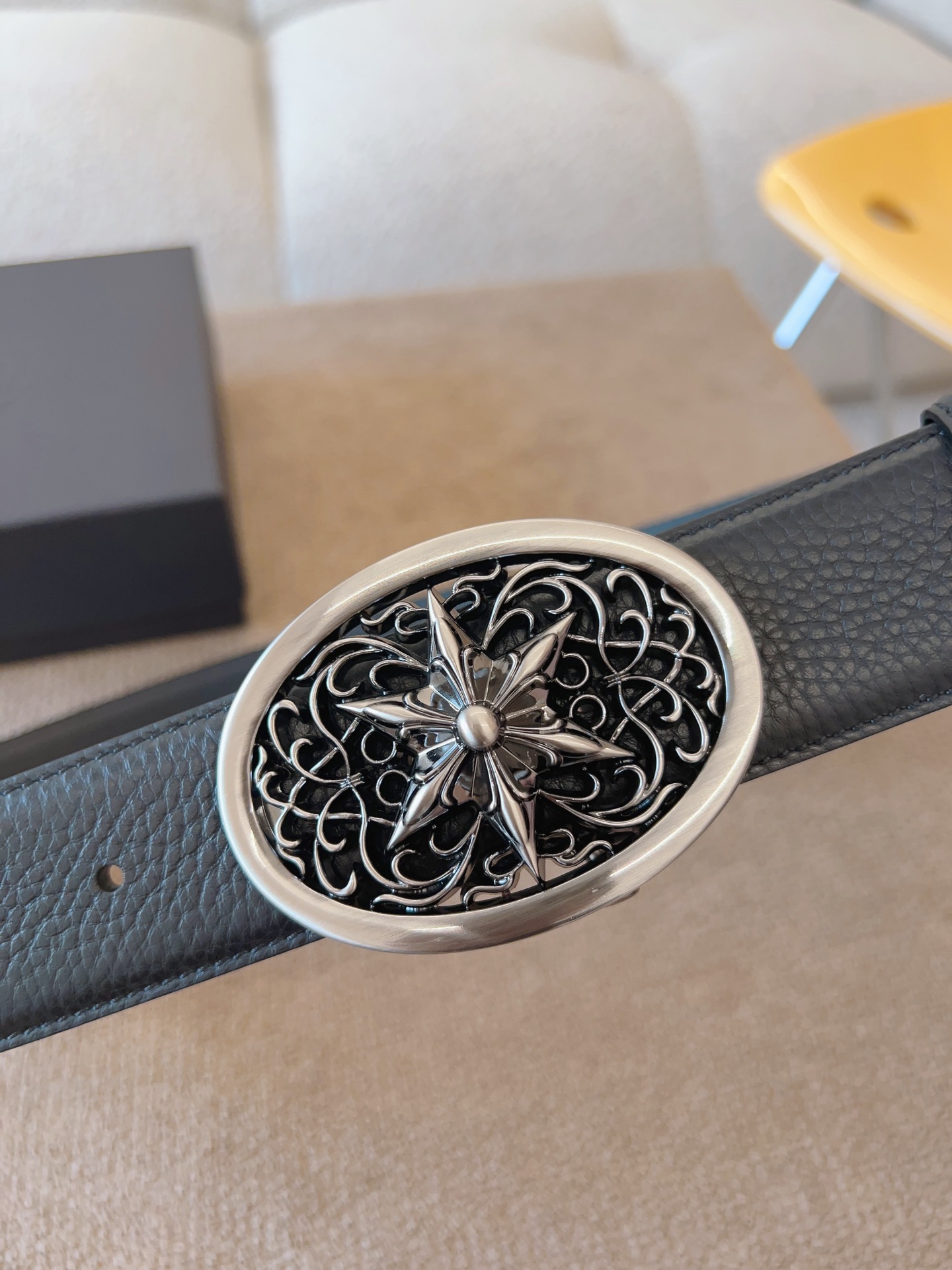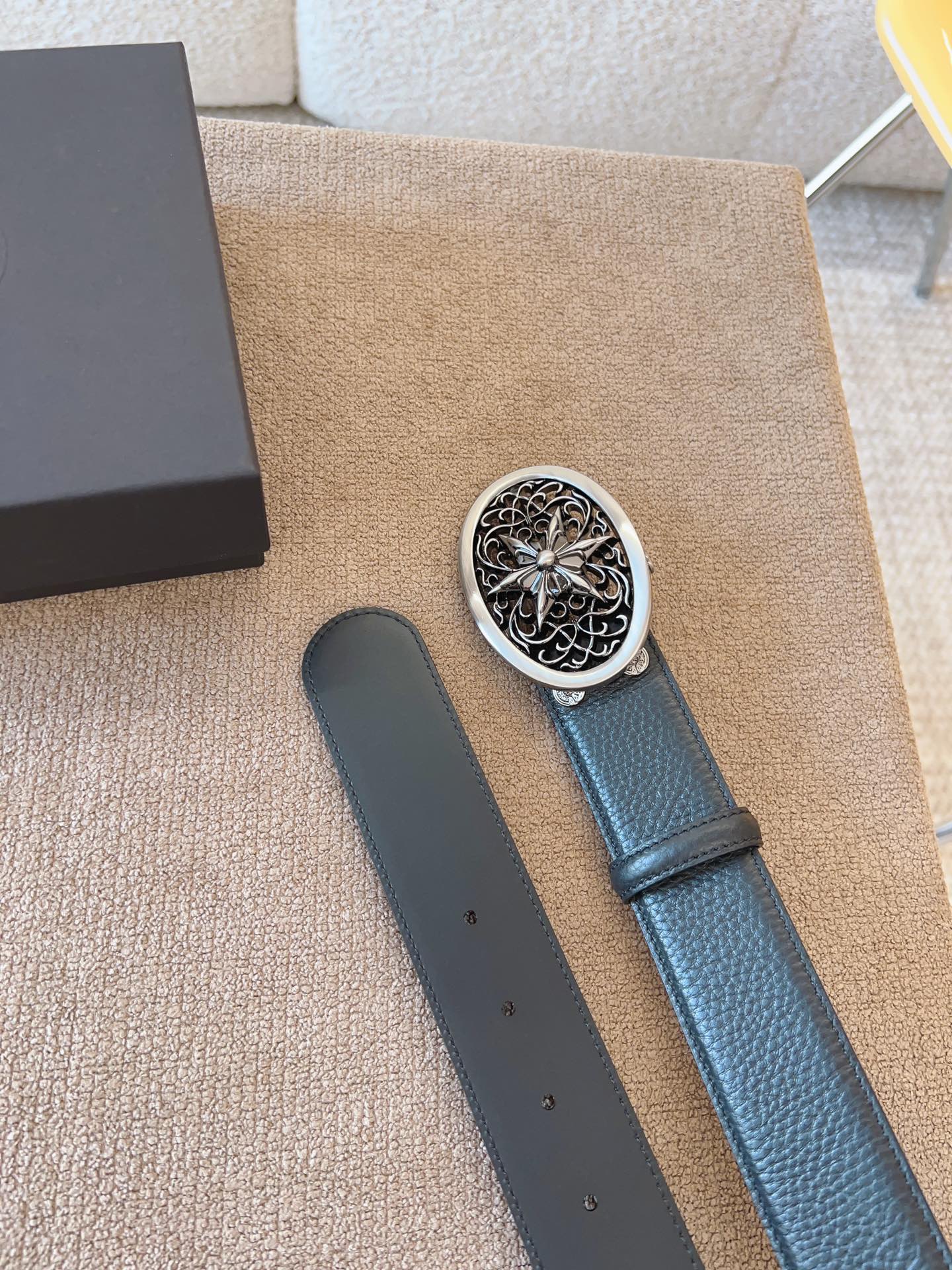 NIGO Chrome Hearts Men's and Women's Black Logo Logo Leather Strap 4cm Wide Belt #nigo73818
