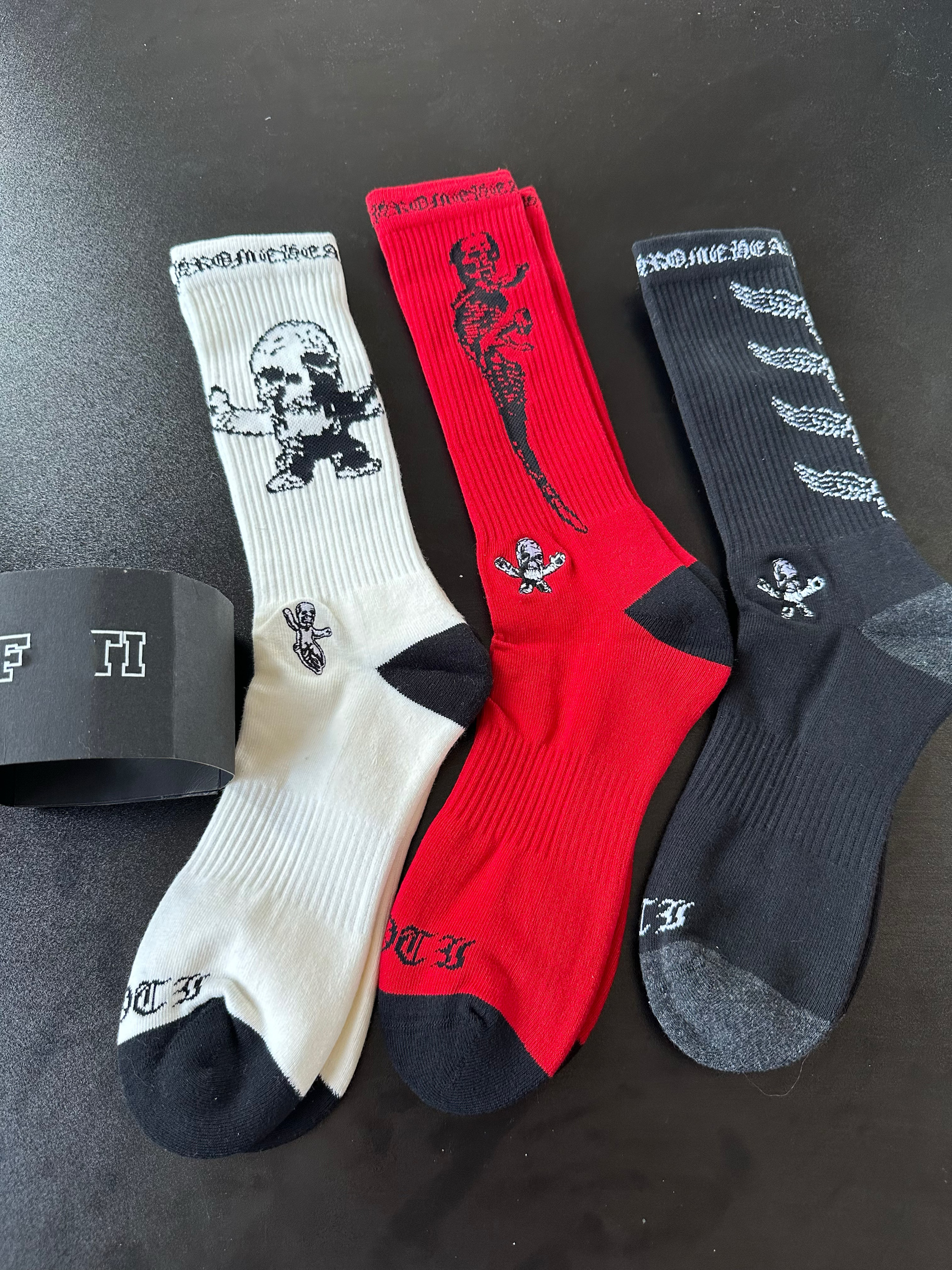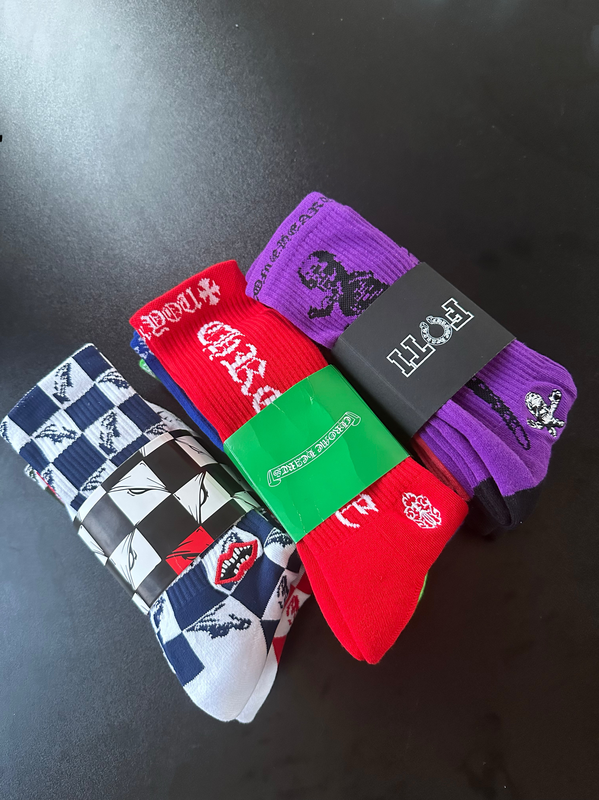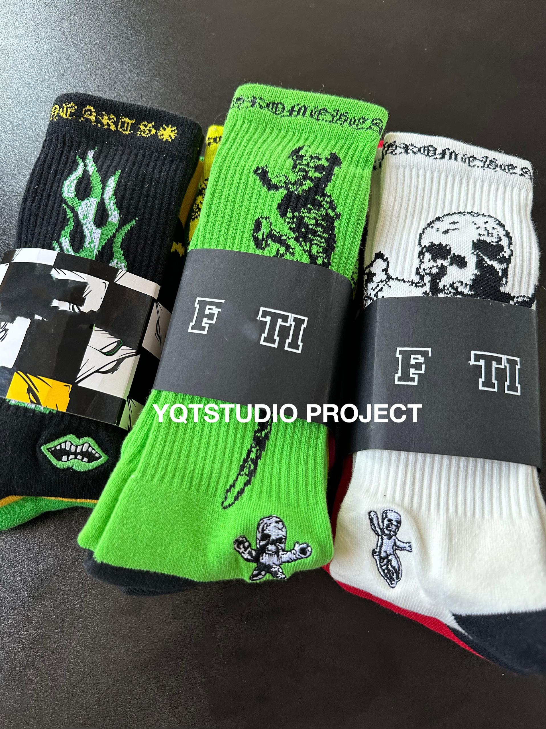 NIGO Chrome Hearts Men's And Women's Fashionable High Street Three-piece Set Skull Jacquard Long Socks Embroidered Lips Mid-calf Socks Trendy Cotton Accessories Ngvp #nigo2166