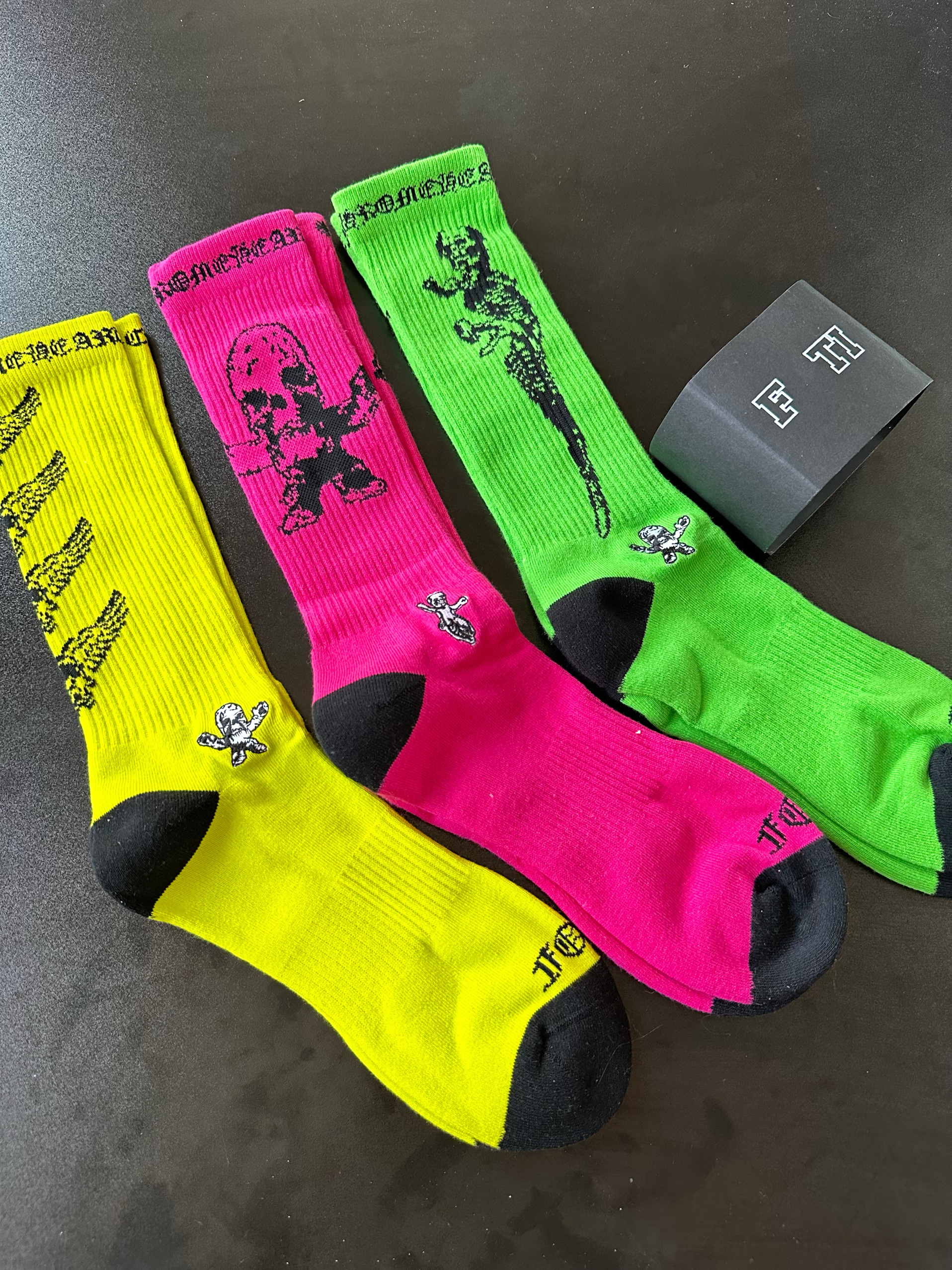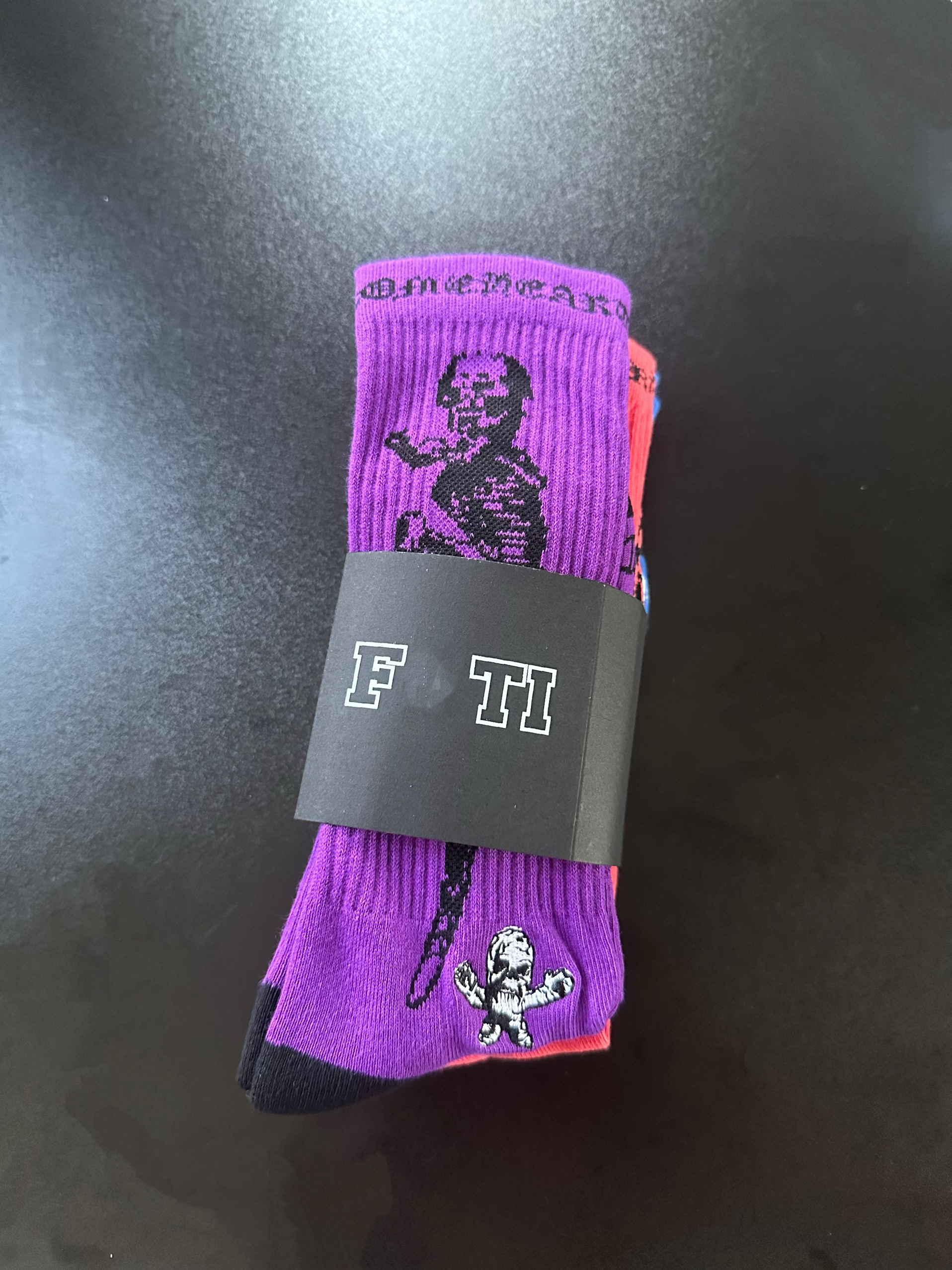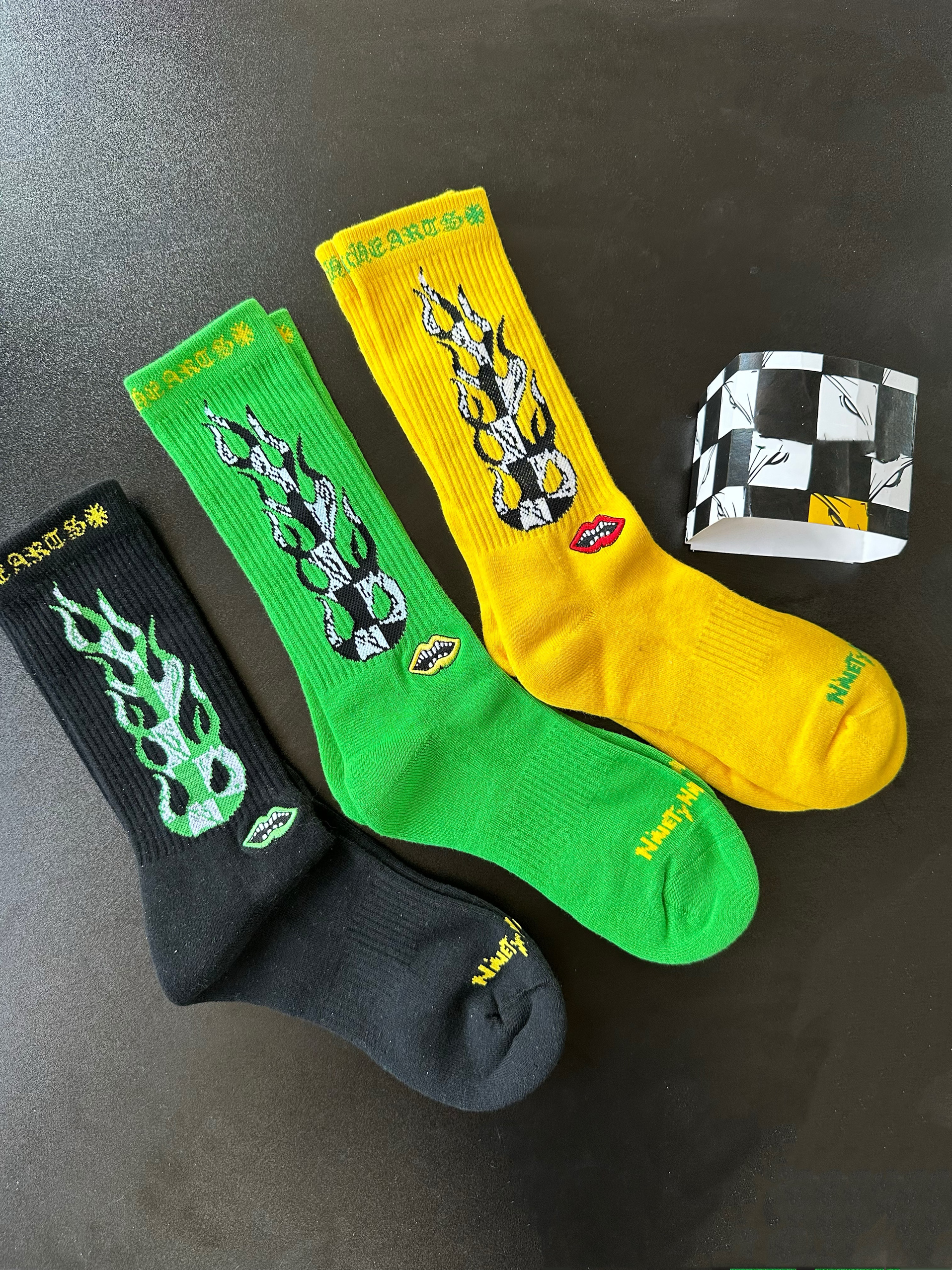 NIGO Chrome Hearts Men's And Women's Fashionable High Street Three-piece Set Skull Jacquard Long Socks Embroidered Lips Mid-calf Socks Trendy Cotton Accessories Ngvp #nigo2166