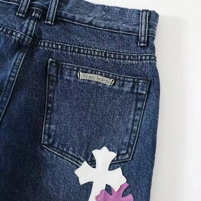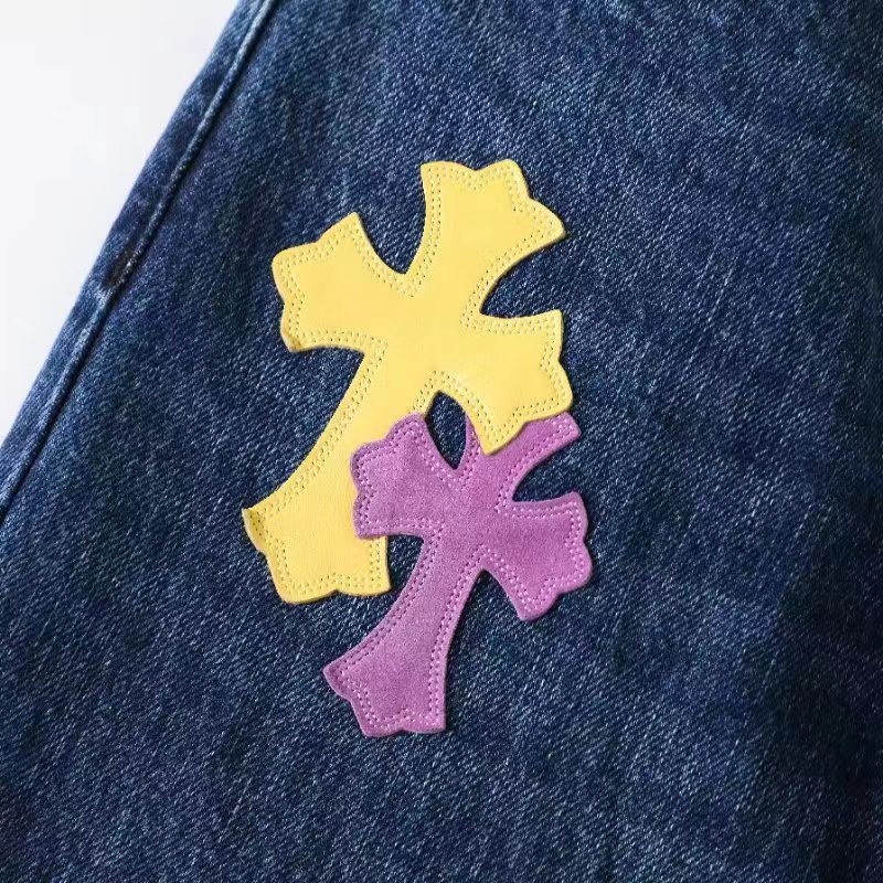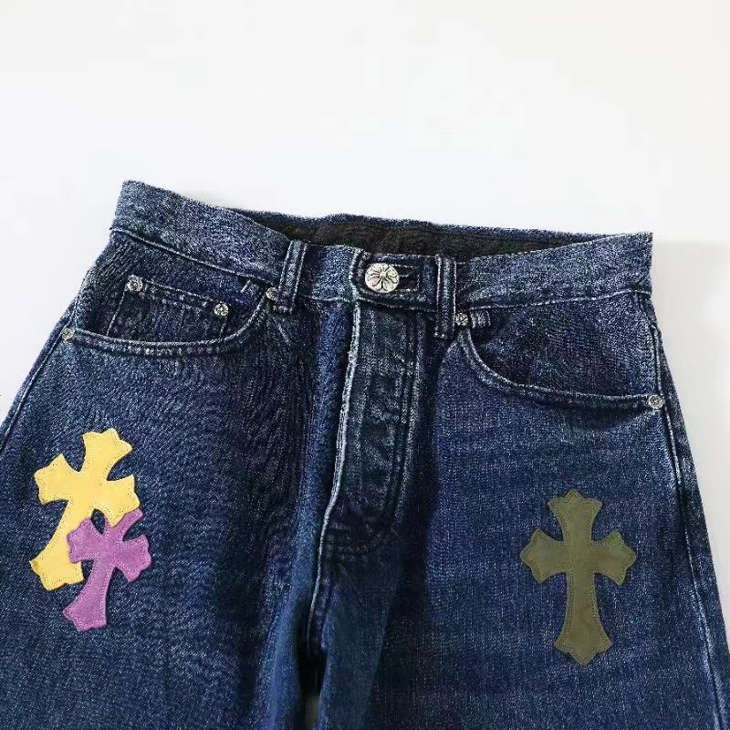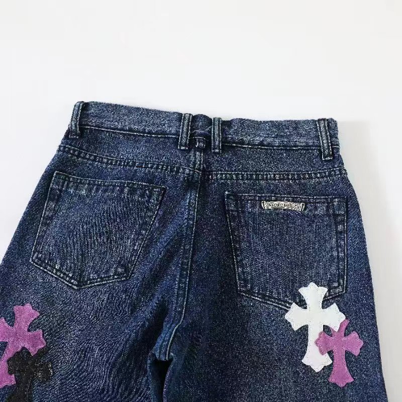 NIGO Chrome Hearts Men's and Women's Spring and Fall Cross Calfskin Labeled Blue Jeans Pants #nigo76119