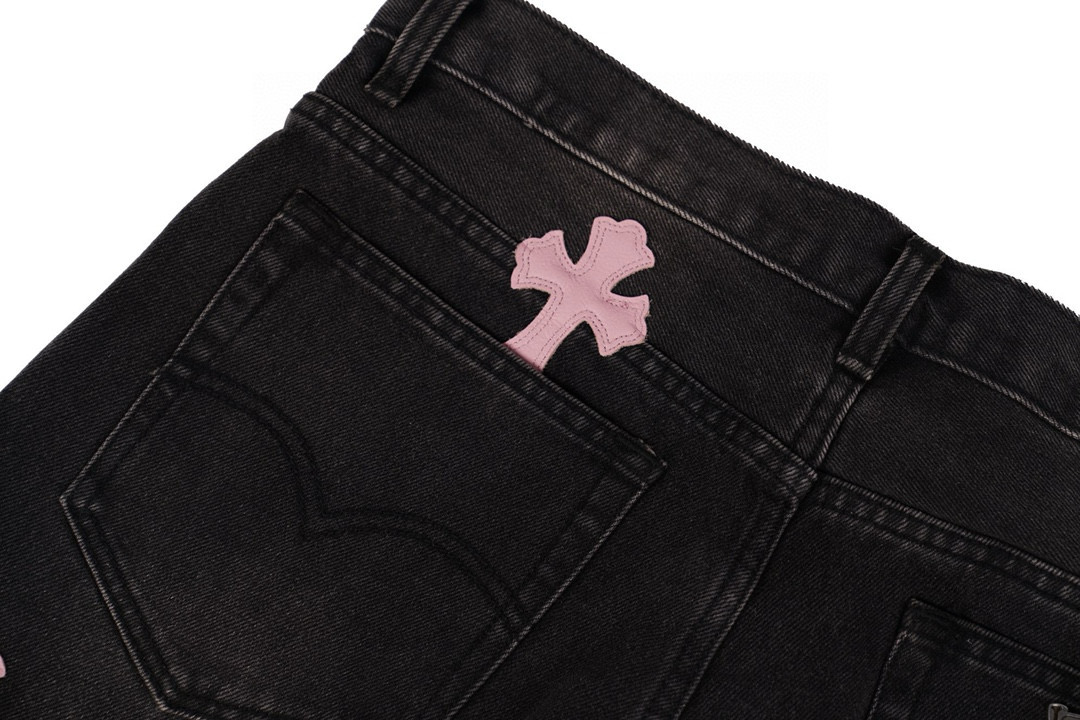 NIGO Chrome Hearts Men's and Women's Spring and Fall Pink Cross Calfskin Labeled Black Jeans Pants #nigo97952