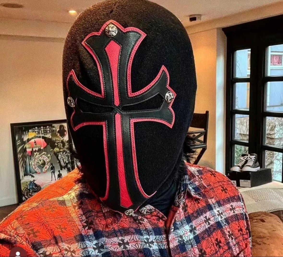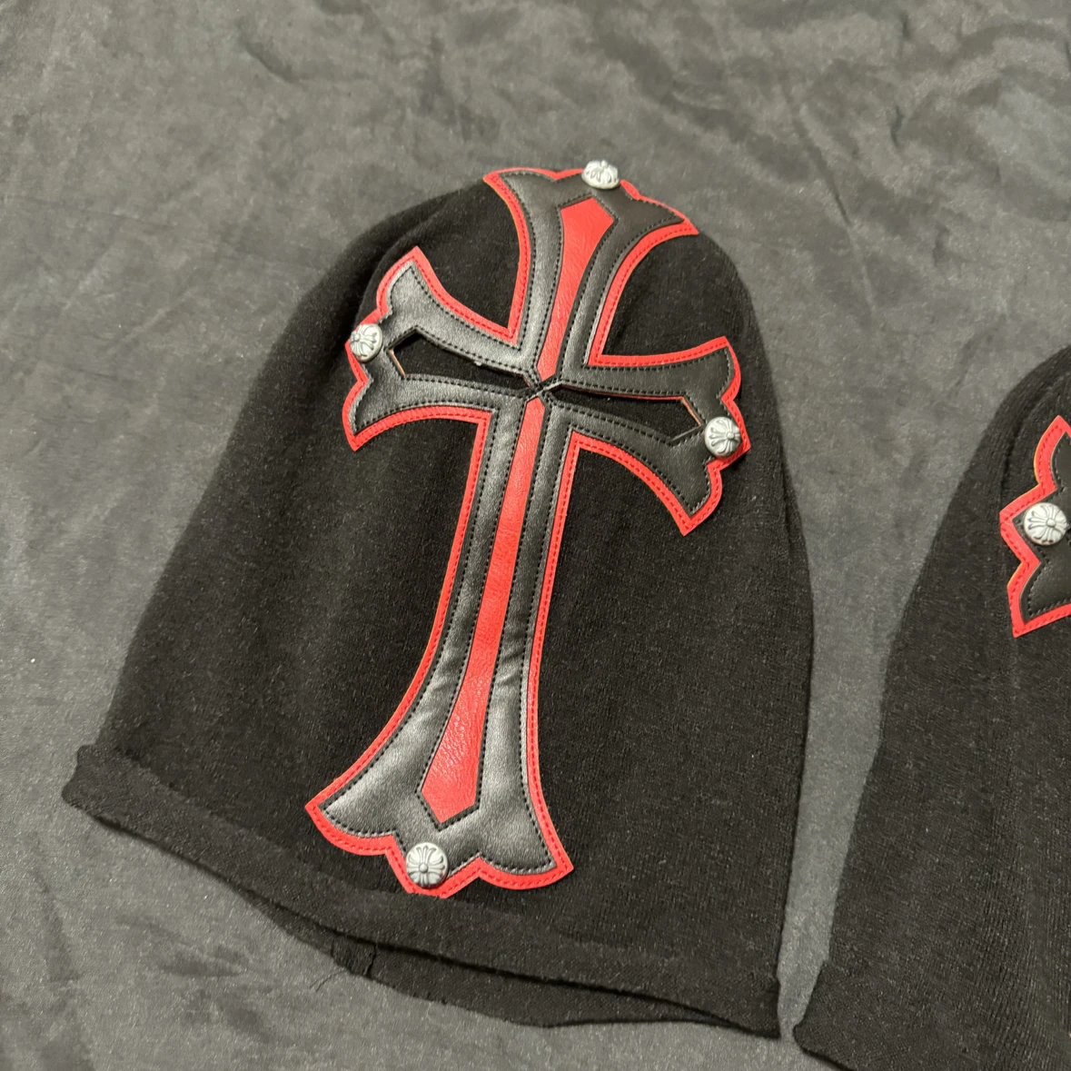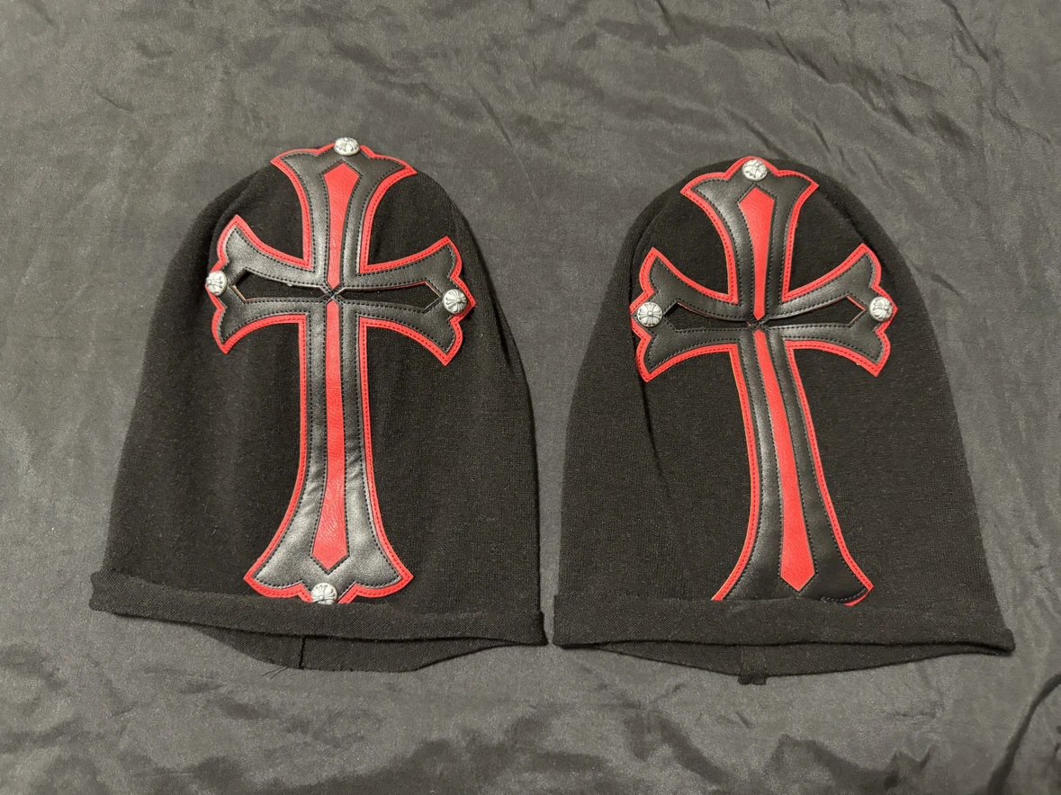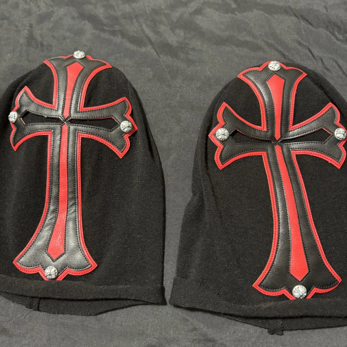 NIGO Chrome Hearts Men's Black and Red Cross Patchwork Leatherface Photo Hooded Hat Cap #nigo72853