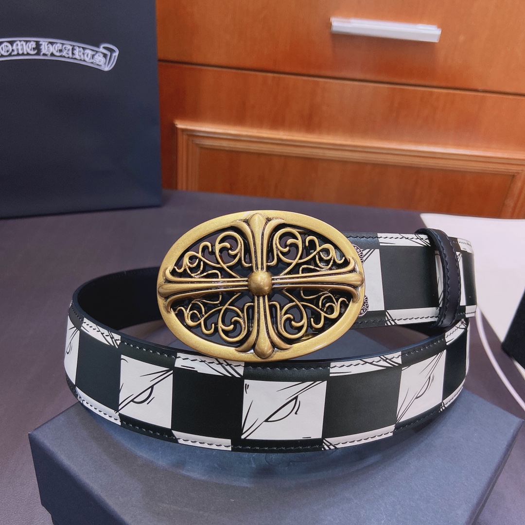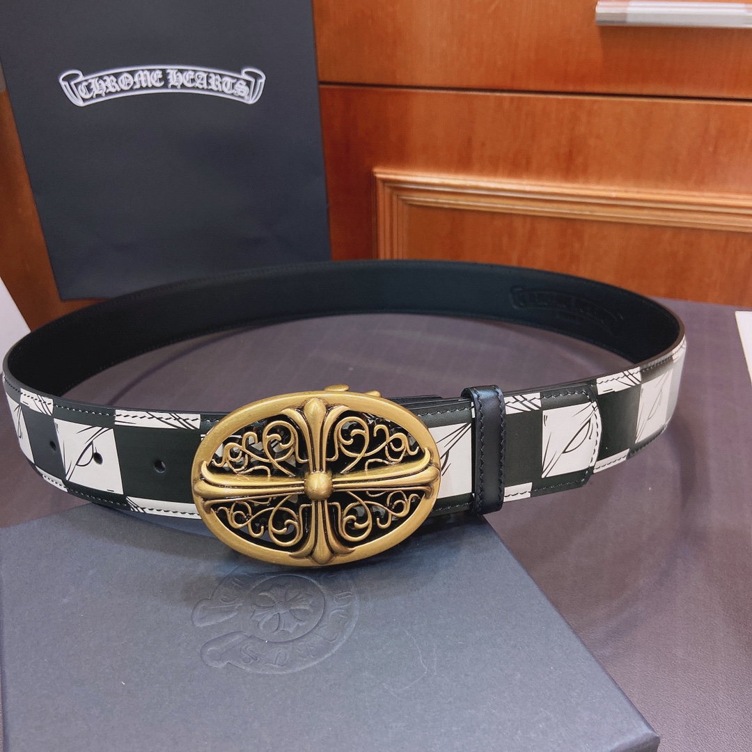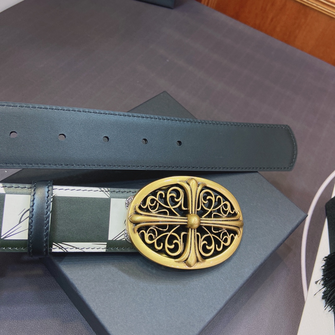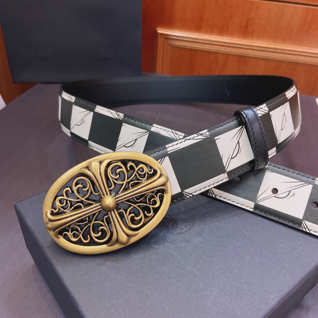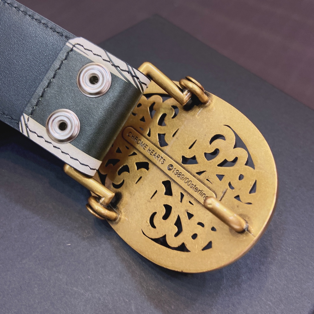 NIGO Chrome Hearts Men's Logo Leather Belt Pure Copper Thick Gold Plated 3.8cm Wide Belt Jewelry #nigo76288