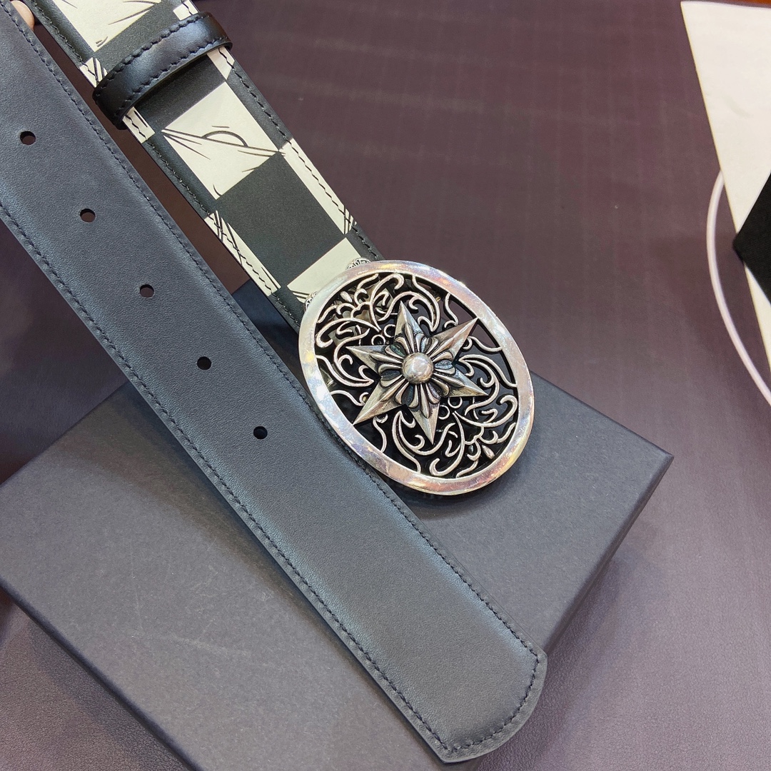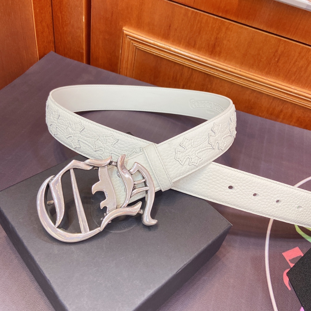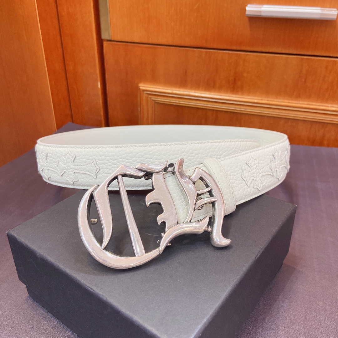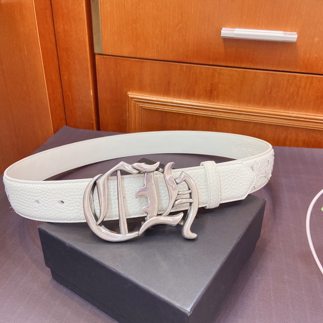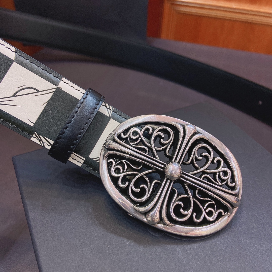 NIGO Chrome Hearts Men's Logo Leather Belt Pure Copper Thick Gold Plated 3.8cm Wide Belt Jewelry #nigo76288
