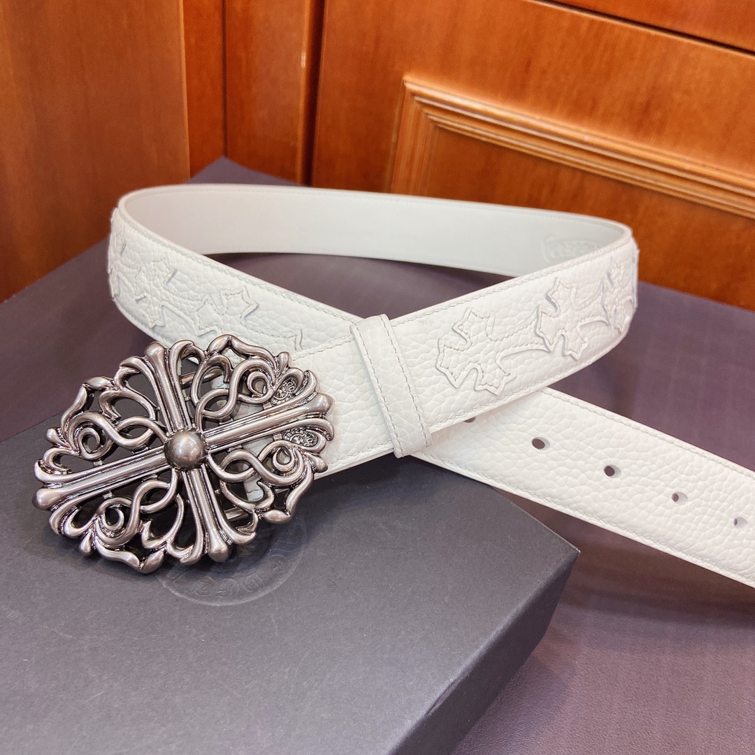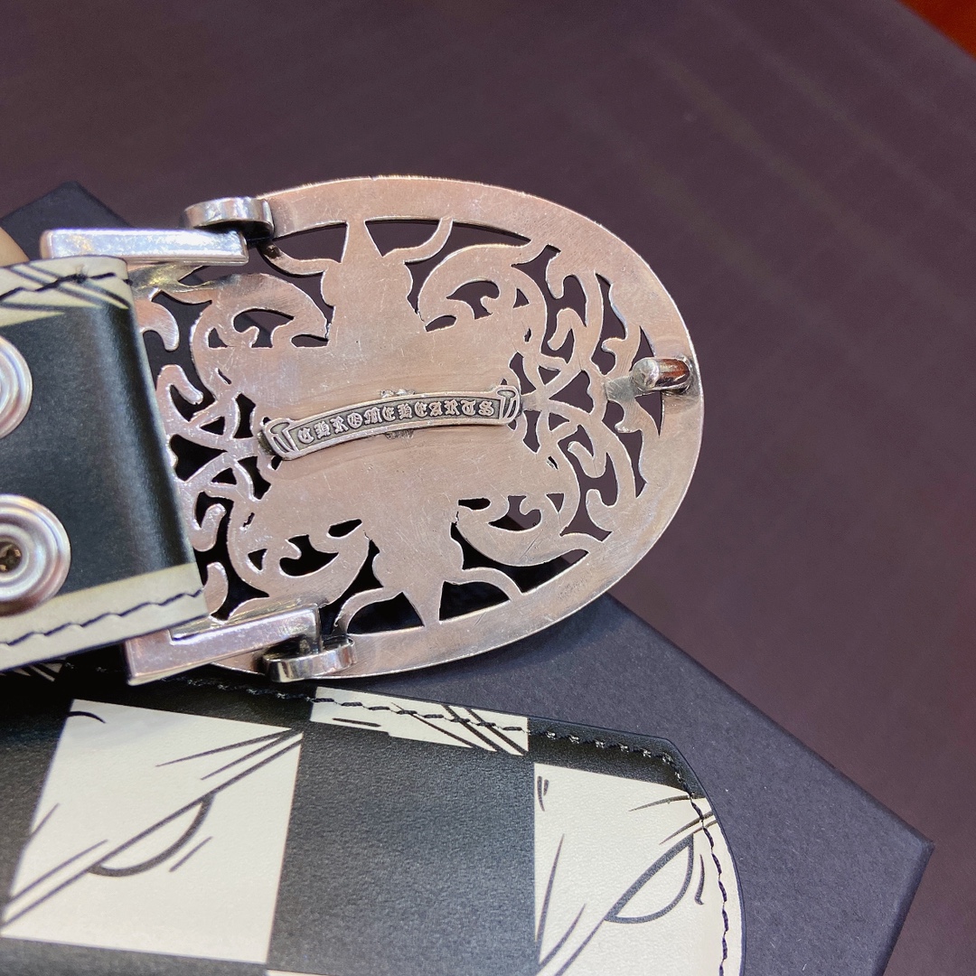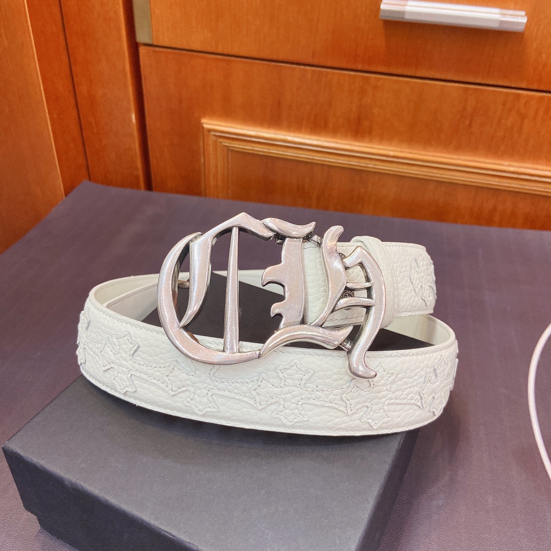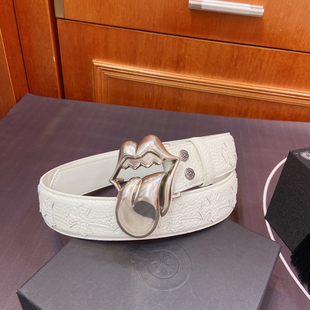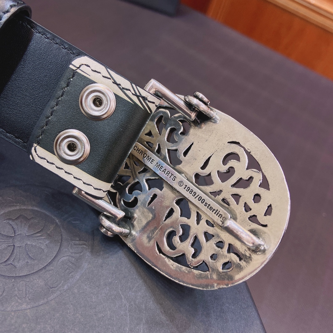 NIGO Chrome Hearts Men's Logo Leather Belt Pure Copper Thick Gold Plated 3.8cm Wide Belt Jewelry #nigo76288