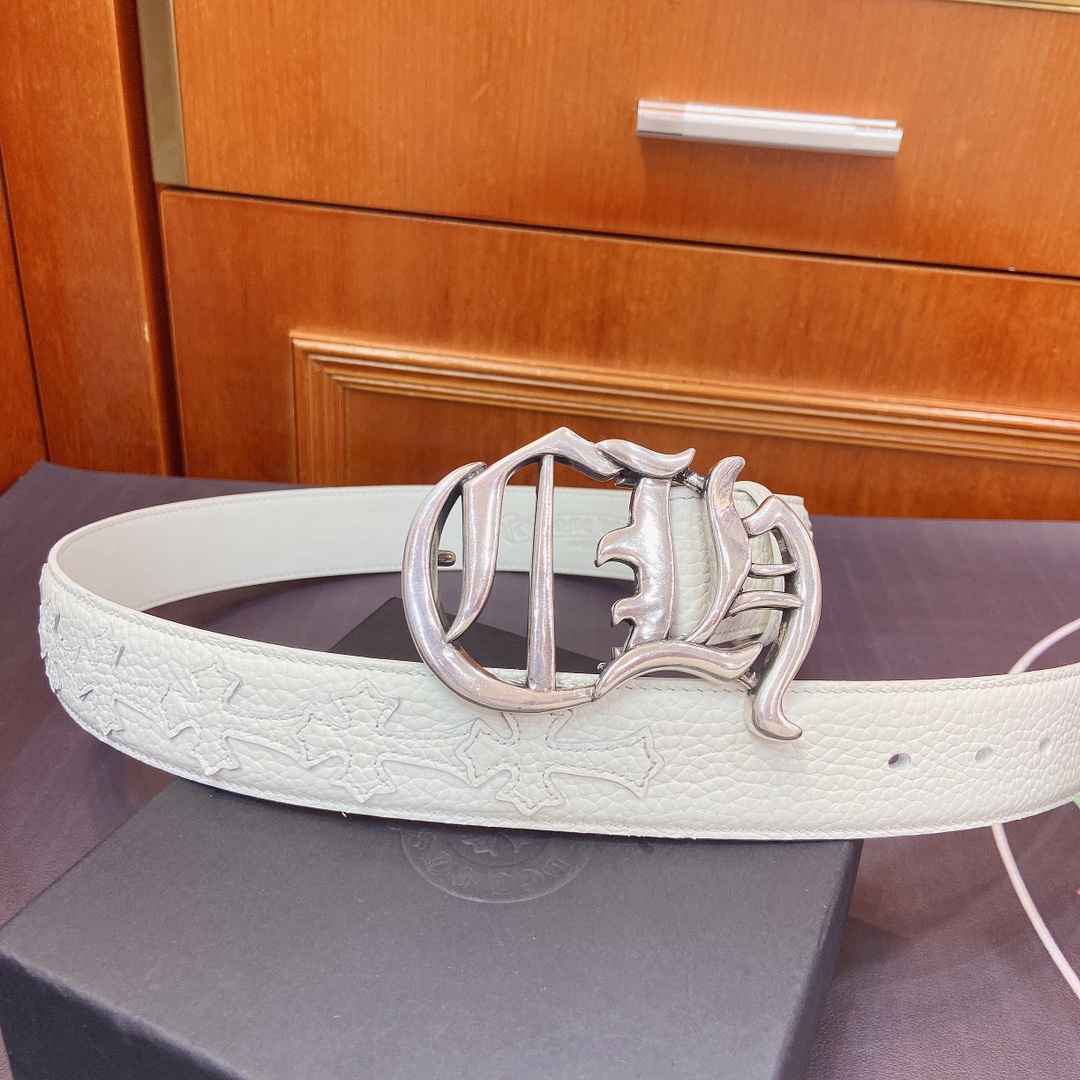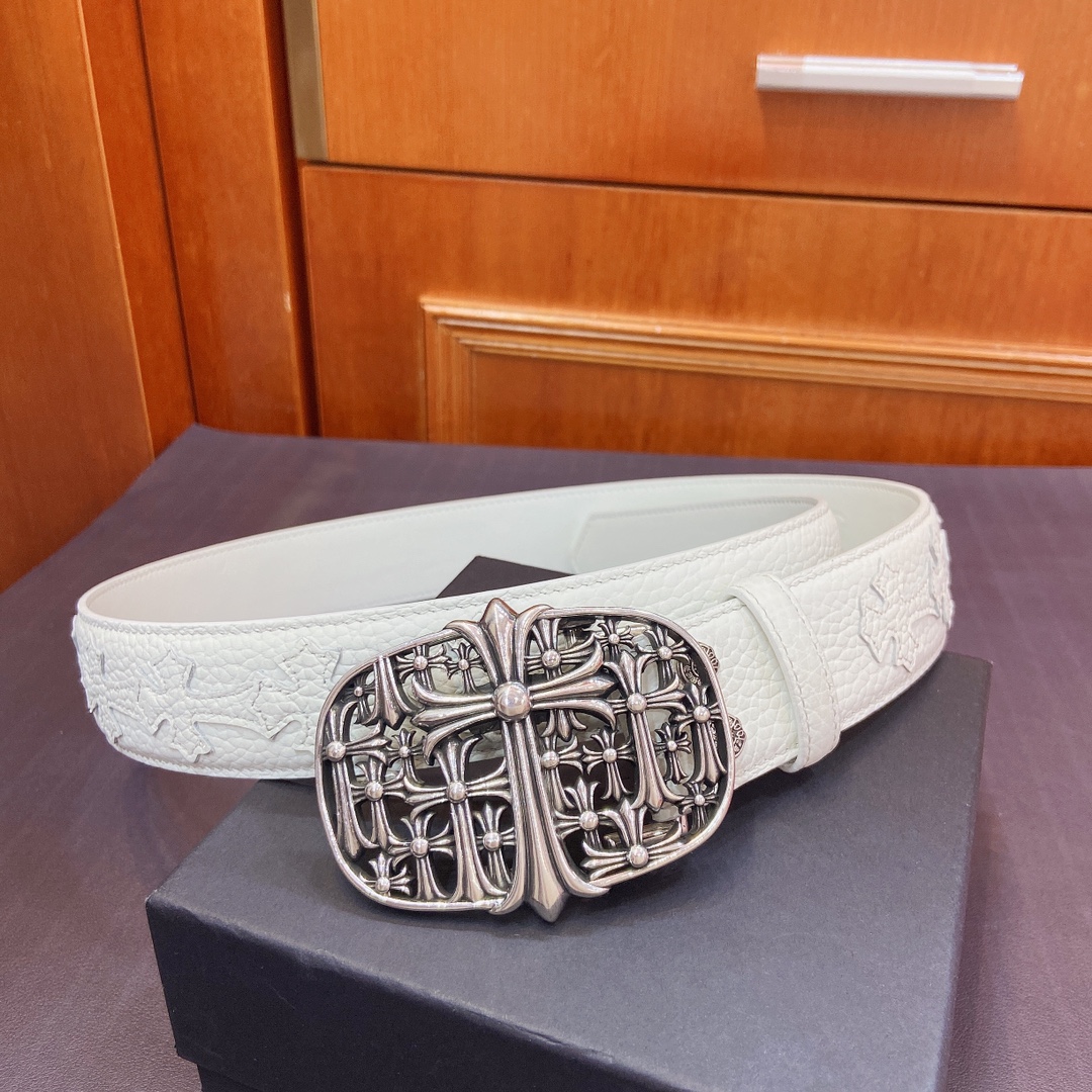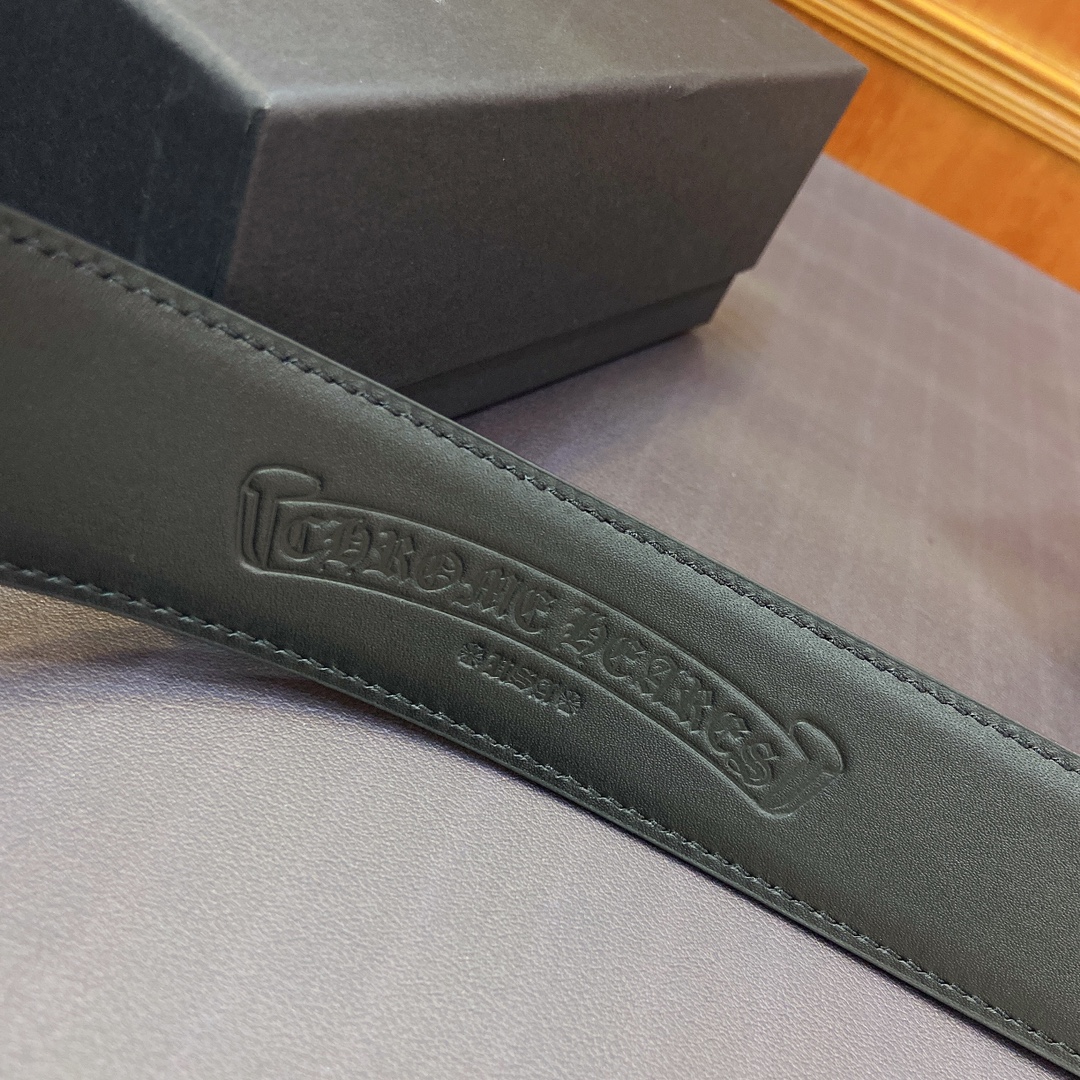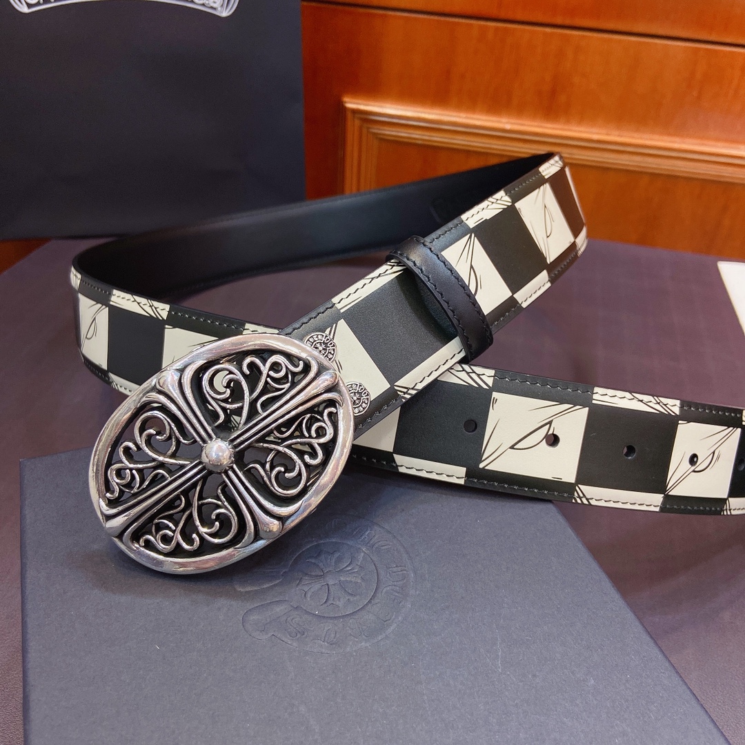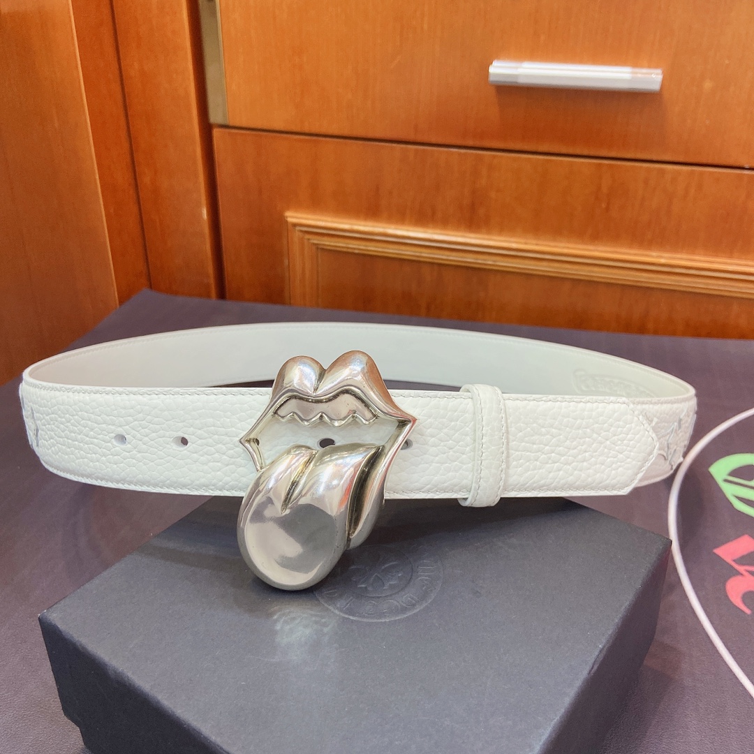 NIGO Chrome Hearts Men's Logo Leather Belt Pure Copper Thick Gold Plated 3.8cm Wide Belt Jewelry #nigo76288