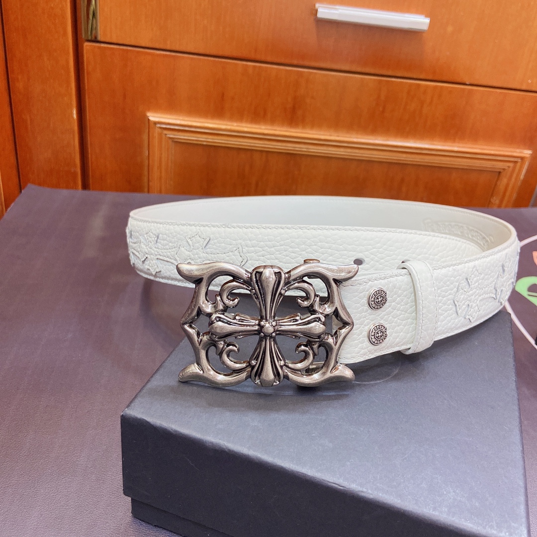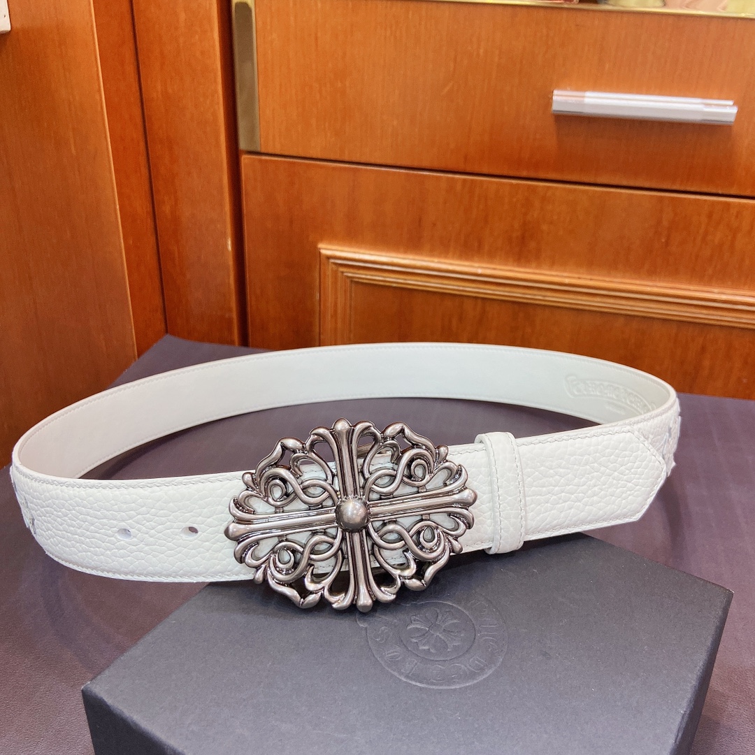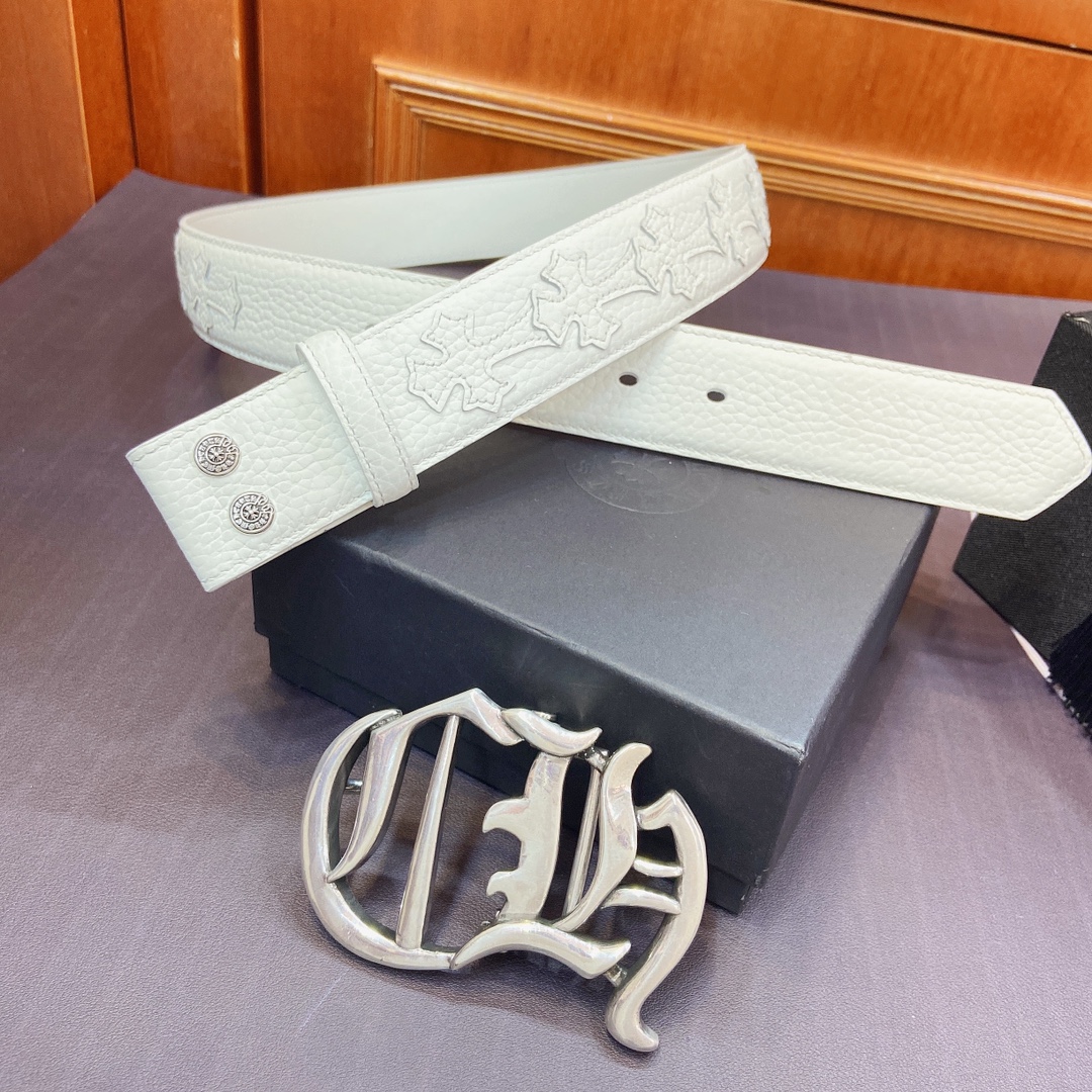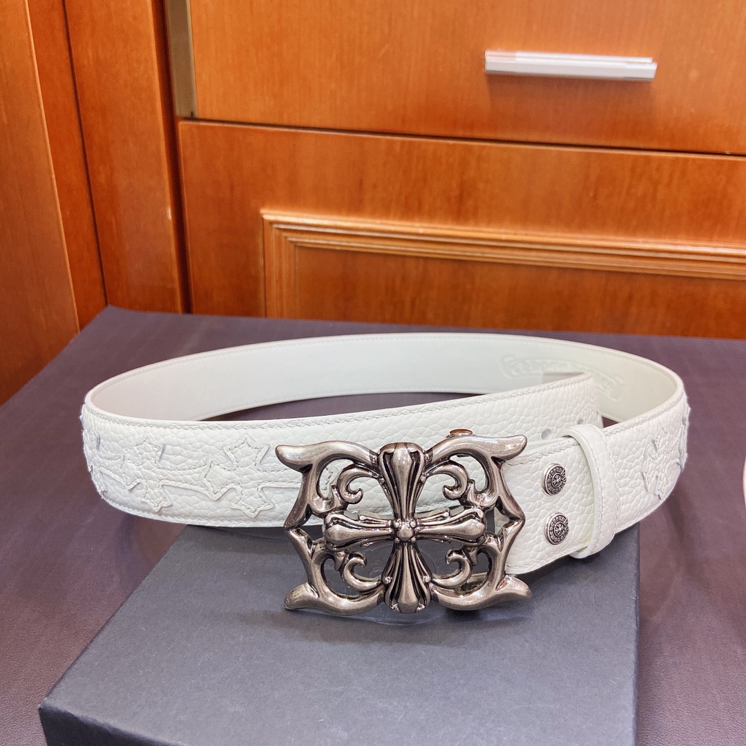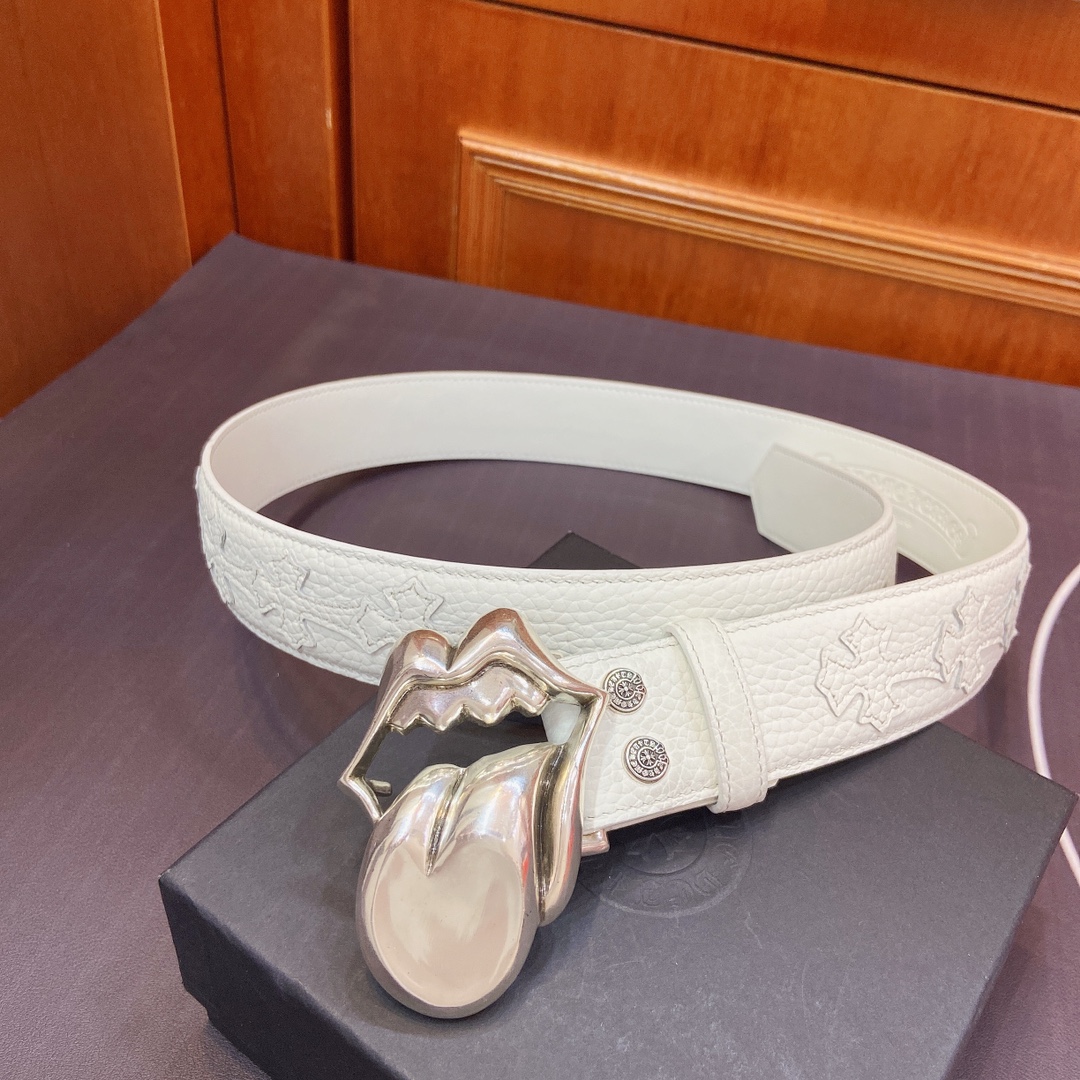 NIGO Chrome Hearts Men's Logo Leather Belt Pure Copper Thick Gold Plated 3.8cm Wide Belt Jewelry #nigo76288