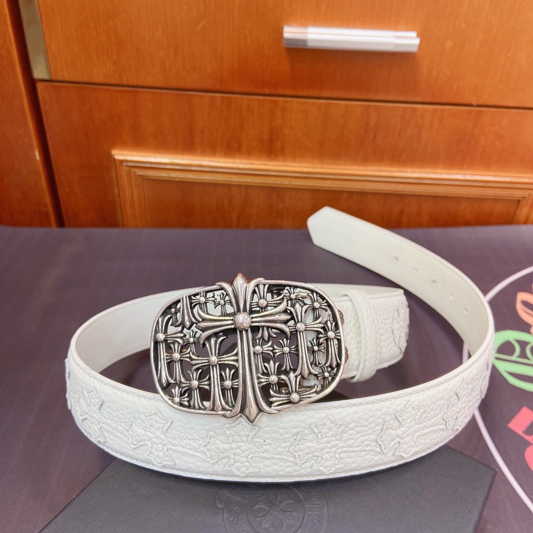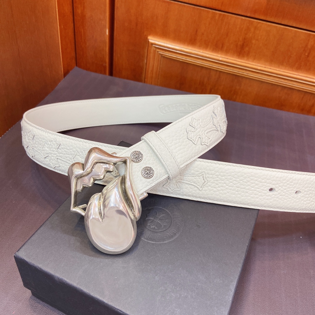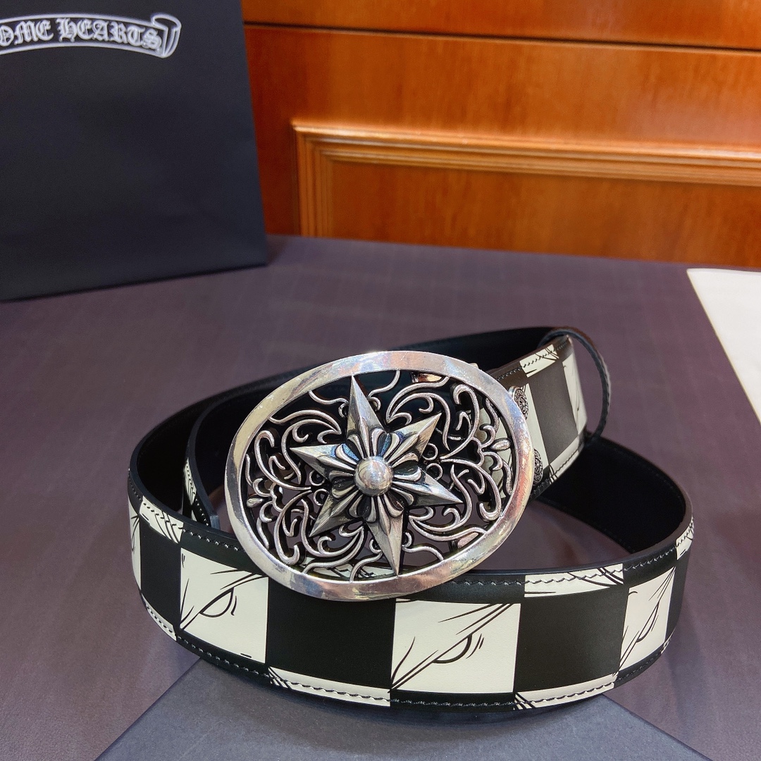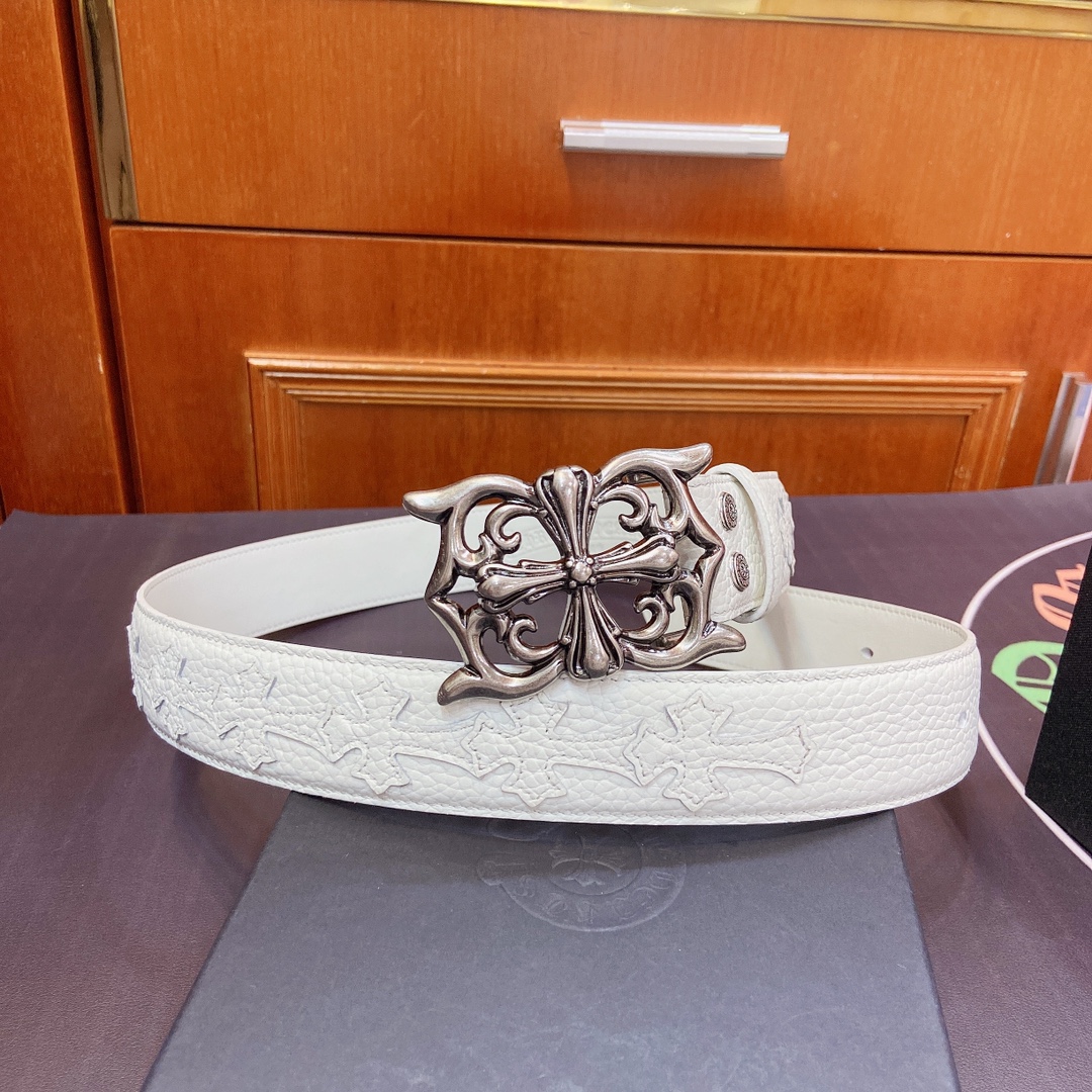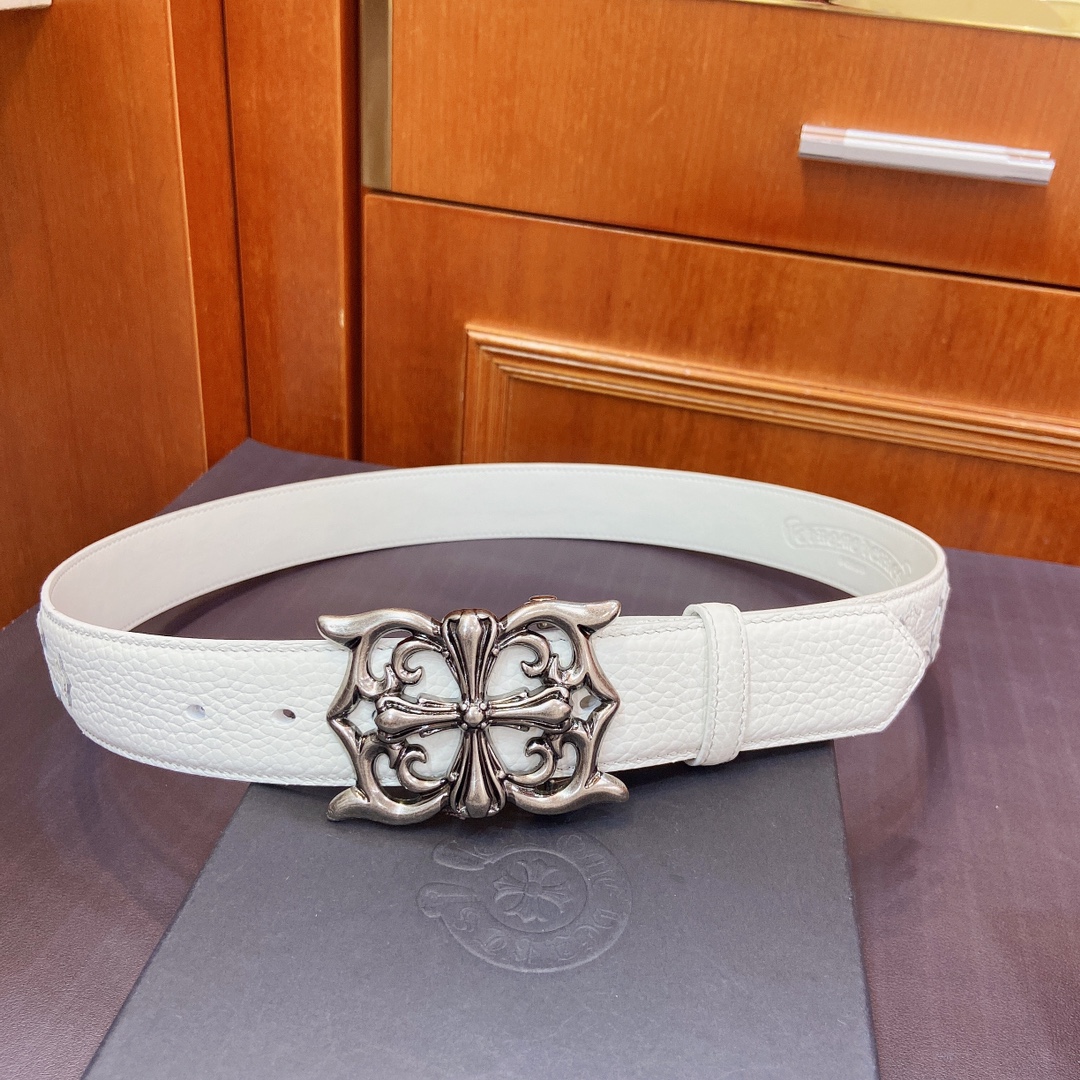 NIGO Chrome Hearts Men's Logo Leather Belt Pure Copper Thick Gold Plated 3.8cm Wide Belt Jewelry #nigo76288