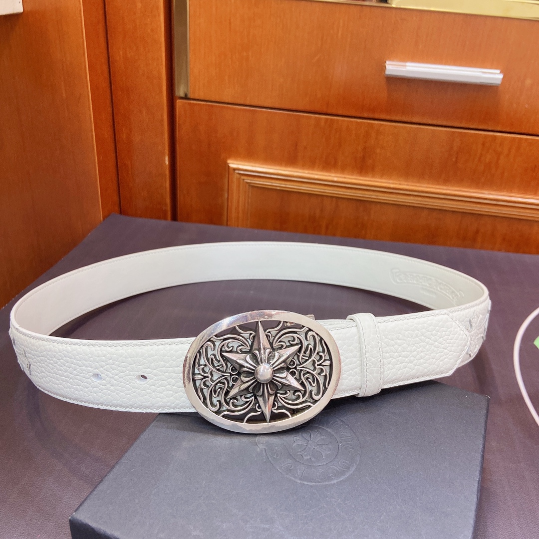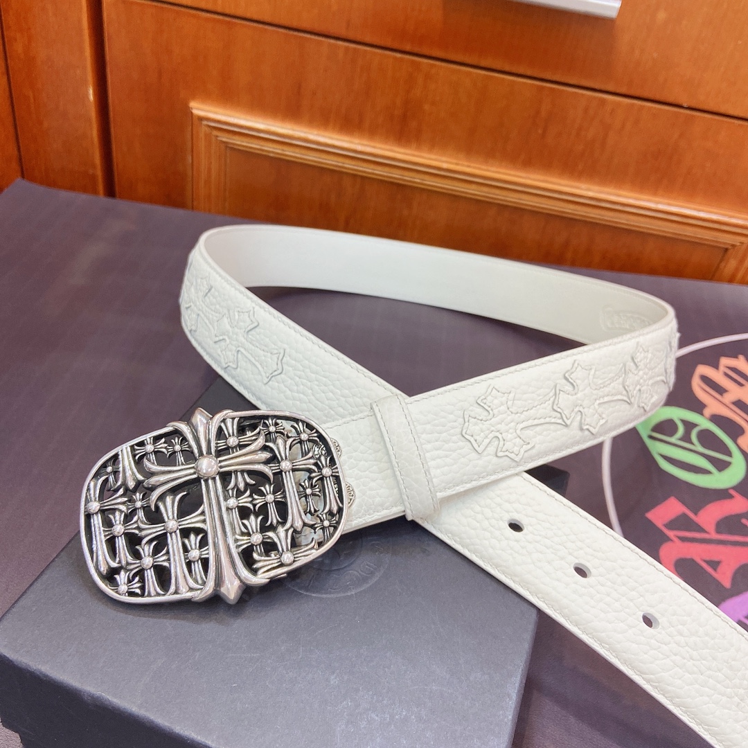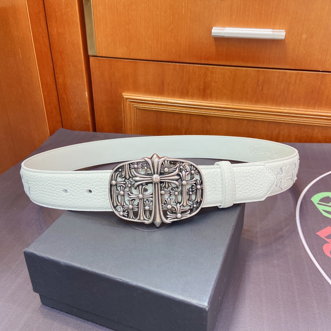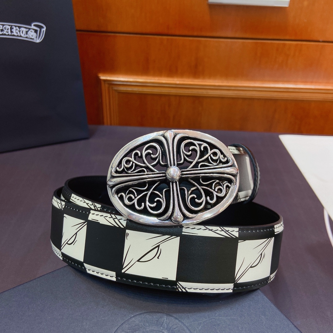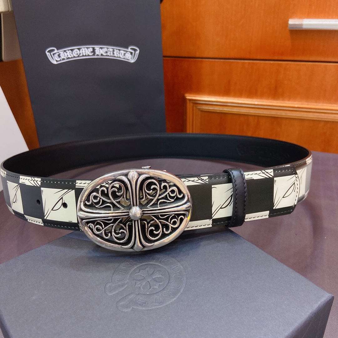 NIGO Chrome Hearts Men's Logo Leather Belt Pure Copper Thick Gold Plated 3.8cm Wide Belt Jewelry #nigo76288