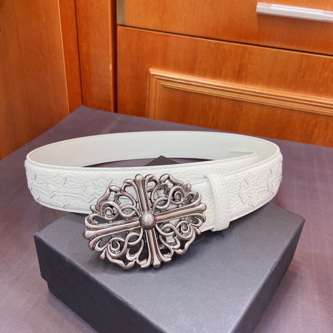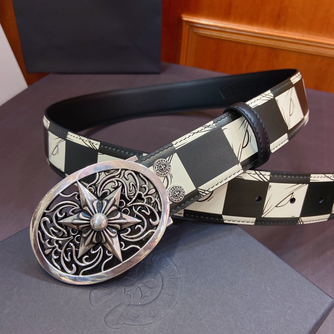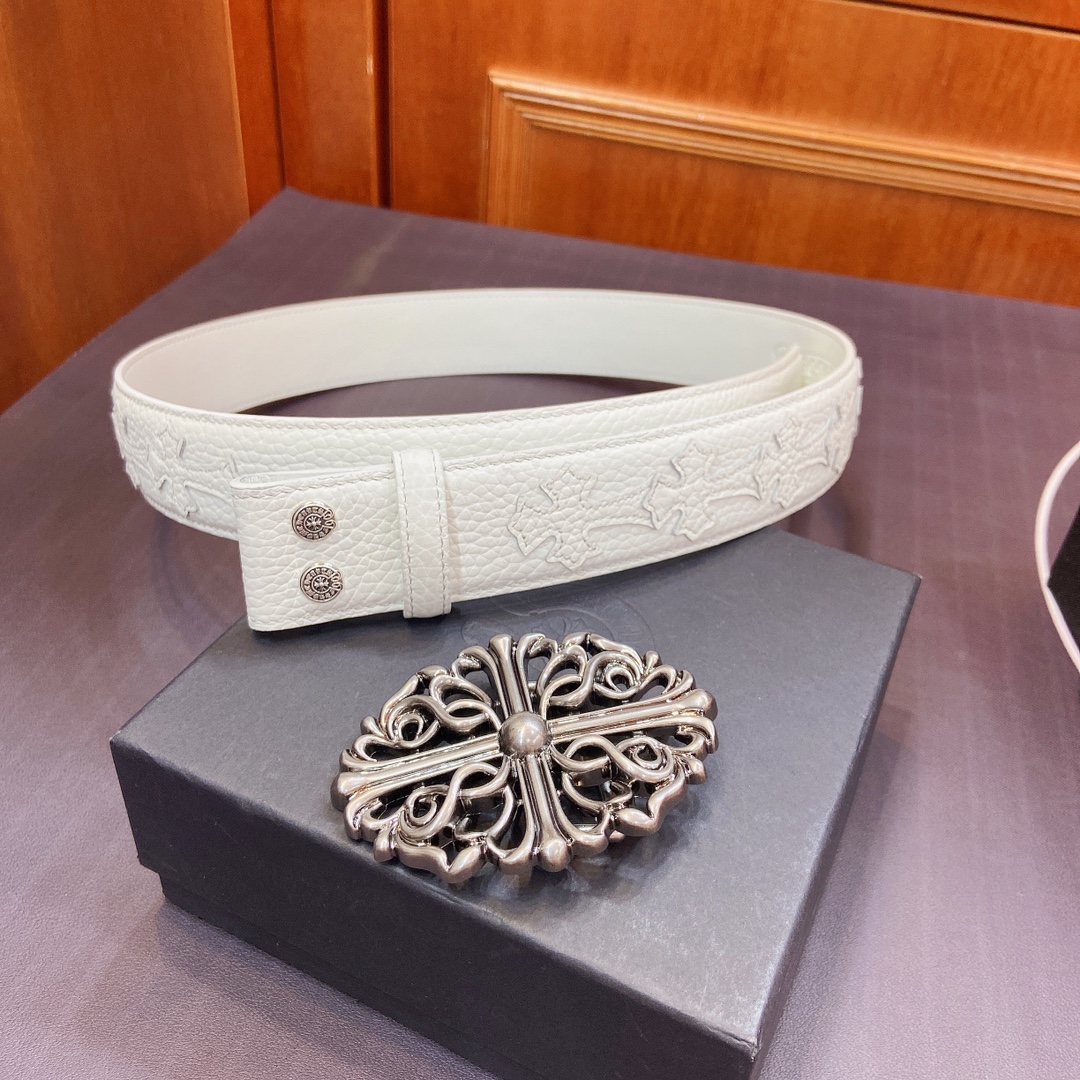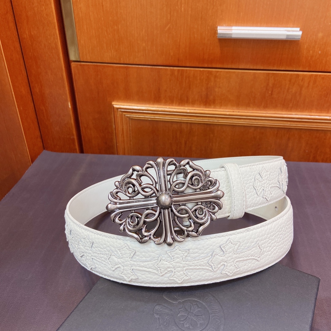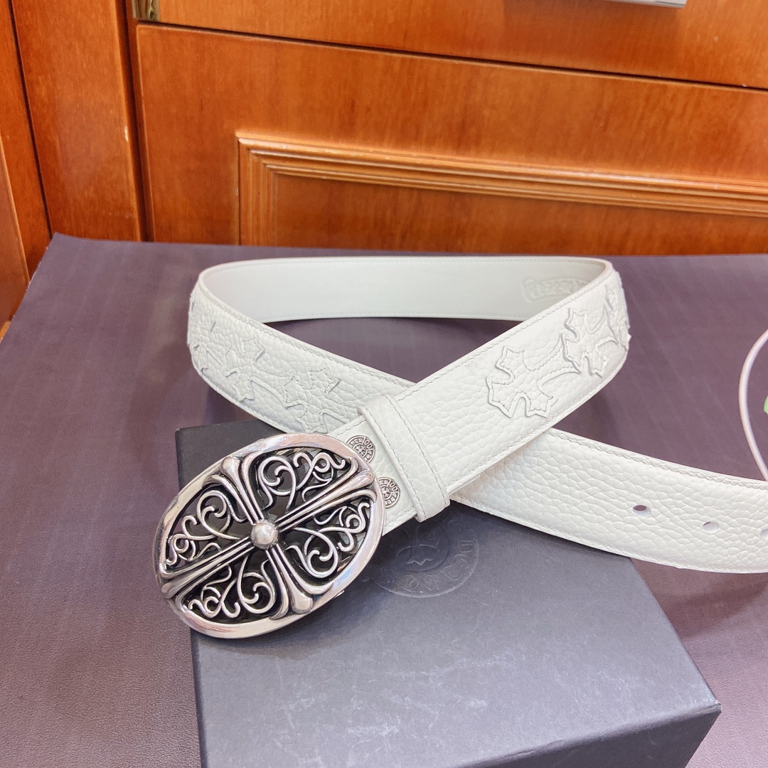 NIGO Chrome Hearts Men's Logo Leather Belt Pure Copper Thick Gold Plated 3.8cm Wide Belt Jewelry #nigo76288