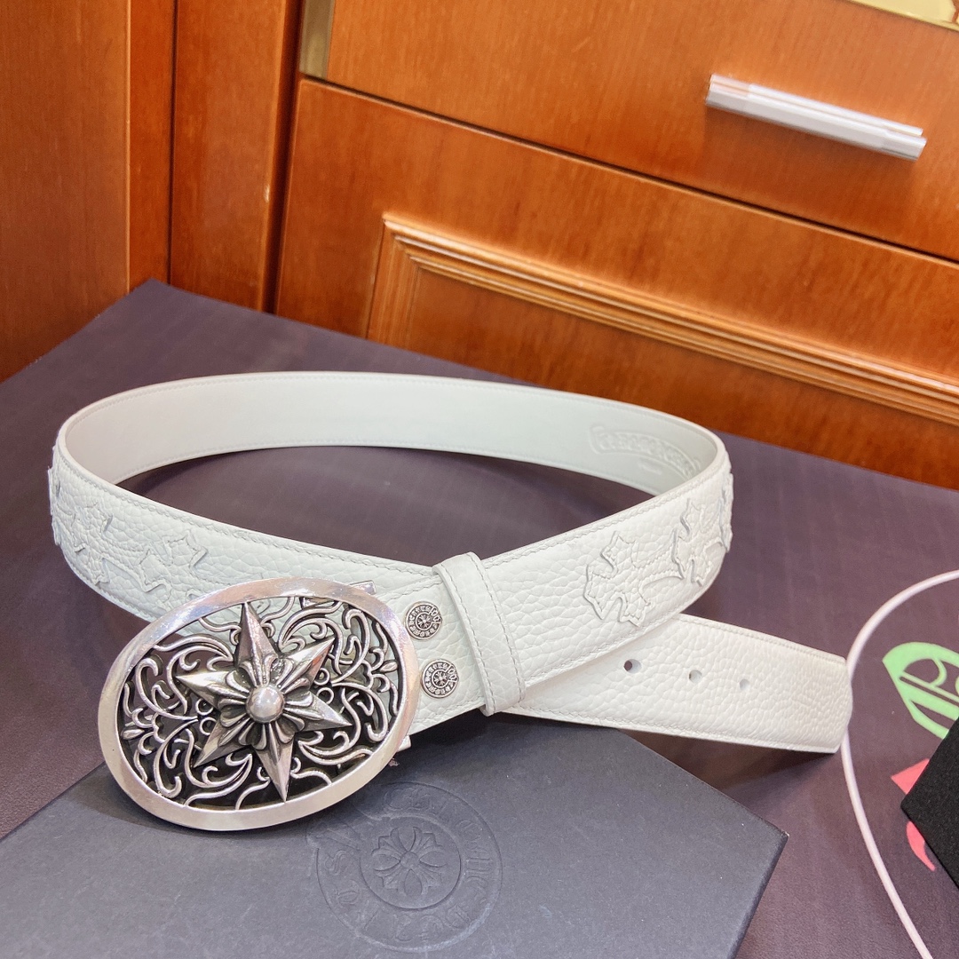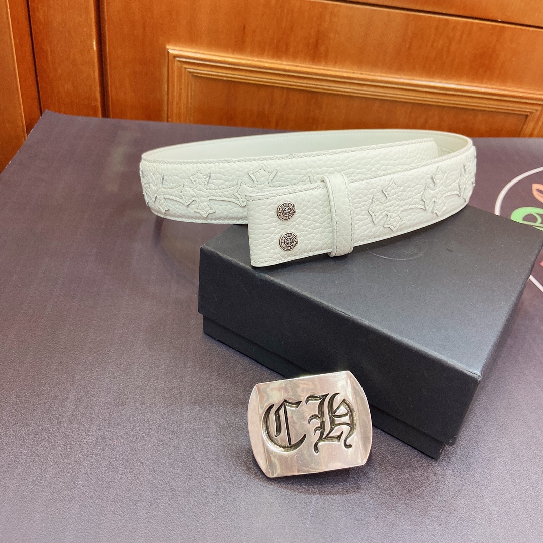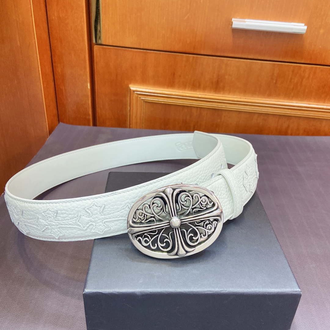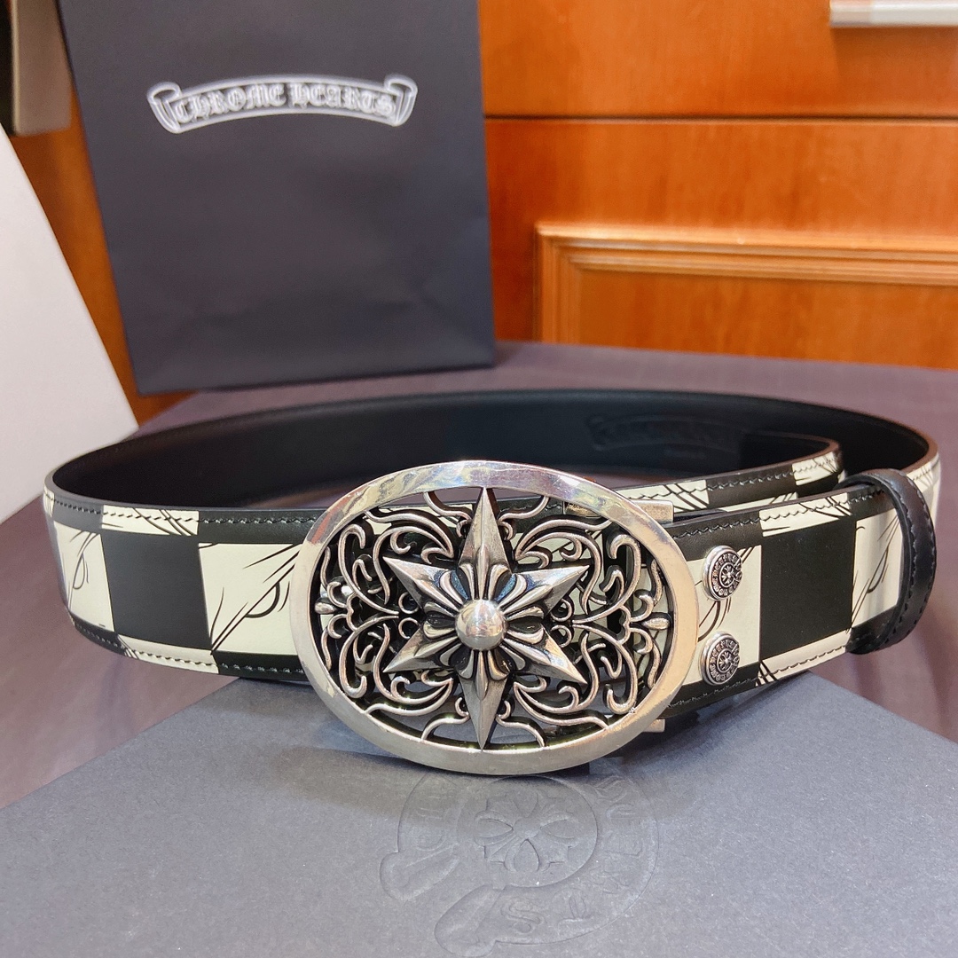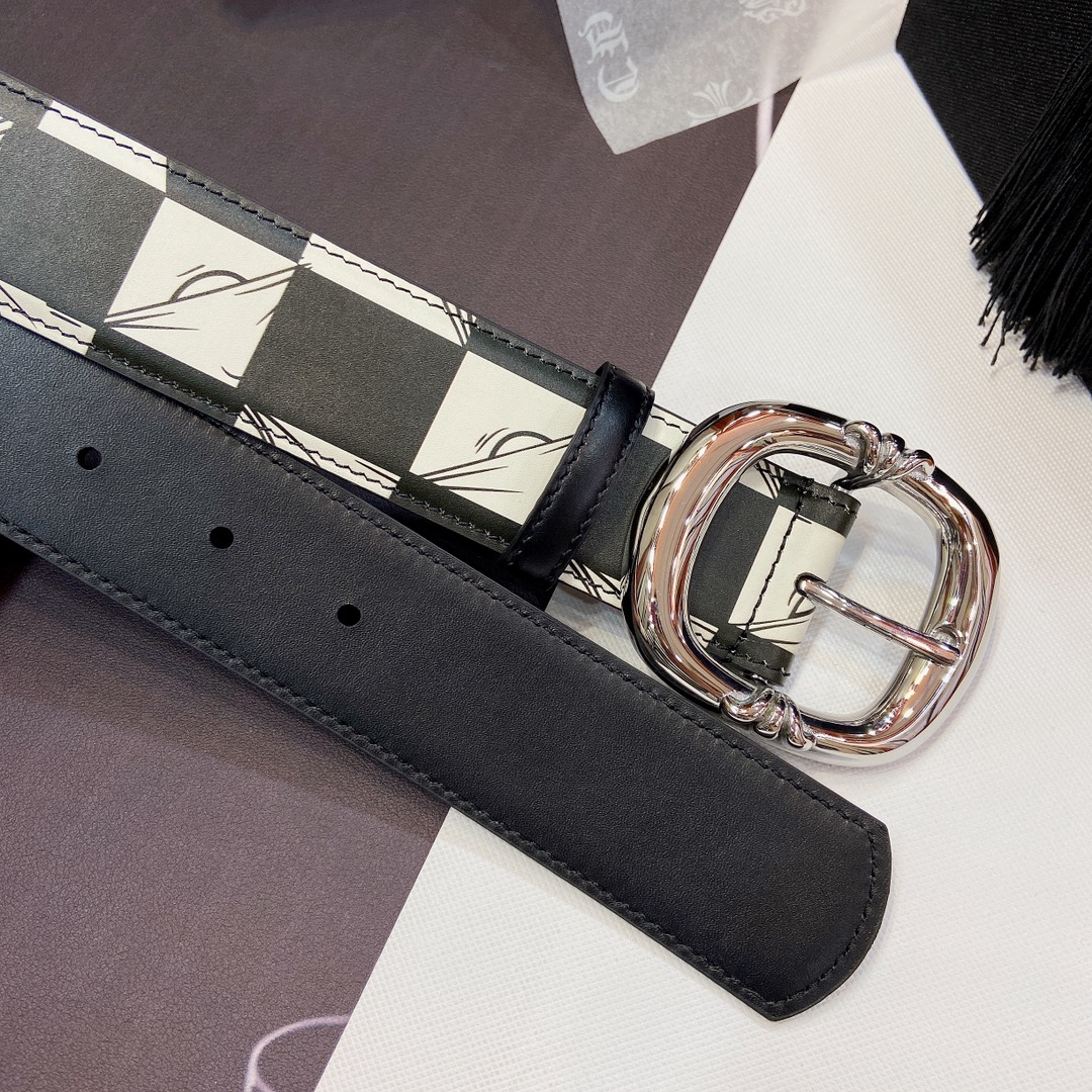 NIGO Chrome Hearts Men's Logo Leather Belt Pure Copper Thick Gold Plated 3.8cm Wide Belt Jewelry #nigo76288