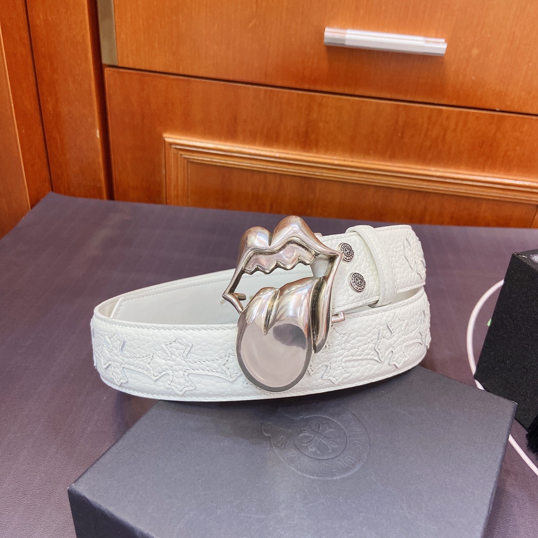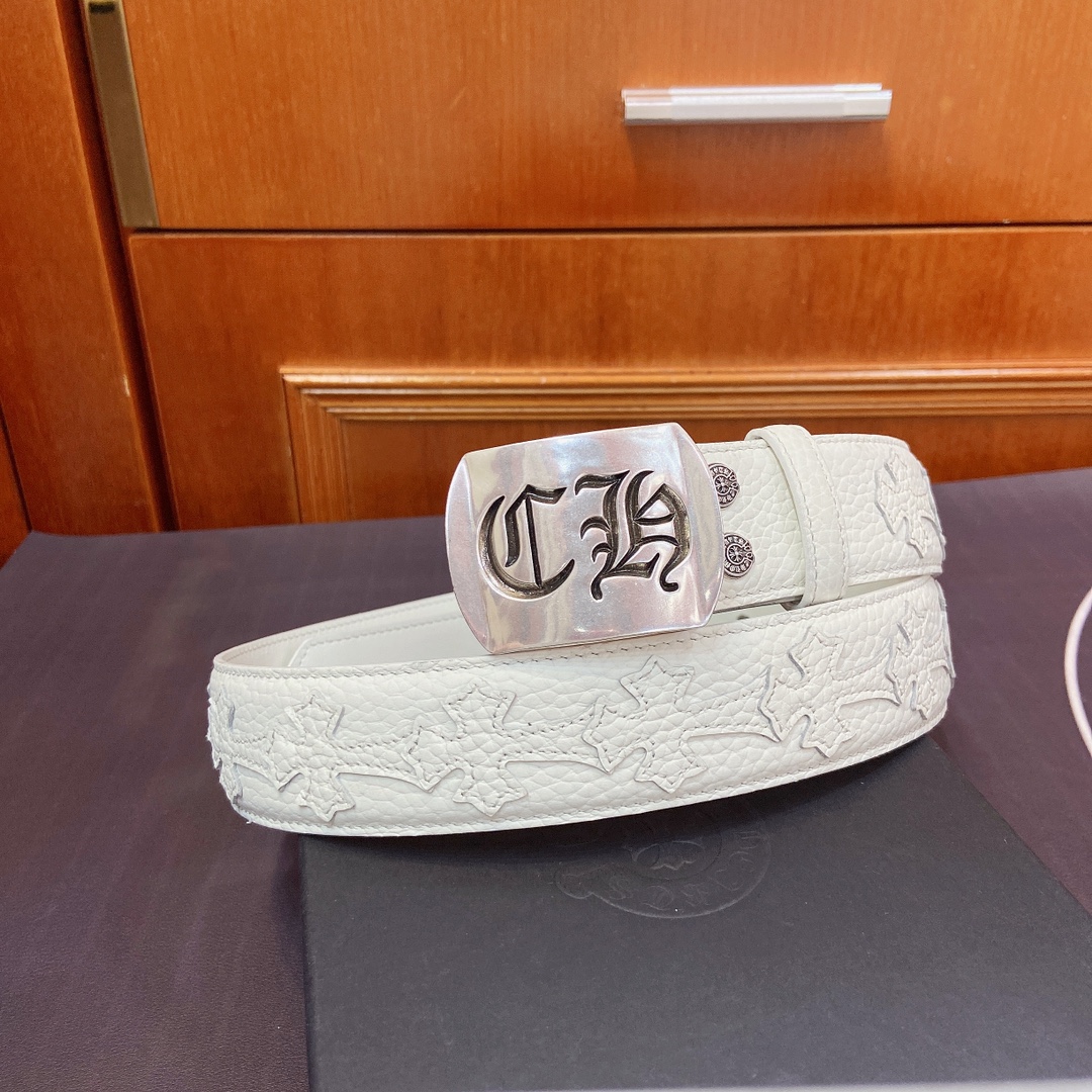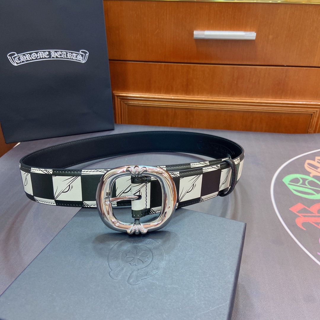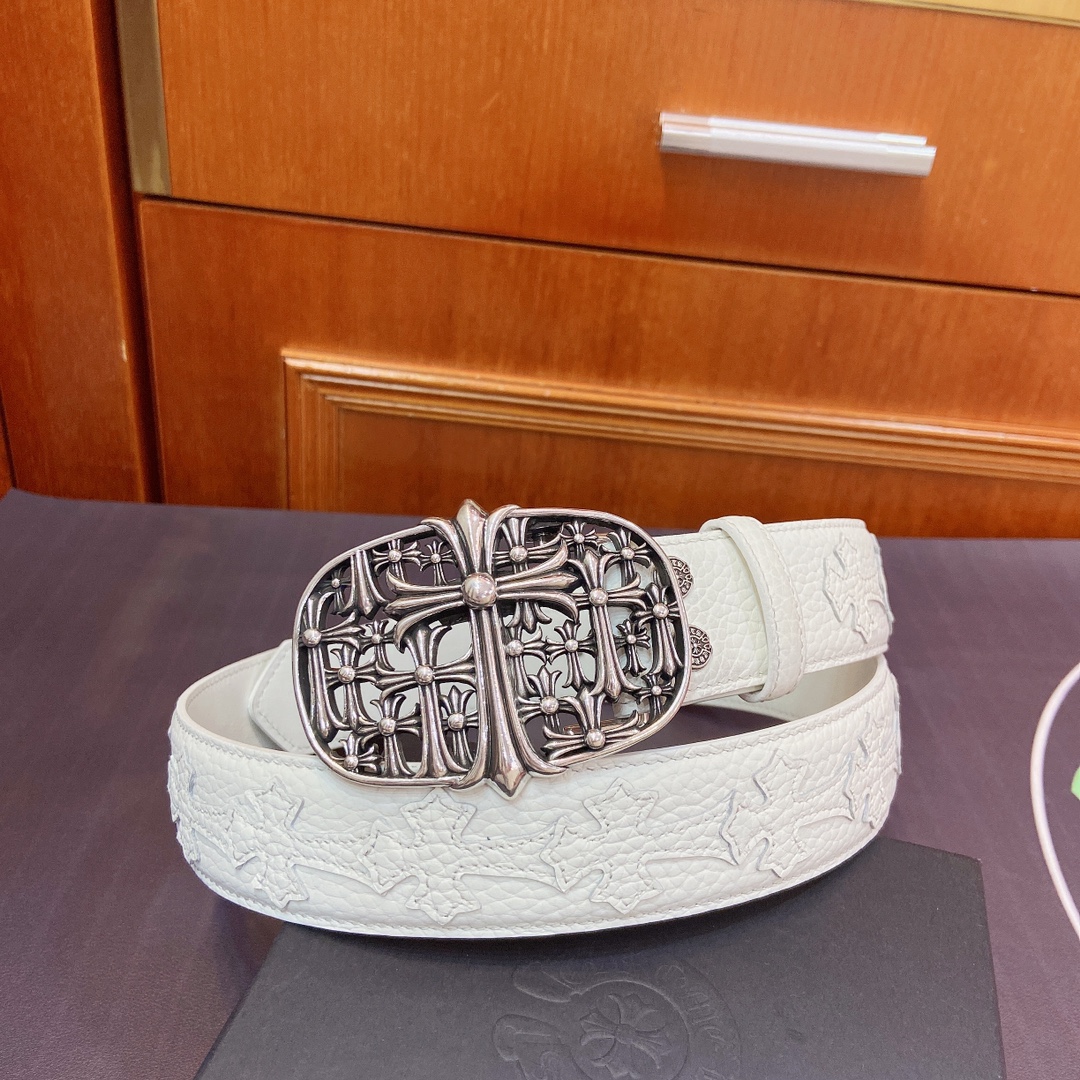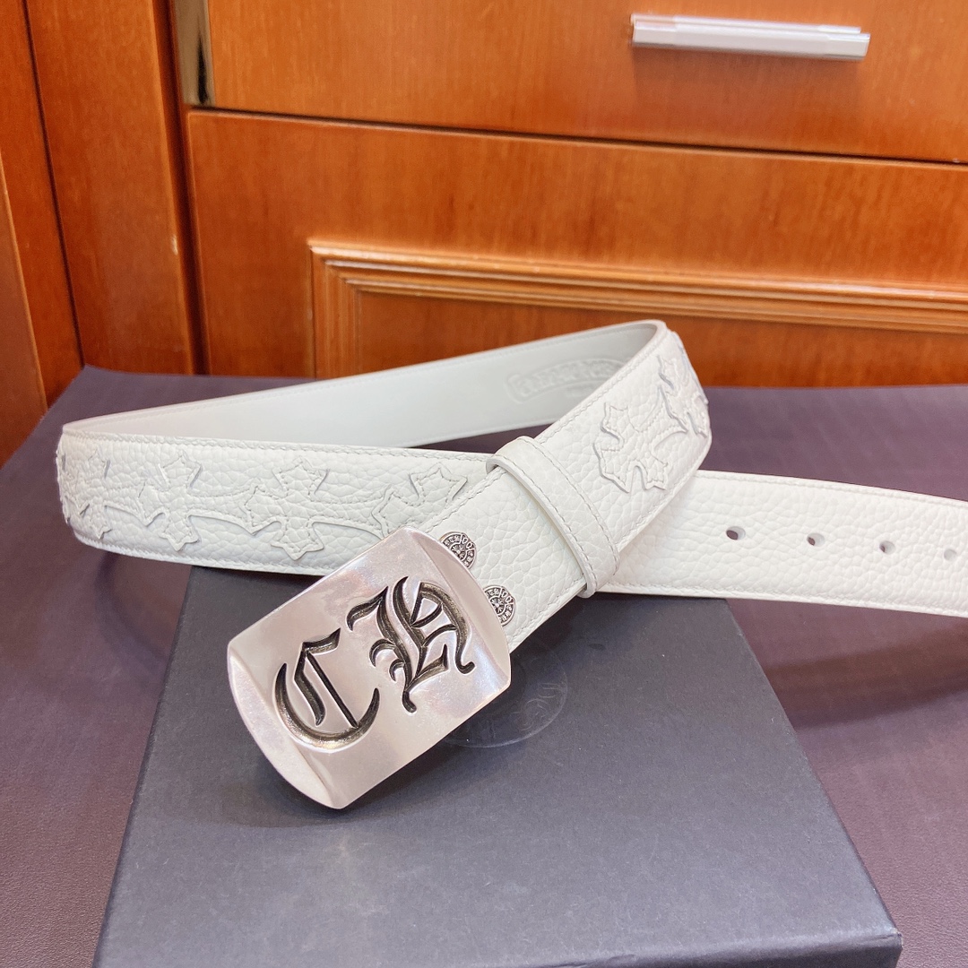 NIGO Chrome Hearts Men's Logo Leather Belt Pure Copper Thick Gold Plated 3.8cm Wide Belt Jewelry #nigo76288