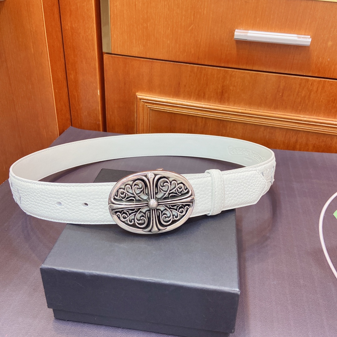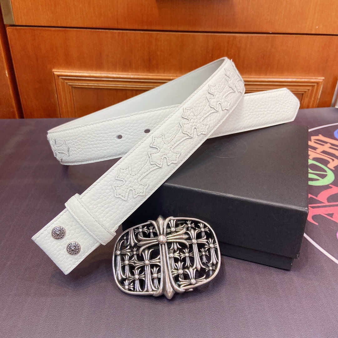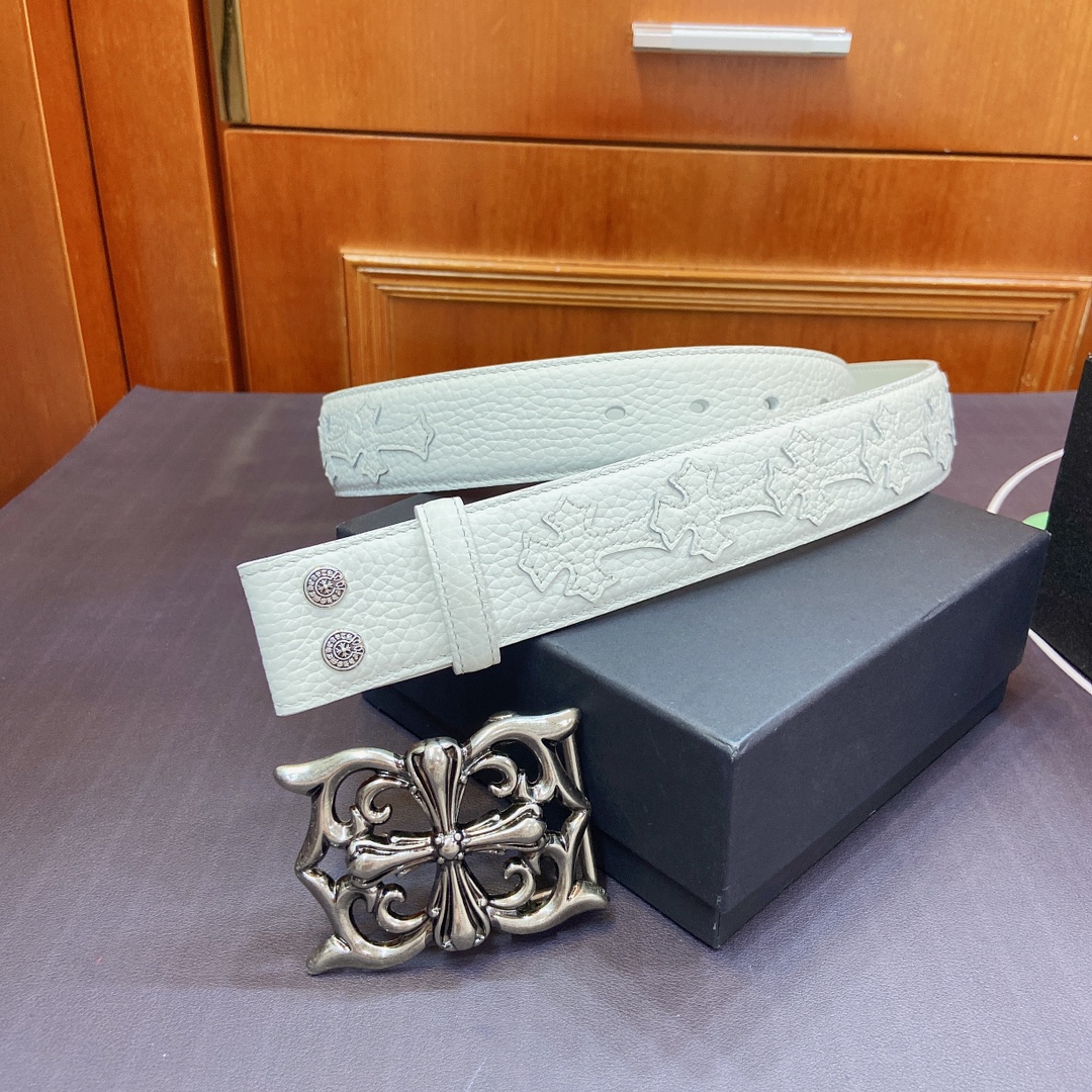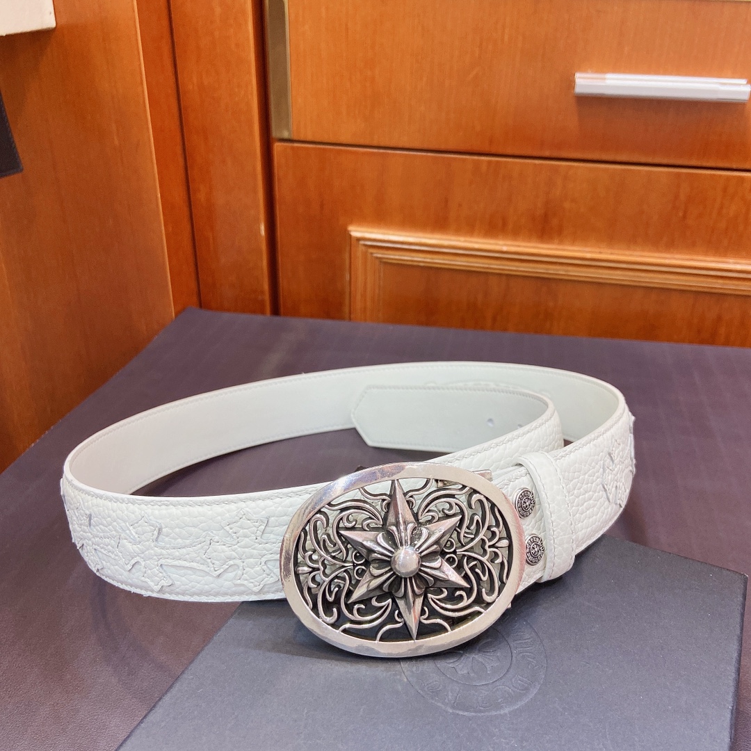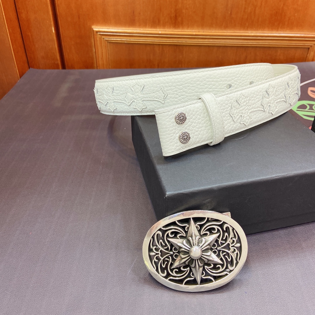 NIGO Chrome Hearts Men's Logo Leather Belt Pure Copper Thick Gold Plated 3.8cm Wide Belt Jewelry #nigo76288