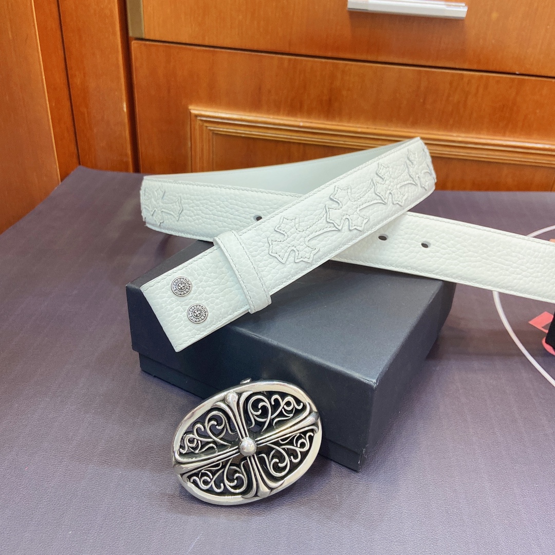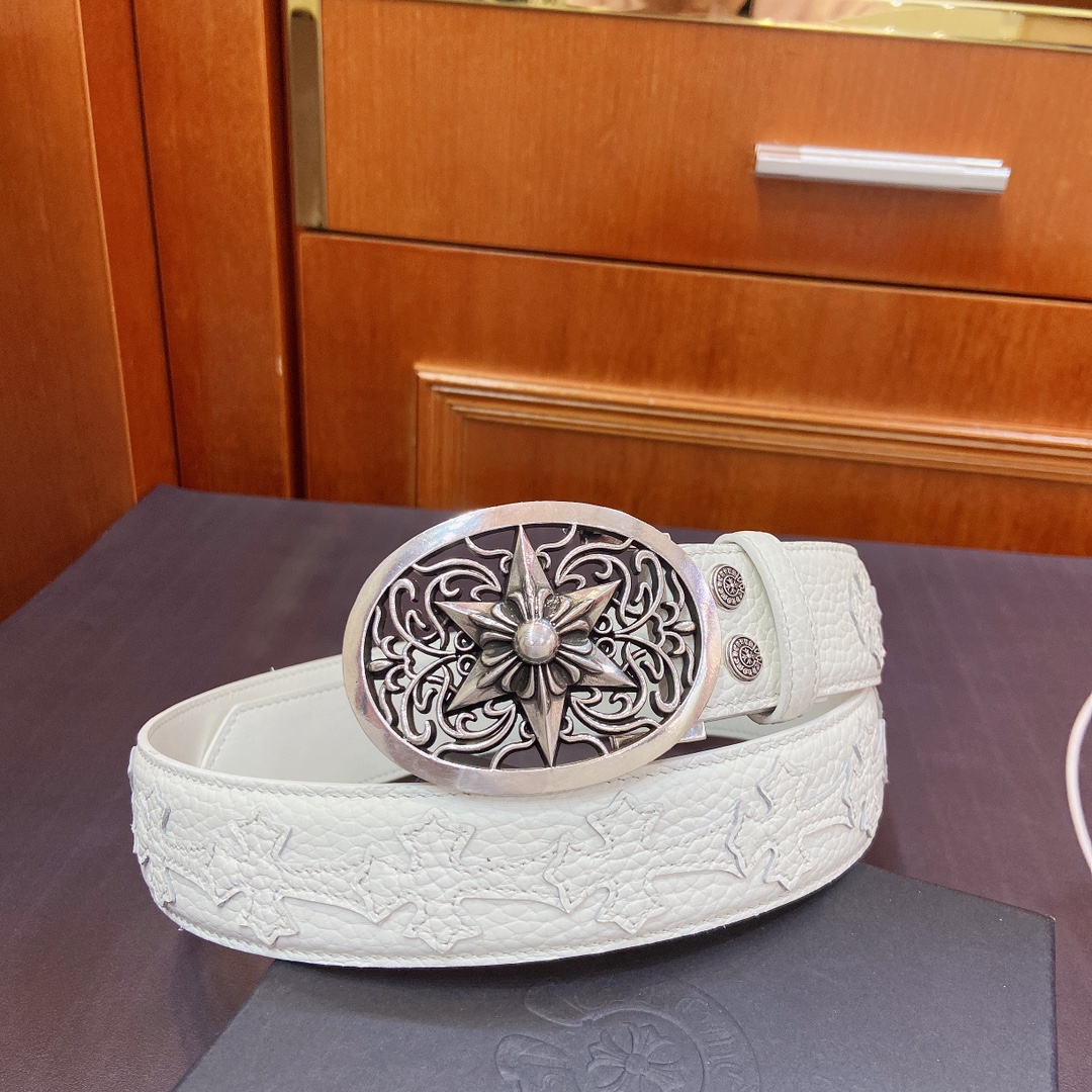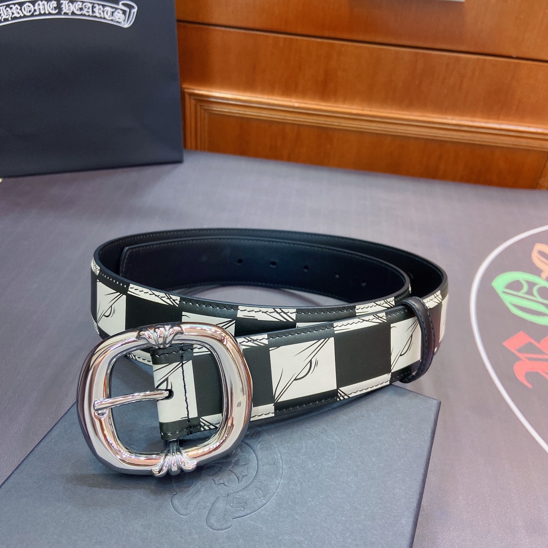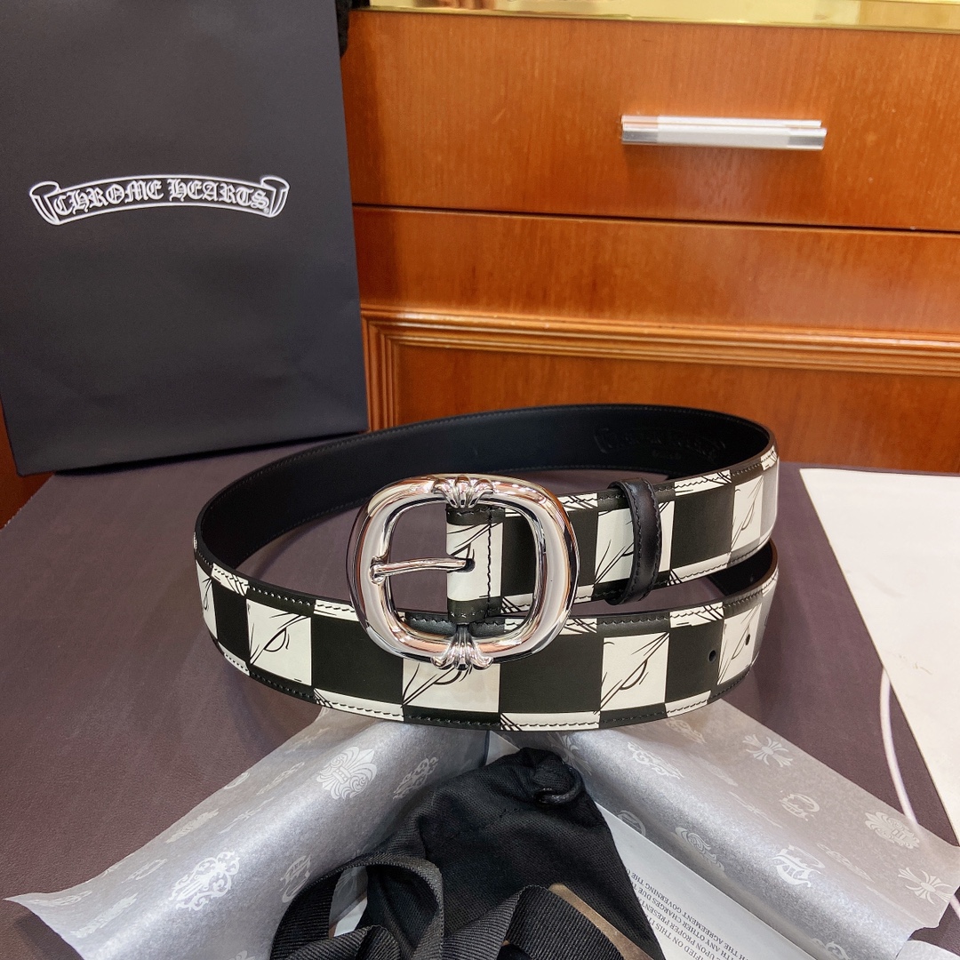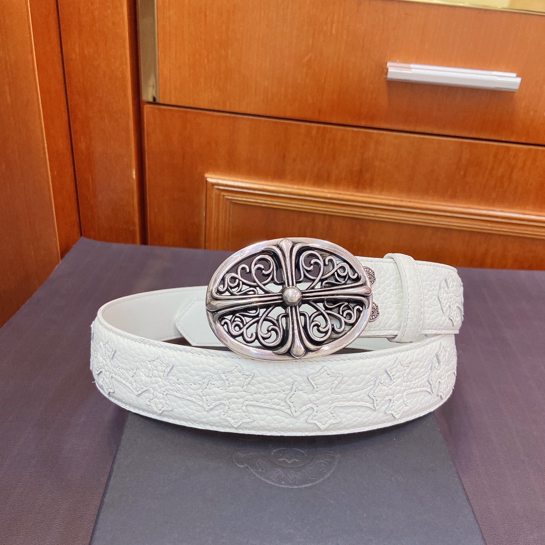 NIGO Chrome Hearts Men's Logo Leather Belt Pure Copper Thick Gold Plated 3.8cm Wide Belt Jewelry #nigo76288